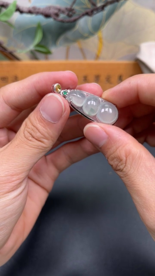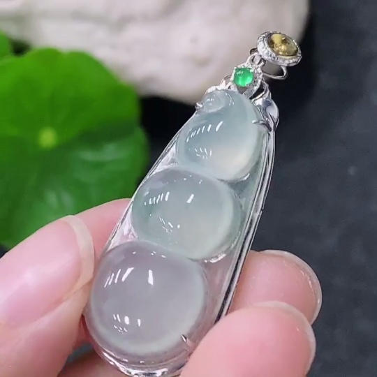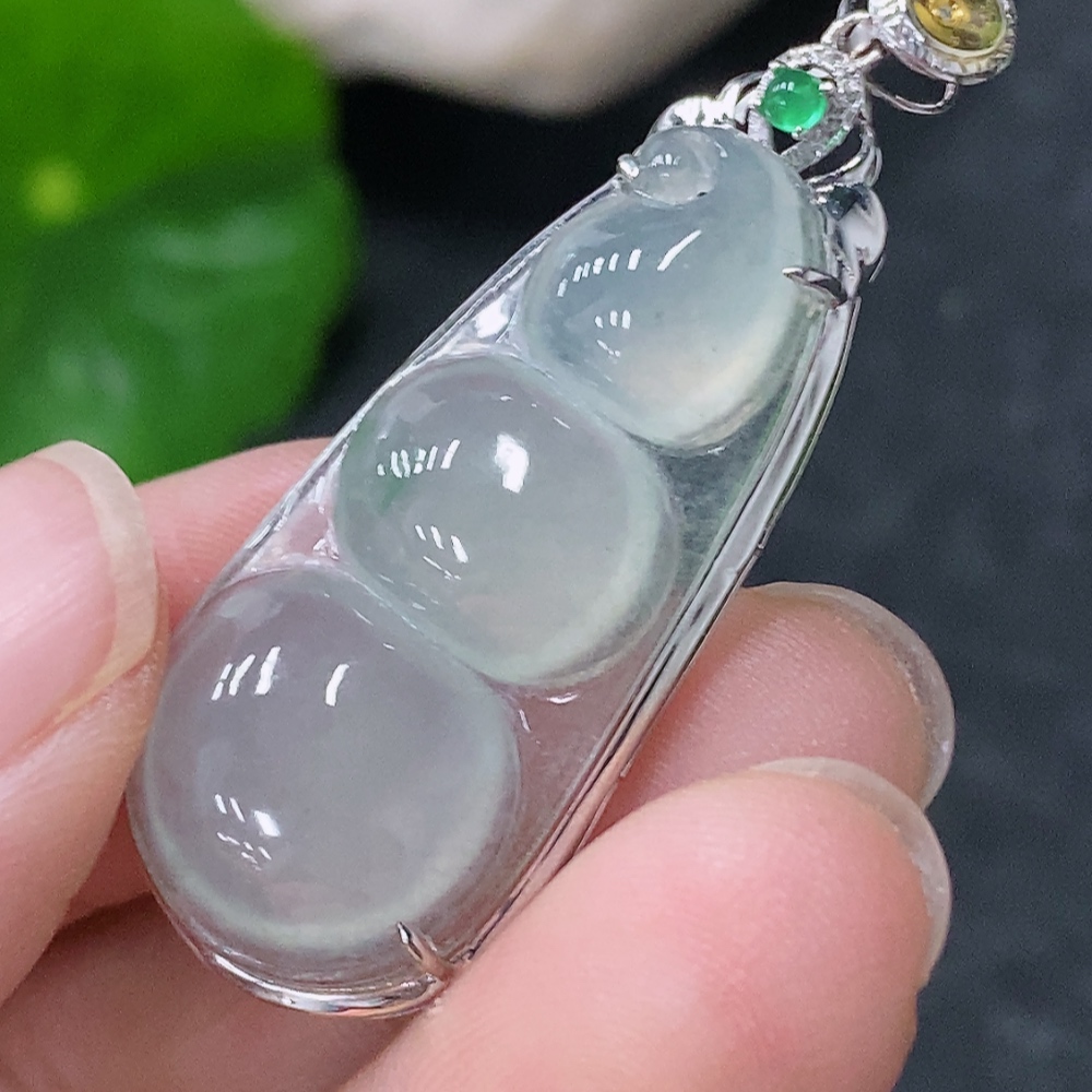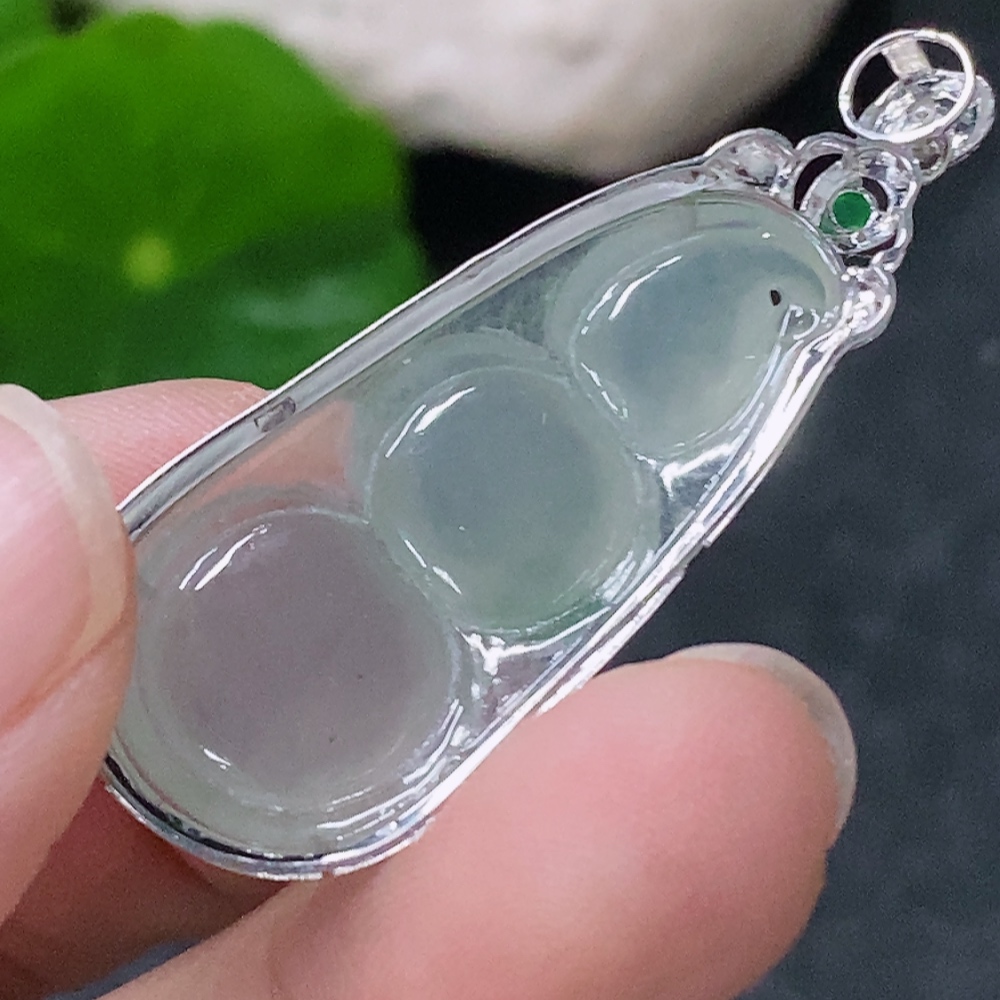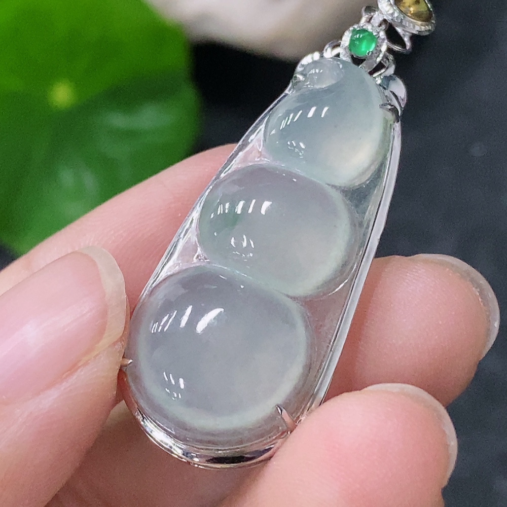 Jadeite Blessed Bean Pendant, 18K Gold Setting, Non-Diamond Product Total Weight Approx. 4.23g