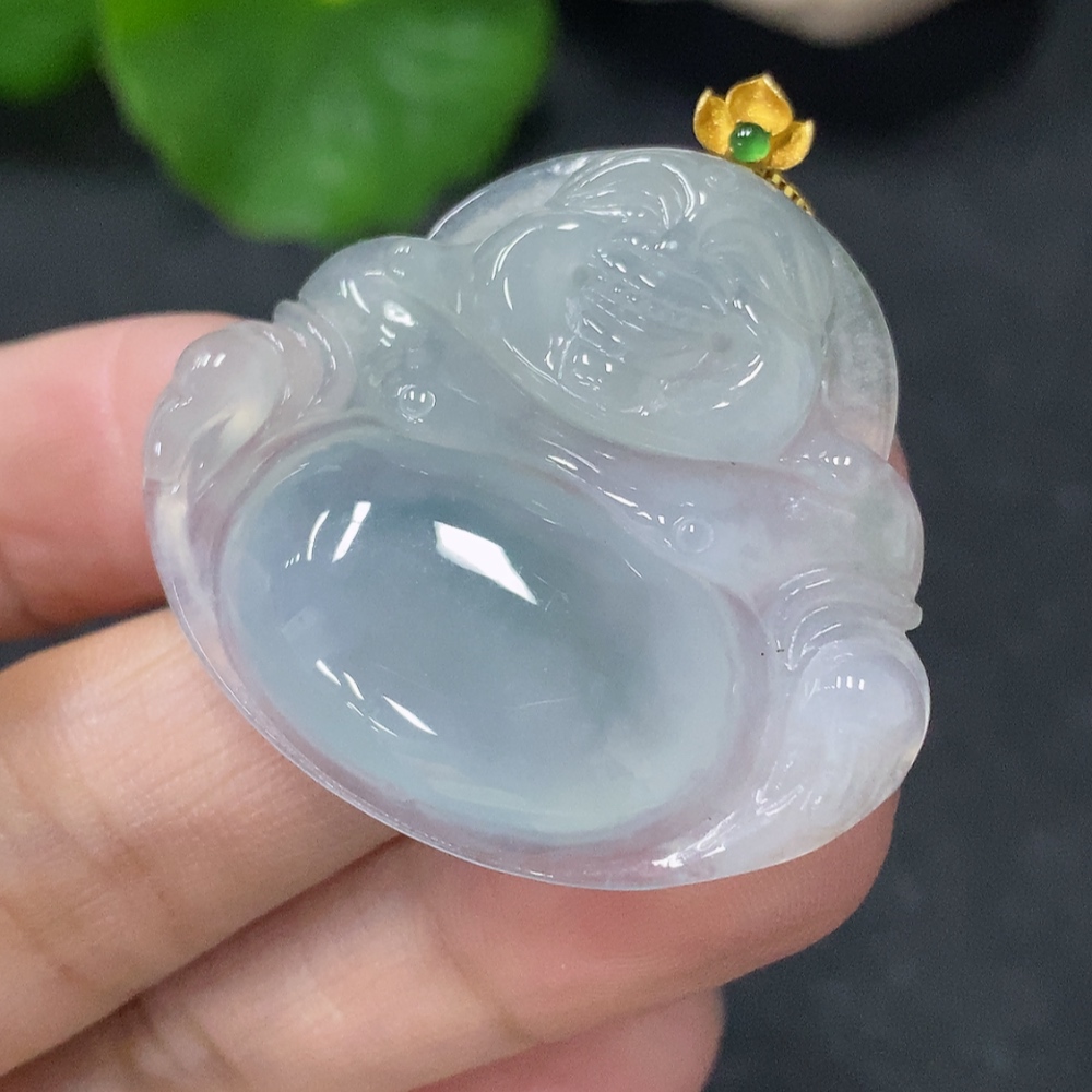 Jadeite Pendant Buddha Non-Gold Chain Pendant No Stamp Surface Gold Content 75% Total Weight Approx. 11.72g Including Chain