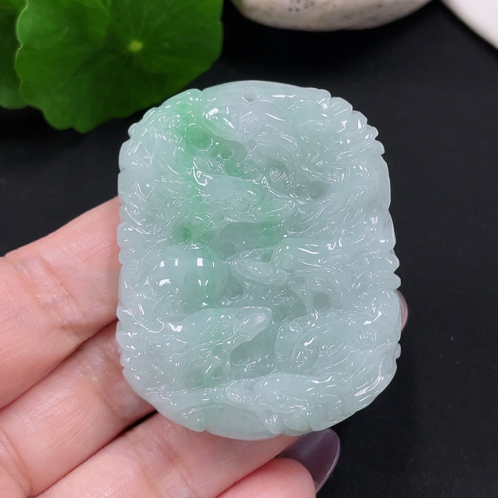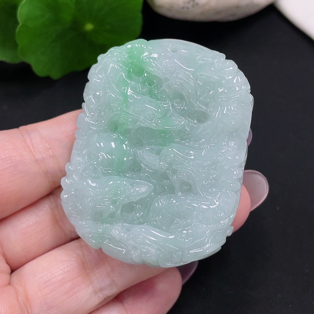 Trezaar - Jadeite Nine Dragons Protecting the Master Pendant