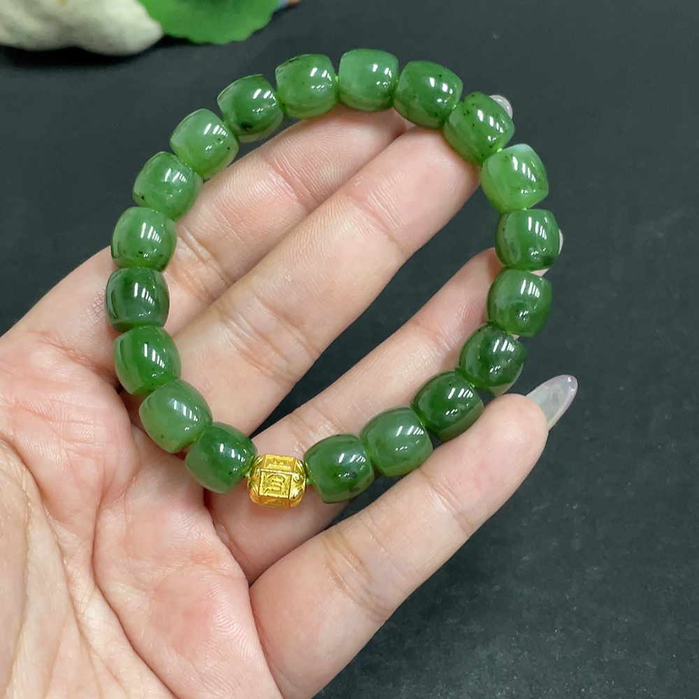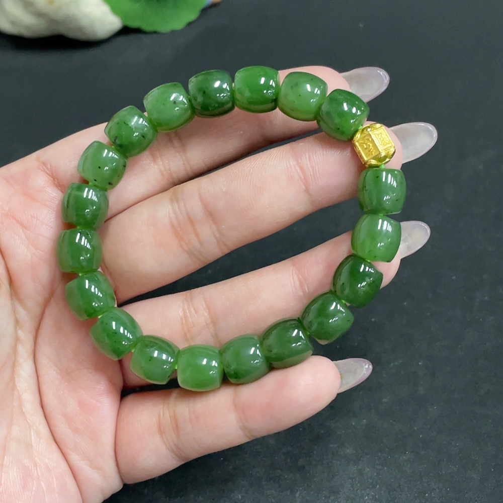 Hetian Jade Jasper Bracelet Approx. 9.8 mm Total Weight About 35g Non-Gold