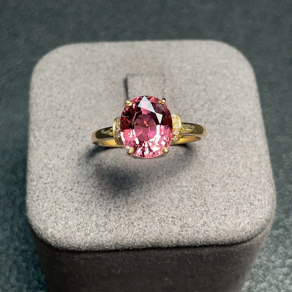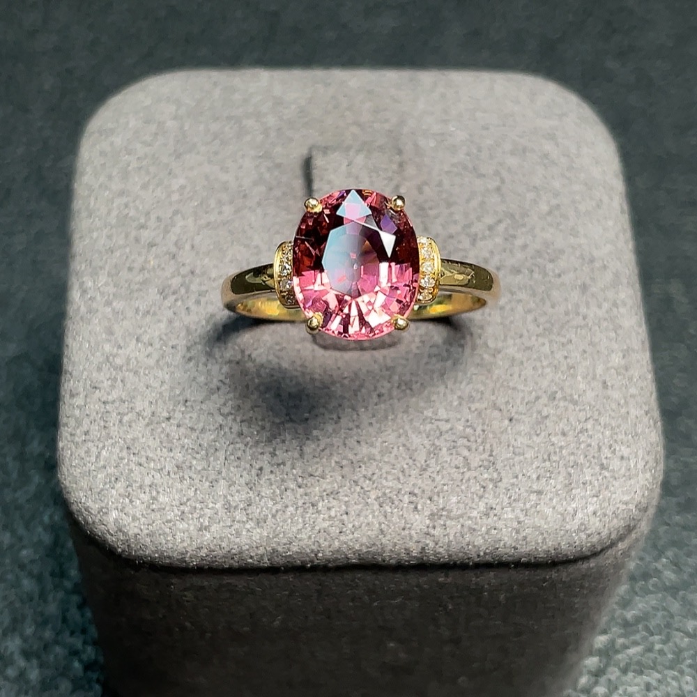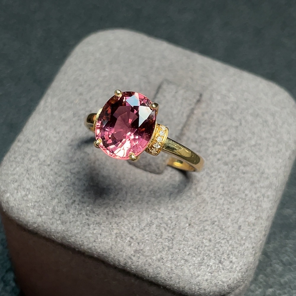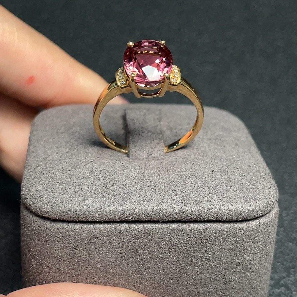 Tourmaline ring with diamond accents, 72% gold content, total weight approx. 3g, size 17.5