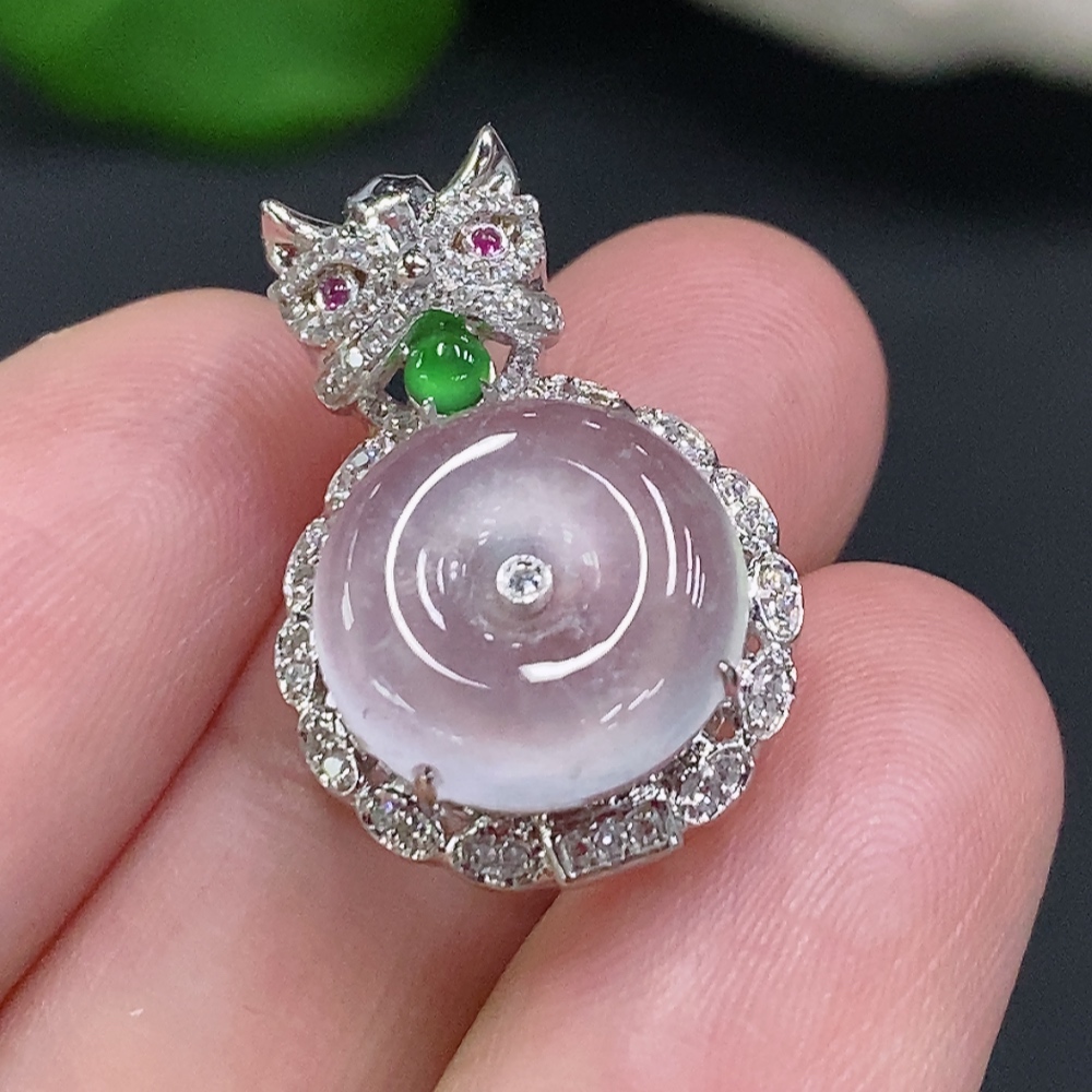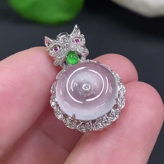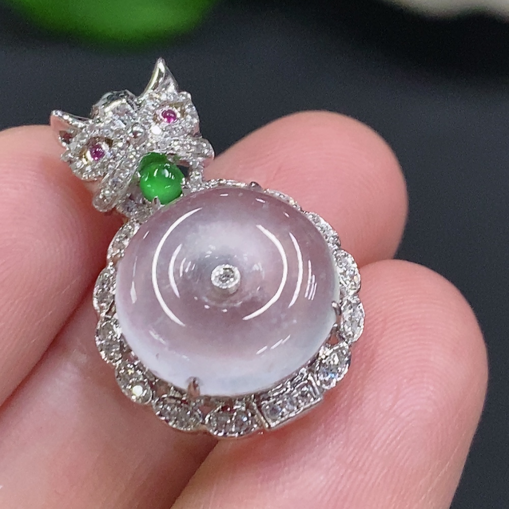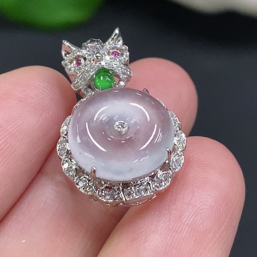 Jadeite Inlaid Pendant (No imprint, surface gold content Au75%) Total weight approx. 3.1g (Colorless accent stones are diamonds)