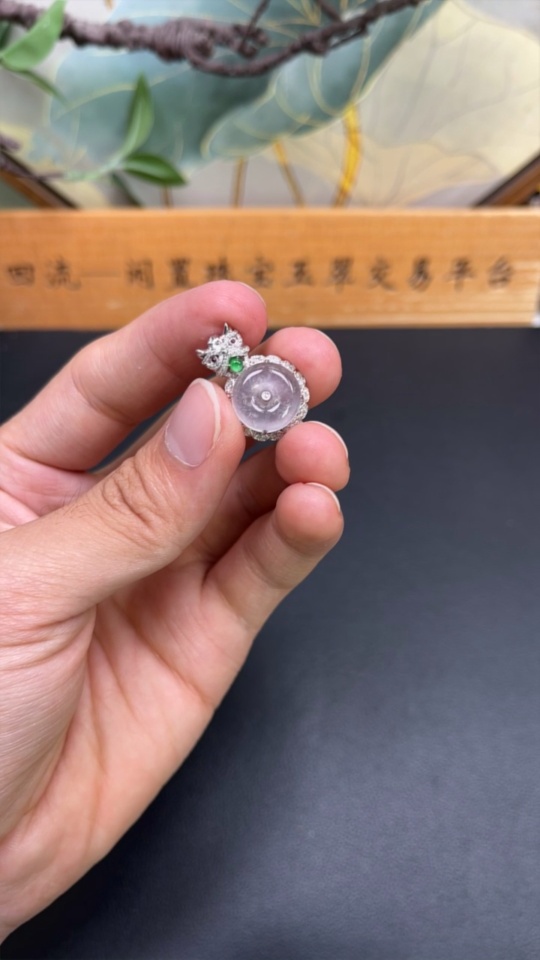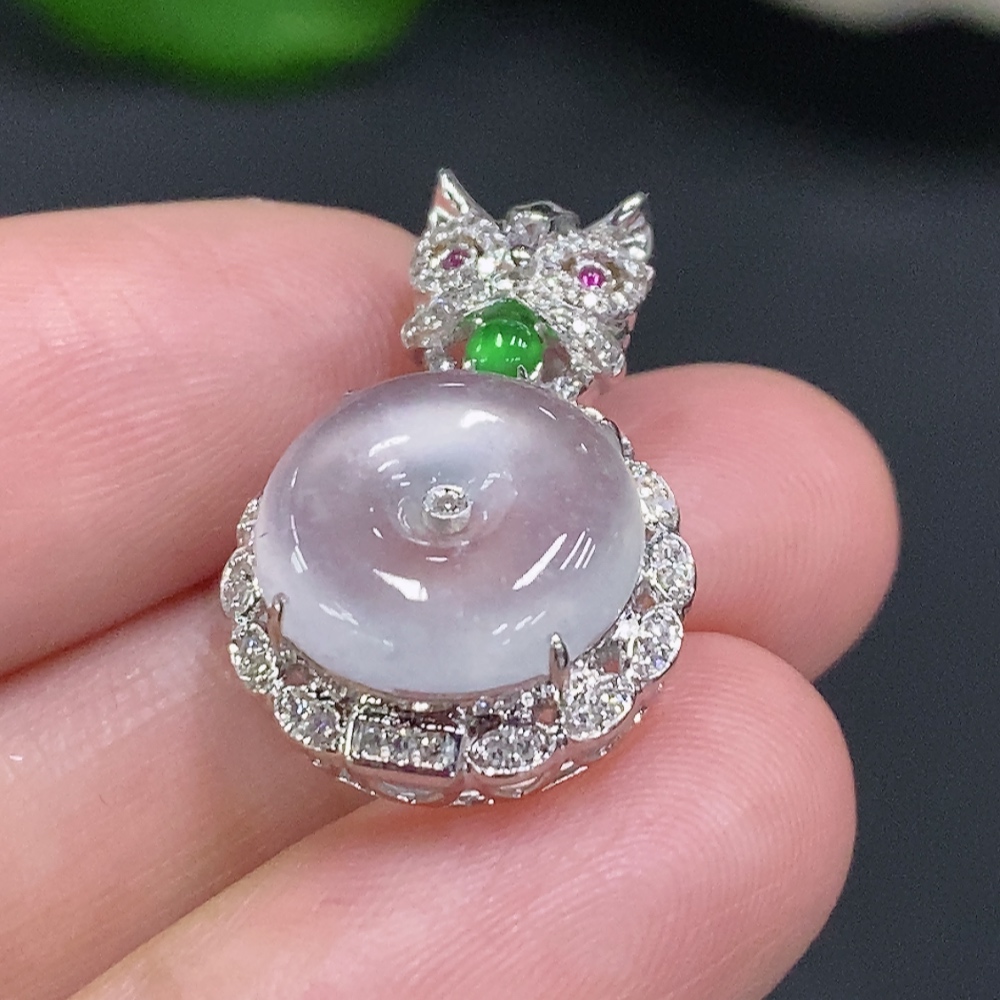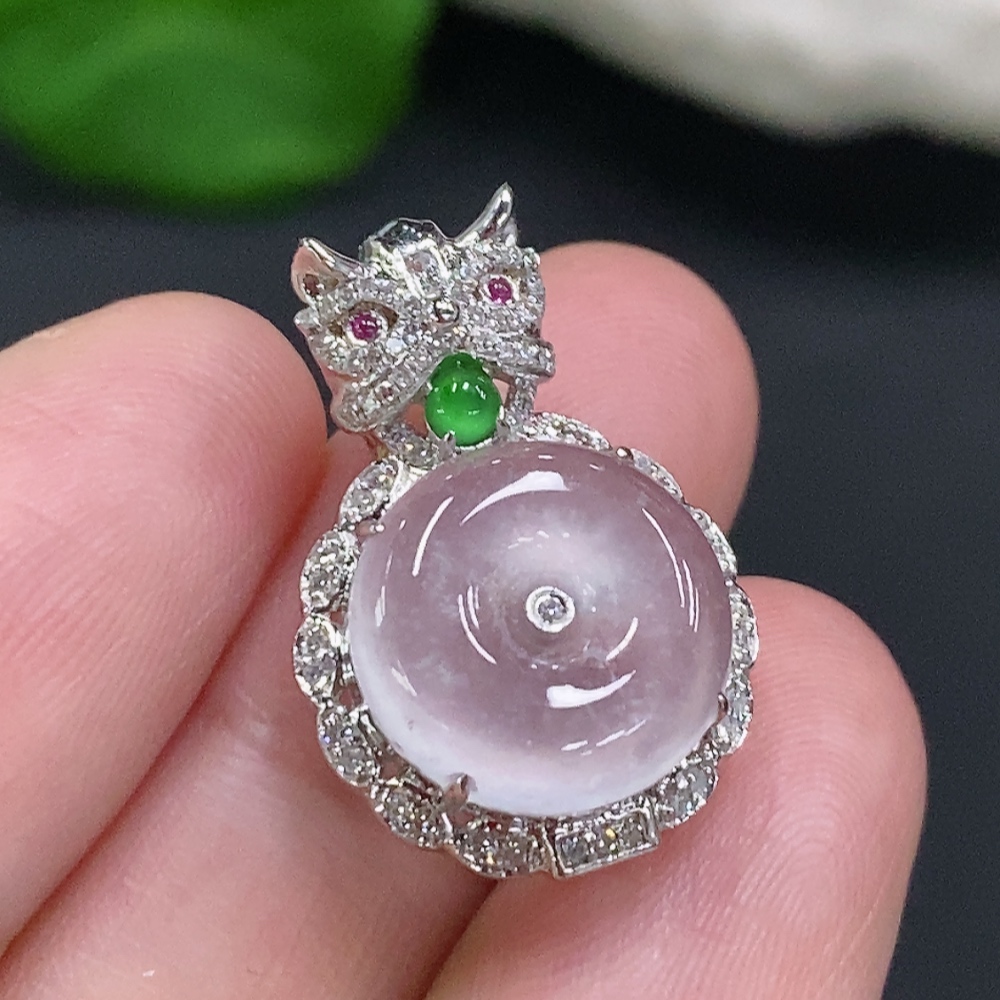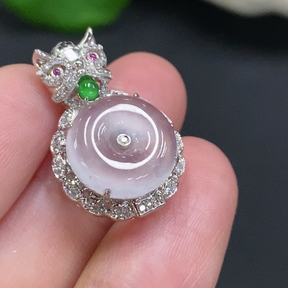 Jadeite Inlaid Pendant (No imprint, surface gold content Au75%) Total weight approx. 3.1g (Colorless accent stones are diamonds)