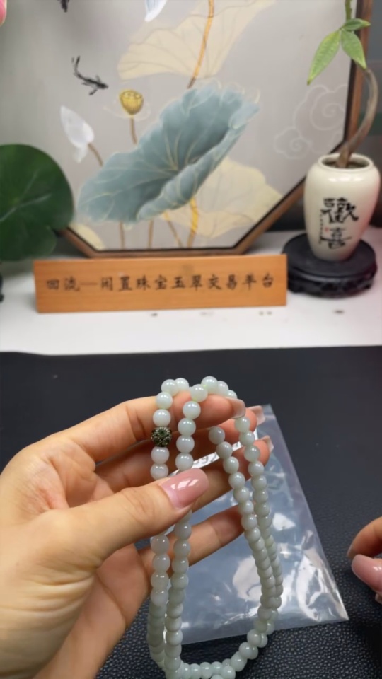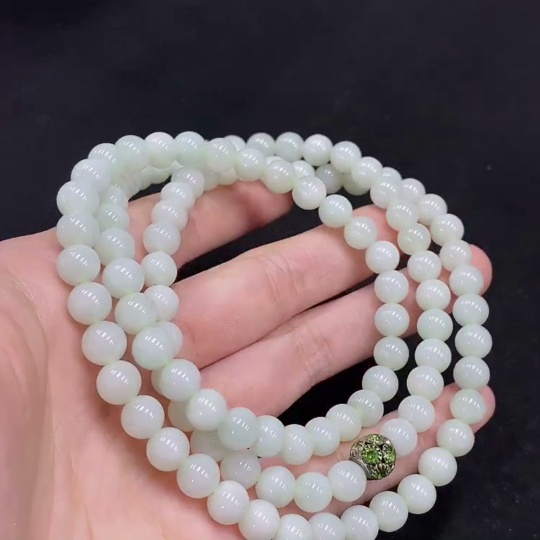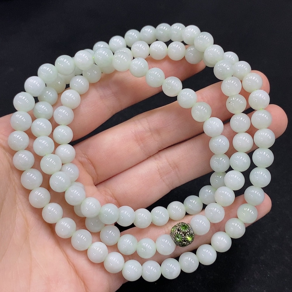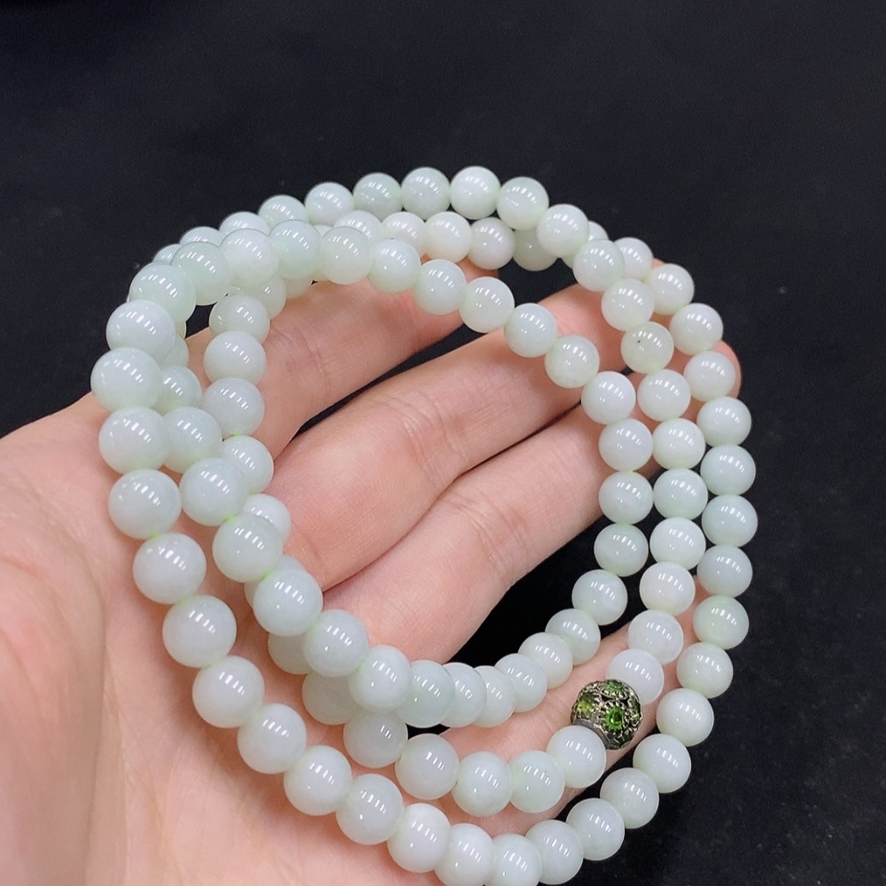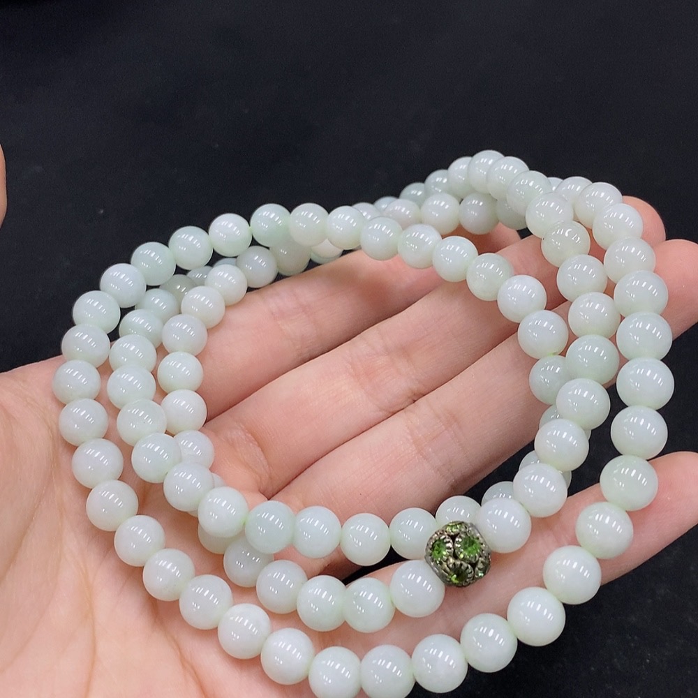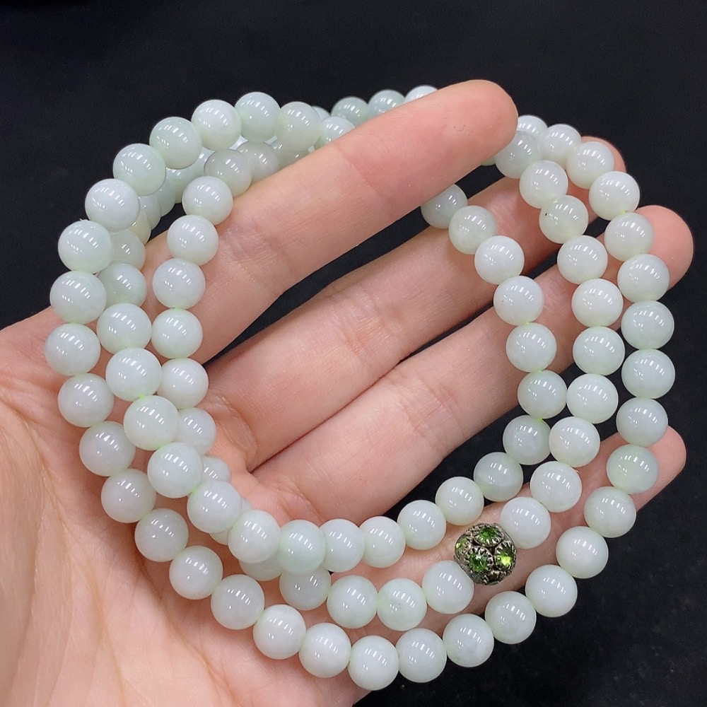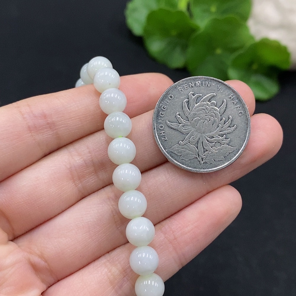 Jadeite Bead Necklace Approx. 6.8mm Non-Gold-Inlaid Total Weight Approx. 60.89g