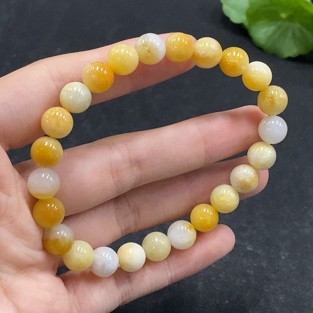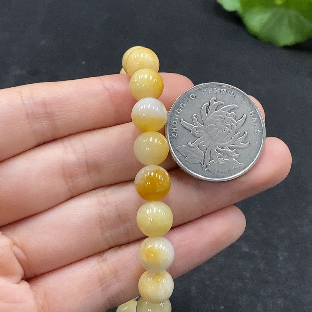 Jadeite Bead Bracelet Approx. 8.5mm Yellow Section Color Origin Undetermined Total Weight Approx. 26.08g
