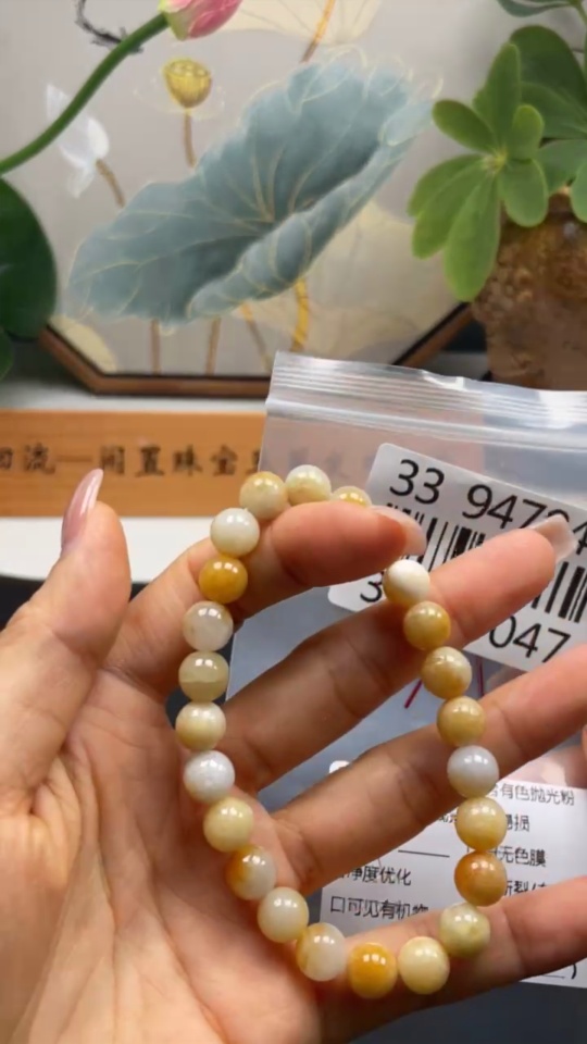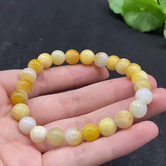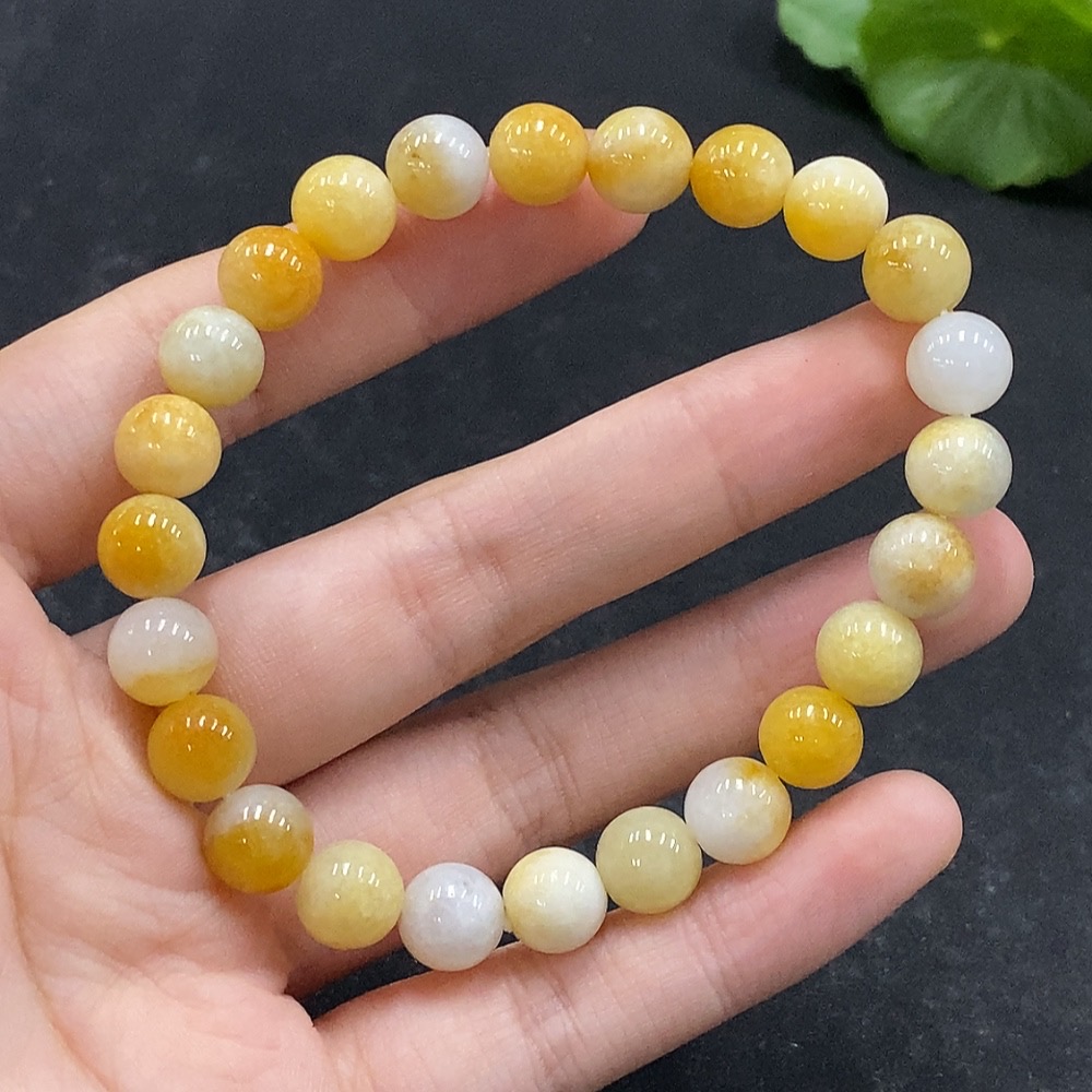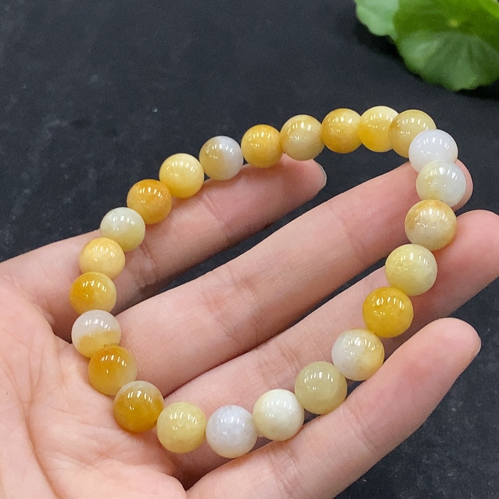 Jadeite Bead Bracelet Approx. 8.5mm Yellow Section Color Origin Undetermined Total Weight Approx. 26.08g