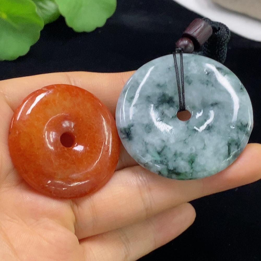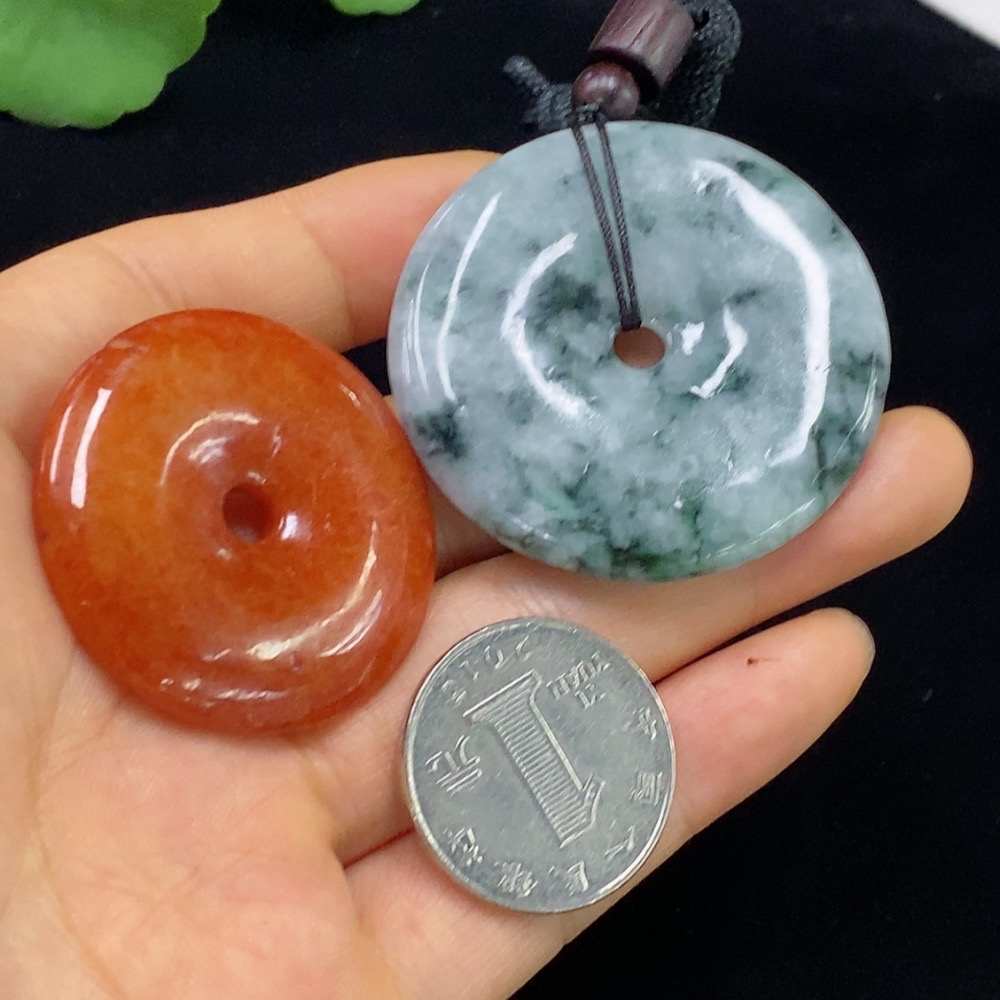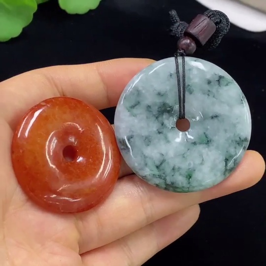 Jadeite Pendant Sell as a Lot Red Color Origin Undetermined Containing Other Mineral Components