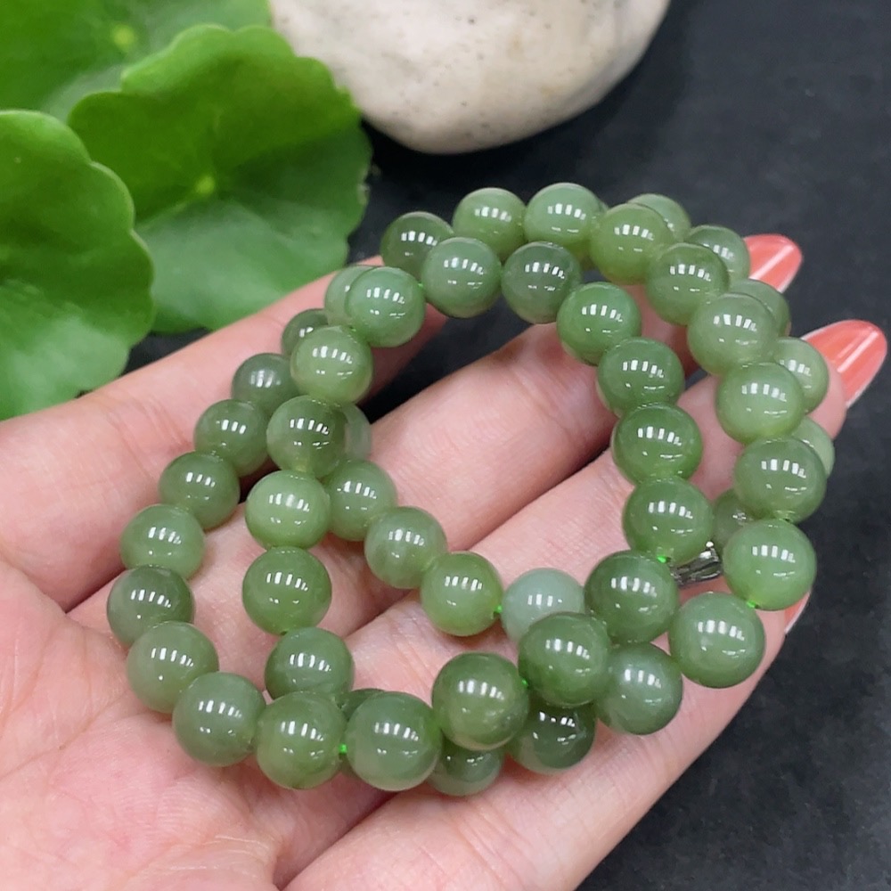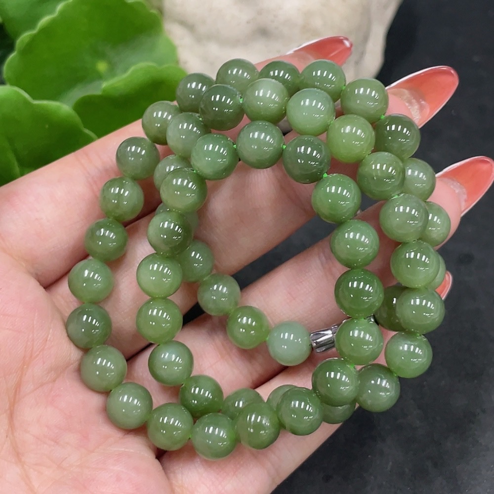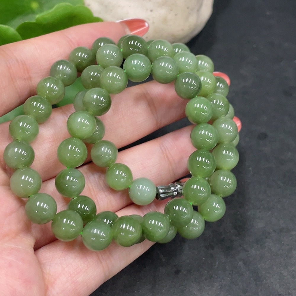 Hetian Jade Jasper Bead Necklace, Approx. 7.5mm, Non-Gold, Total Weight Approx. 42.4g