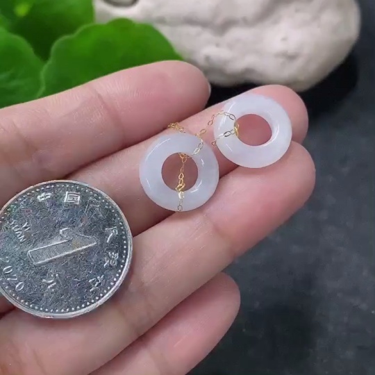 Jadeite earrings with 18k gold setting, total weight approximately 2.27g