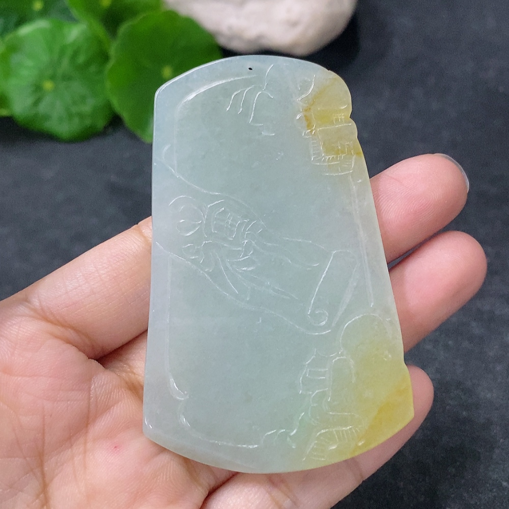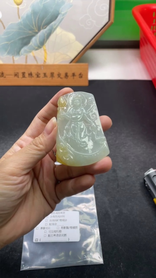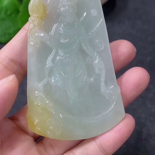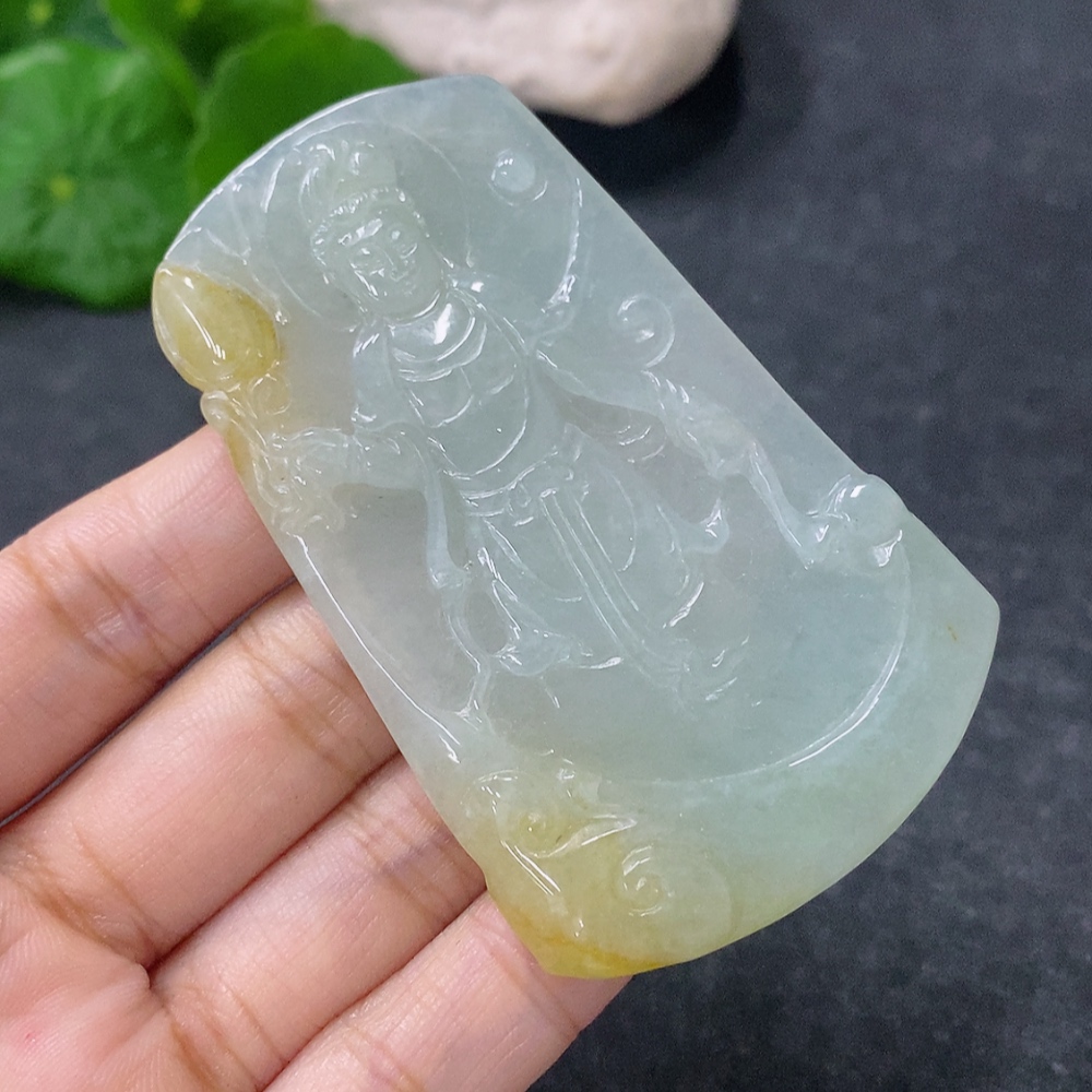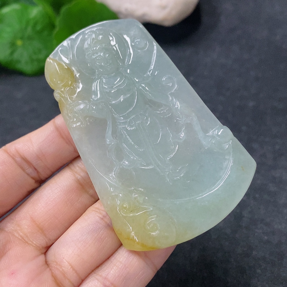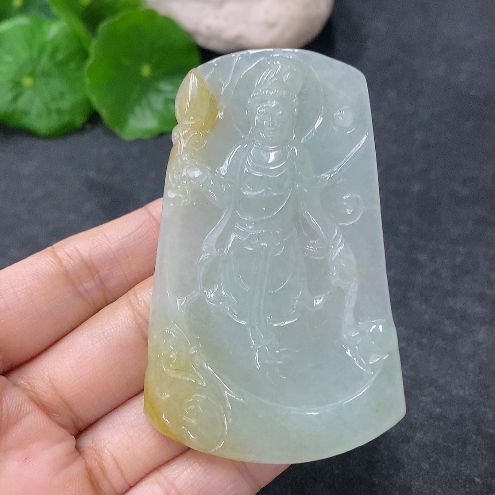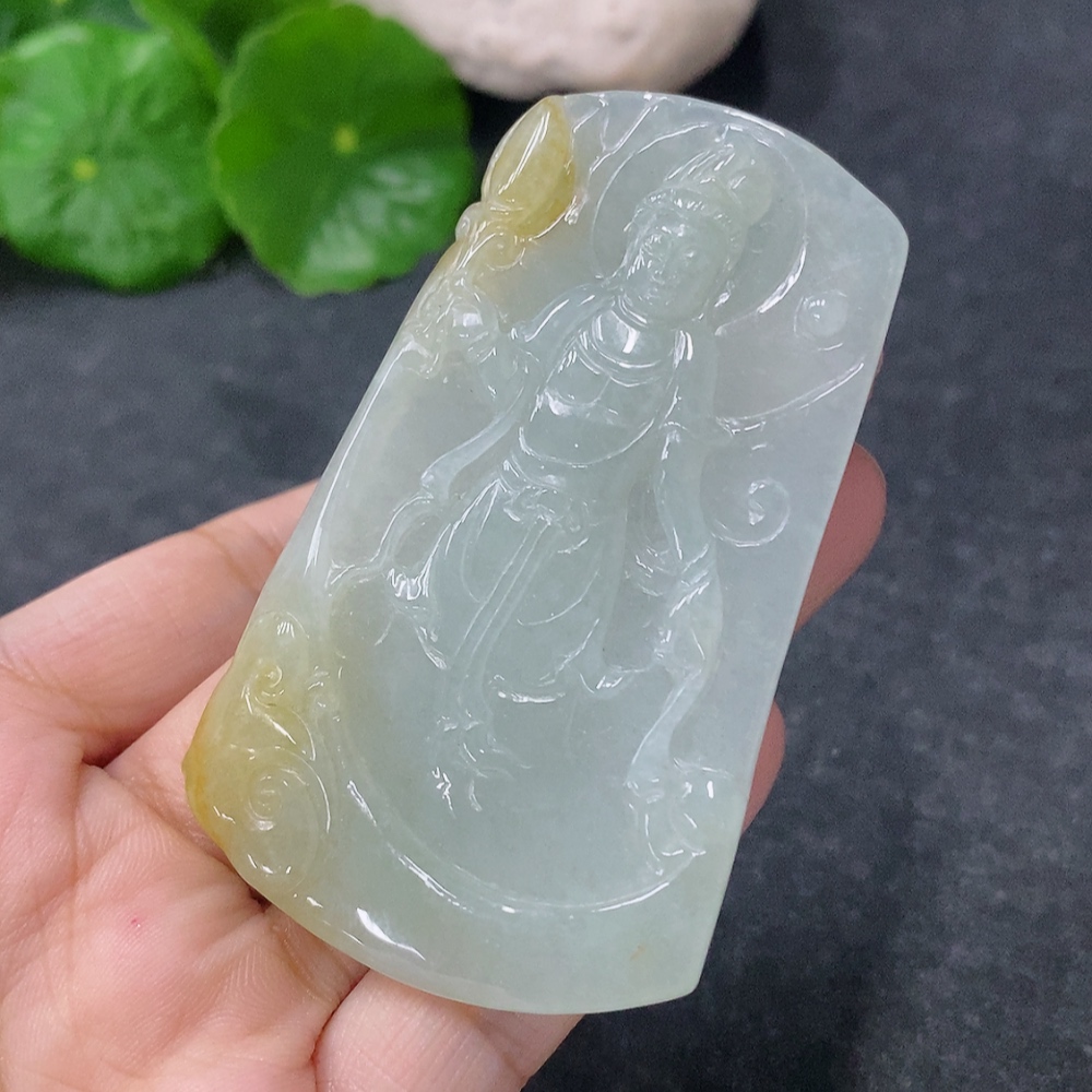 Jadeite Pendant Guanyin, Total Weight Approx. 31.68g, Yellow Part Color Origin Undetermined