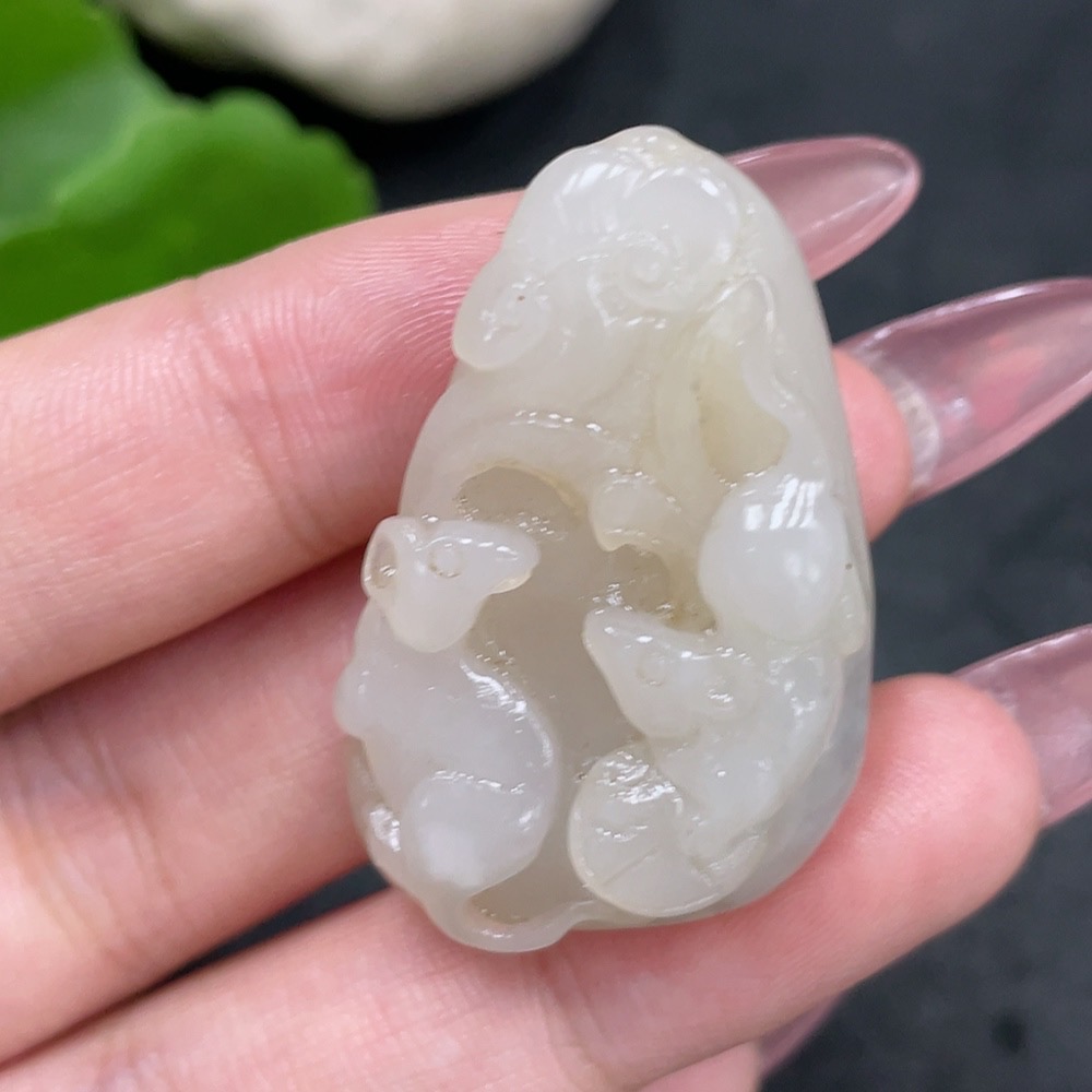 Hetian Jade Pendant: Prosperity-Bringing Mouse, Total Weight Approx. 16.4g