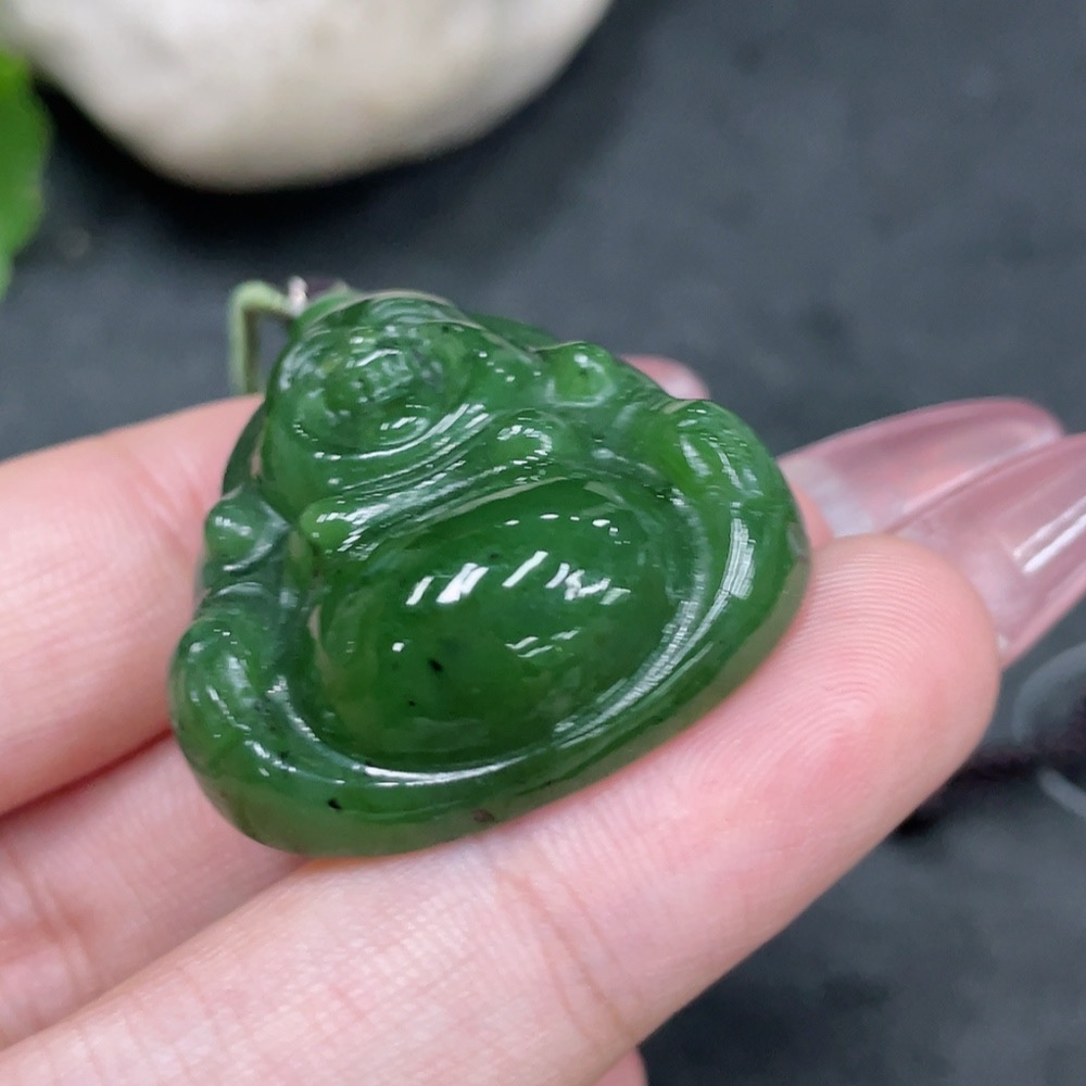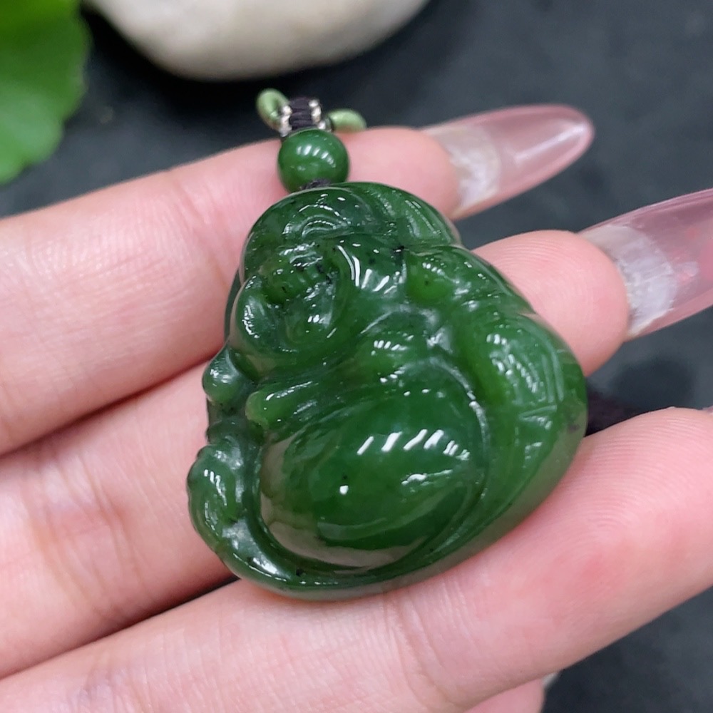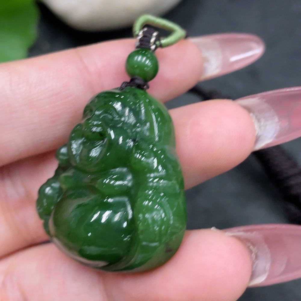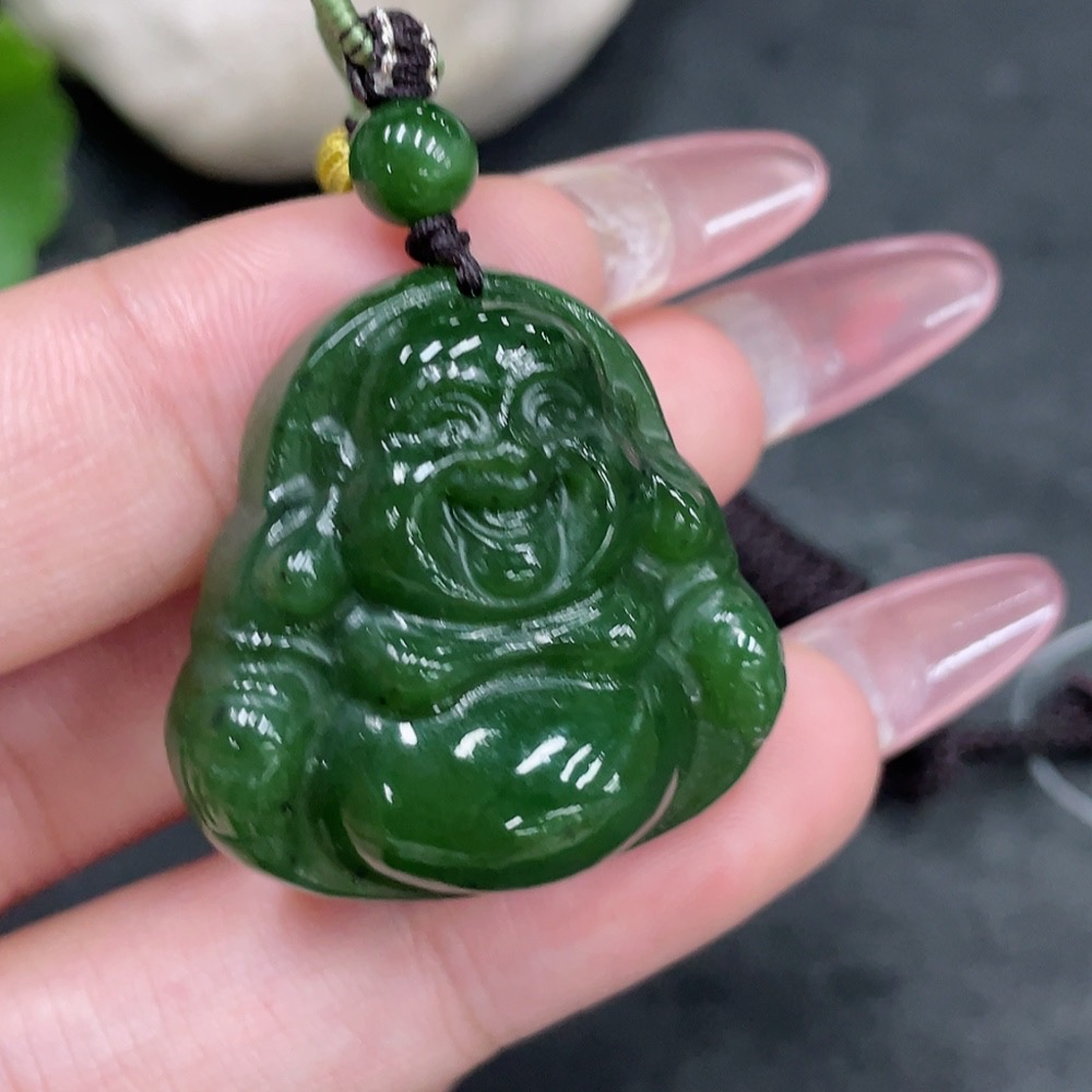 Hetian Jade Pendant - Buddha with Non-Hetian Jade Beads, Total Weight (Including String): 16.7g