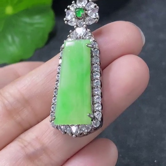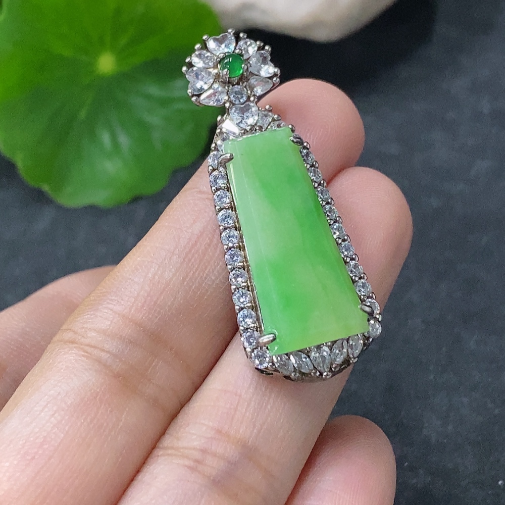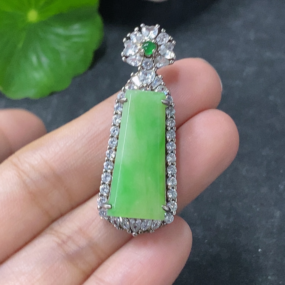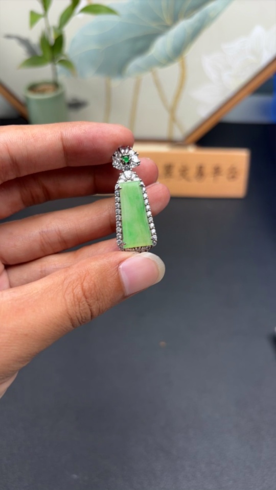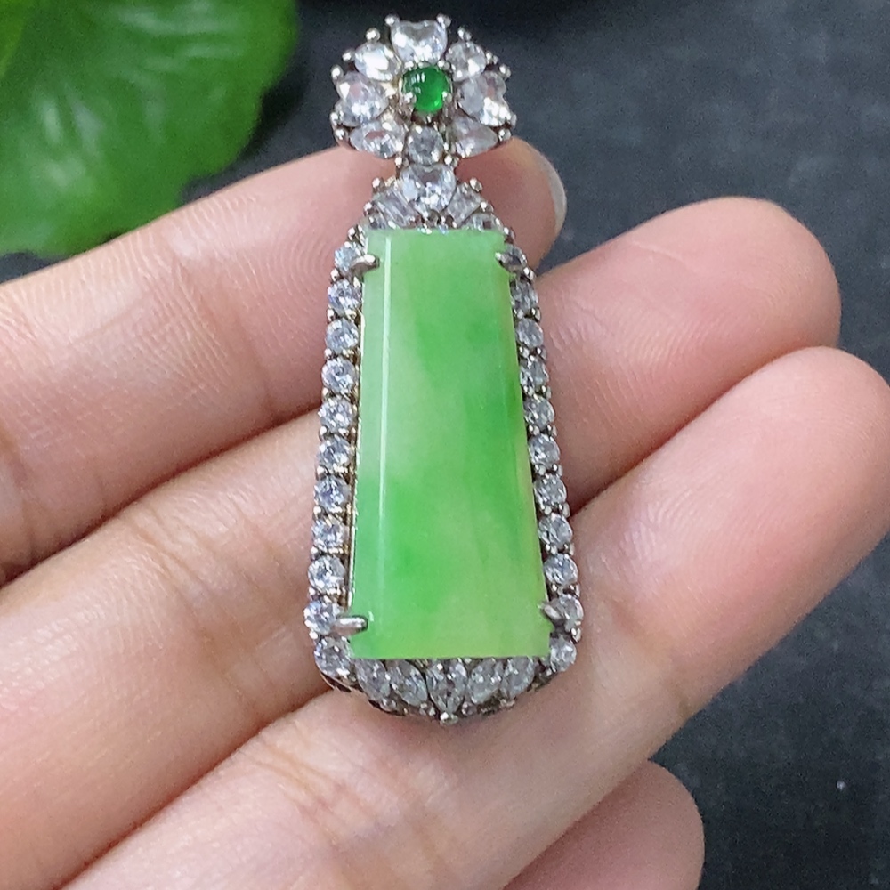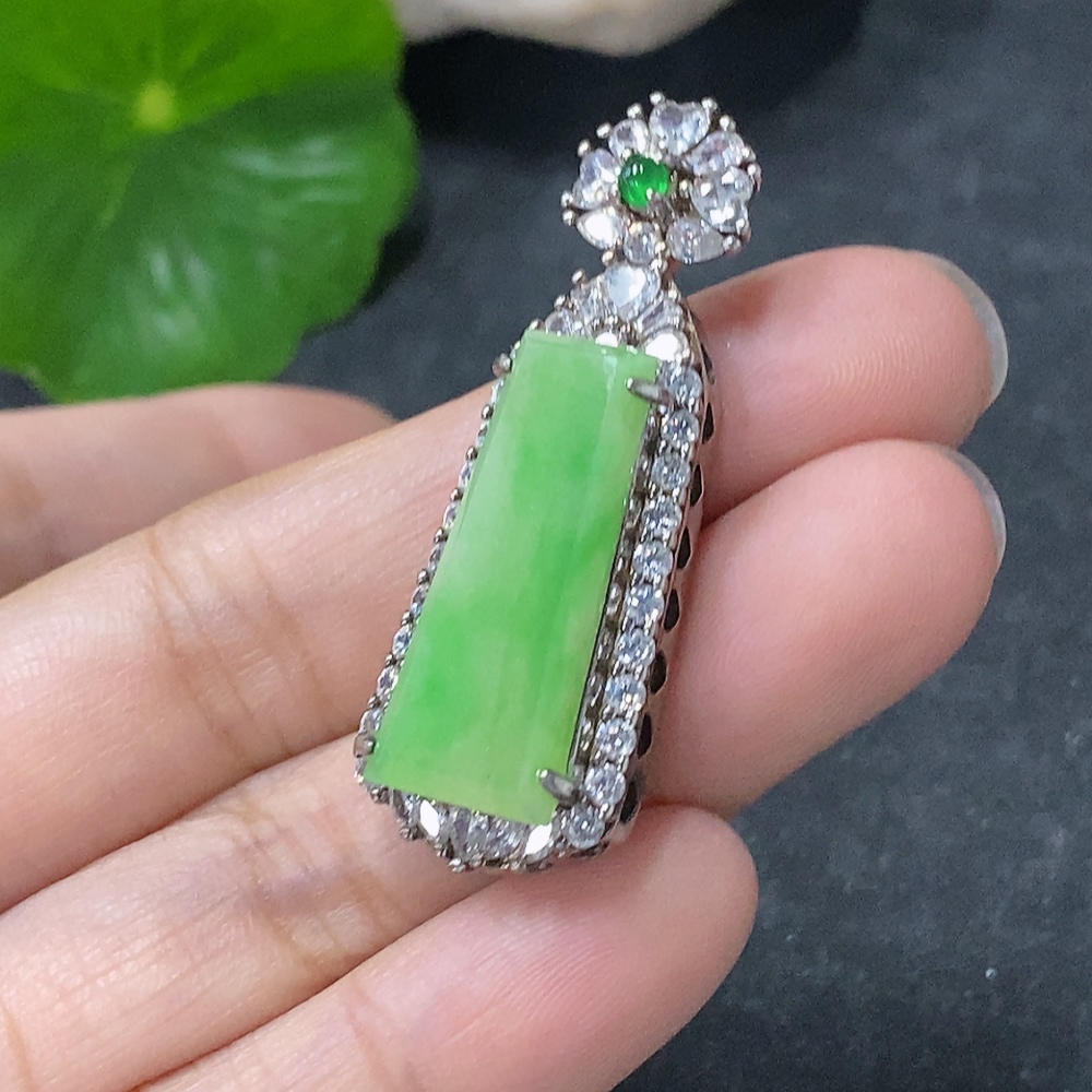 Jadeite Inlaid Pendant Non-Gold Total Weight Approx. 6.24g