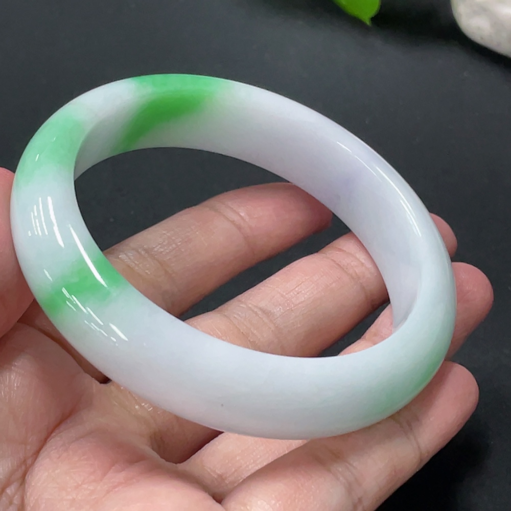 Jadeite Round Bangle, Total Weight Approx. 64.7g, Size 57.4