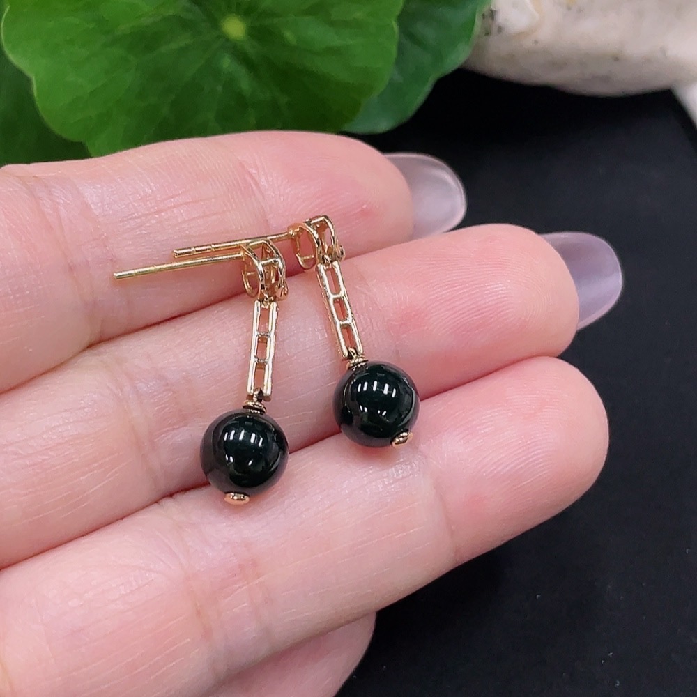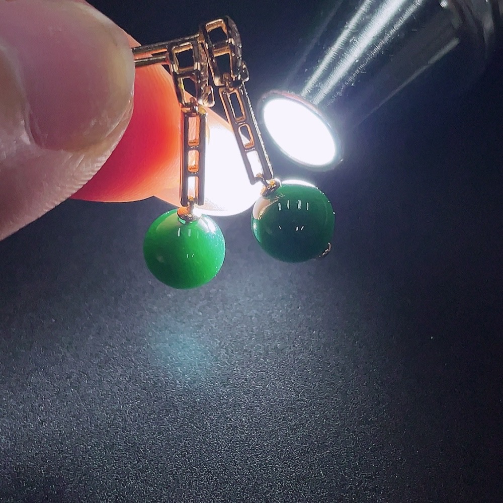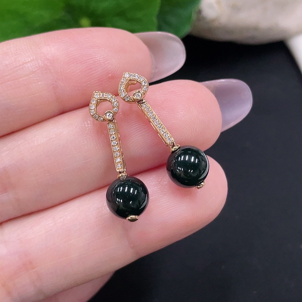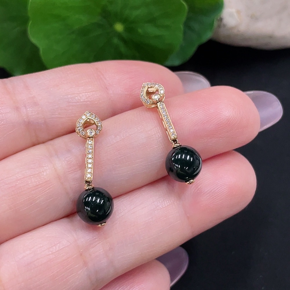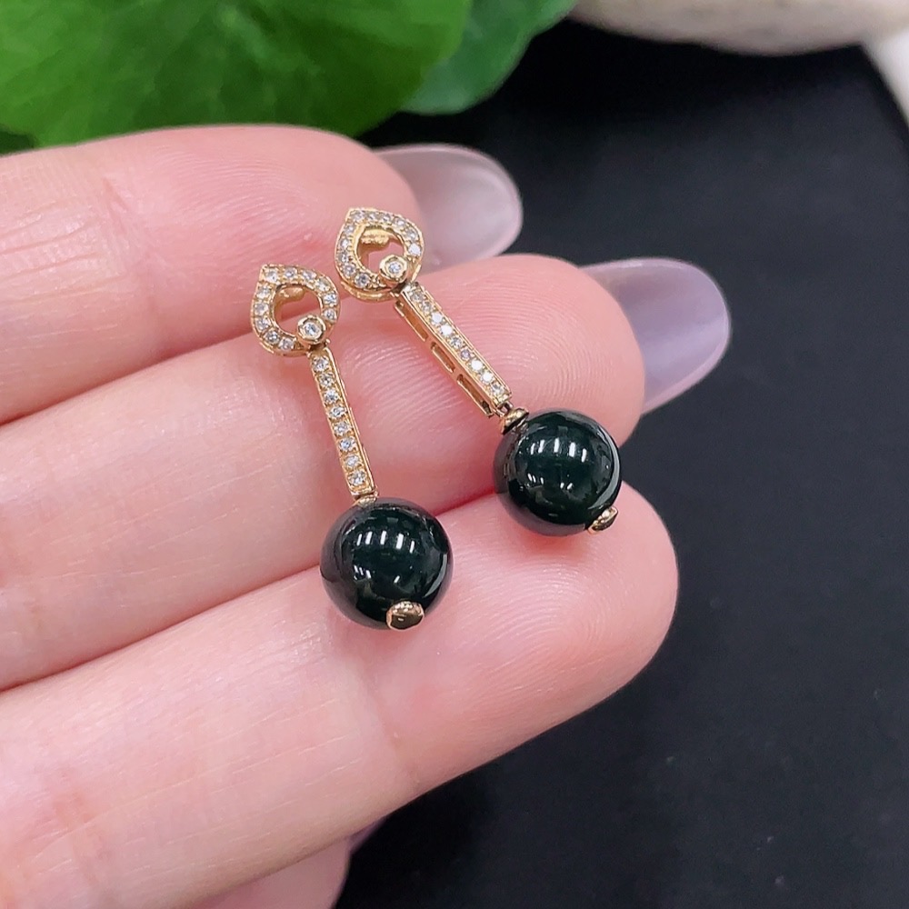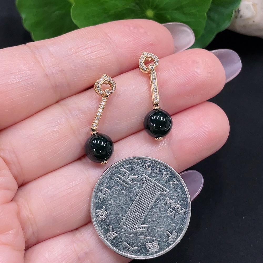 A Pair of Jadeite Inlaid Earrings with 18K Gold and Diamonds, Total Weight Approx. 2.5g