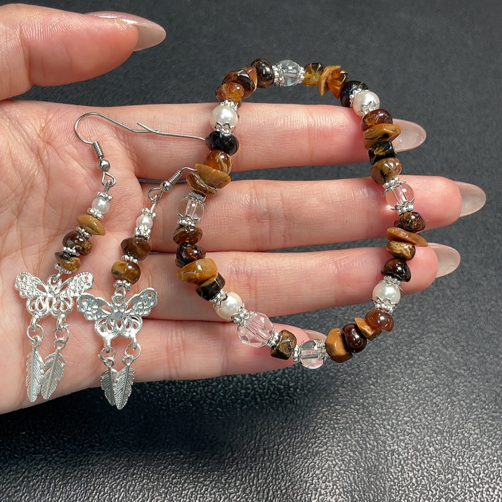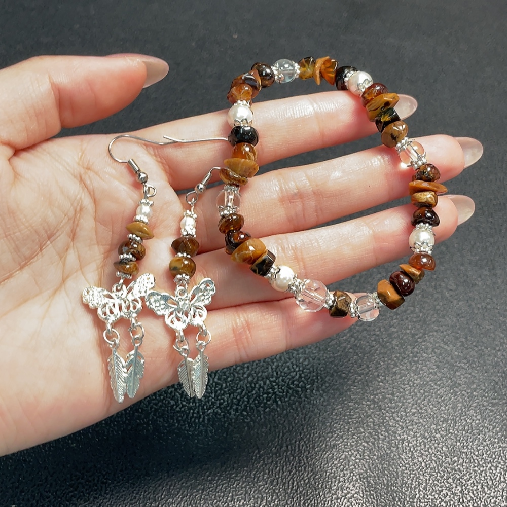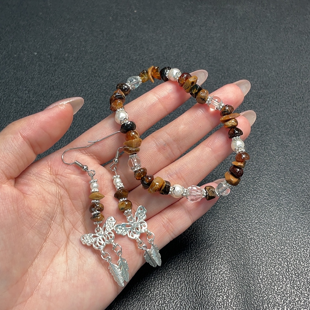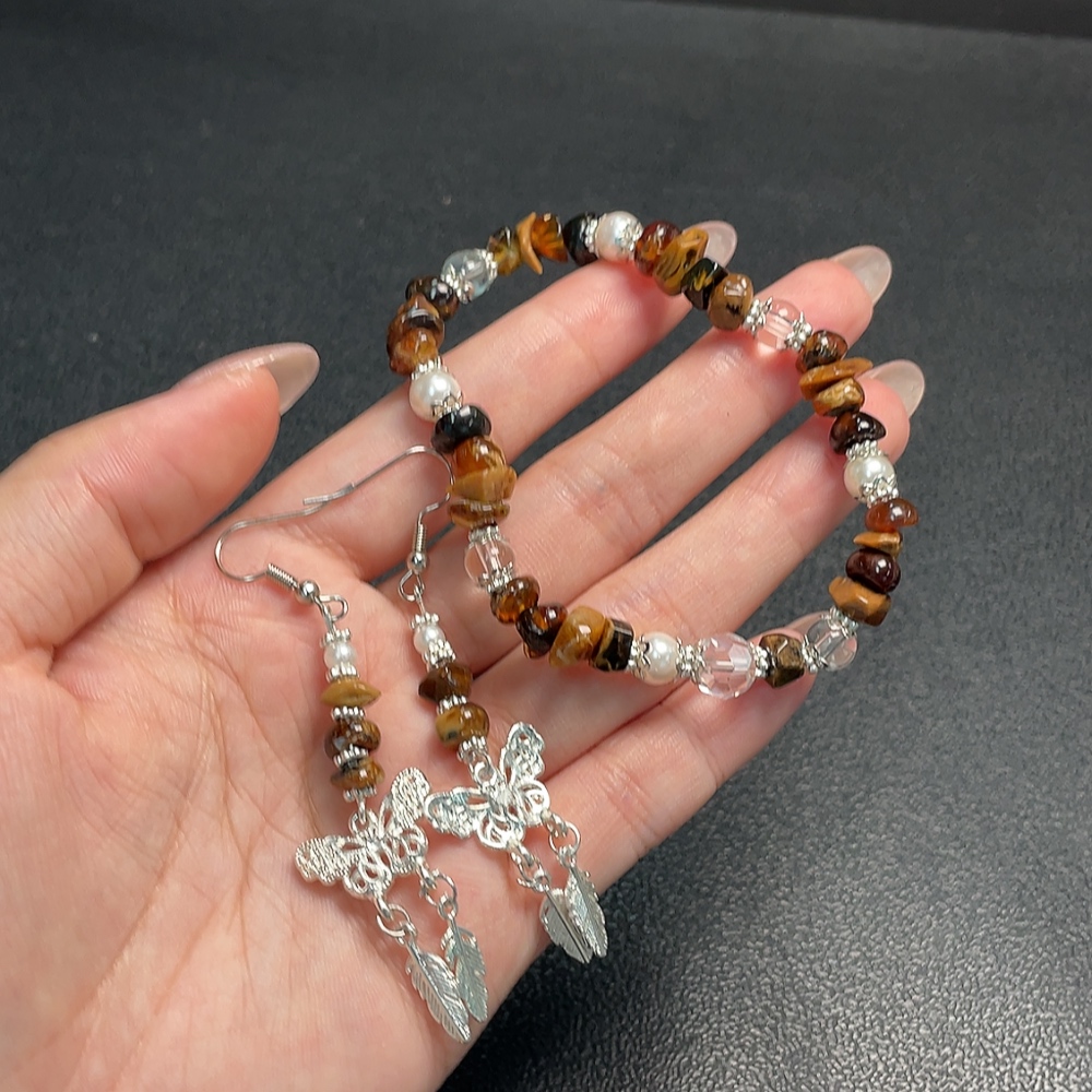 Amber & Beeswax Bracelet + Earrings Non-Gold, Stones May Be Non-Natural, Total Weight Approx. 12.3g, Sell as a Lot