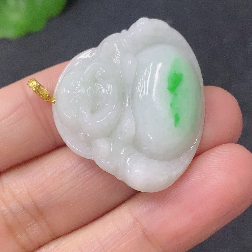 Jadeite Pendant Buddha 18k Total Weight Approx. 7g
