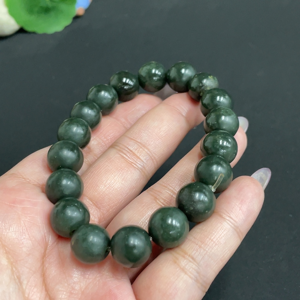 Hetian Jade Bracelet, Approx. 11.9 mm Beads, Total Weight Approx. 47.7g
