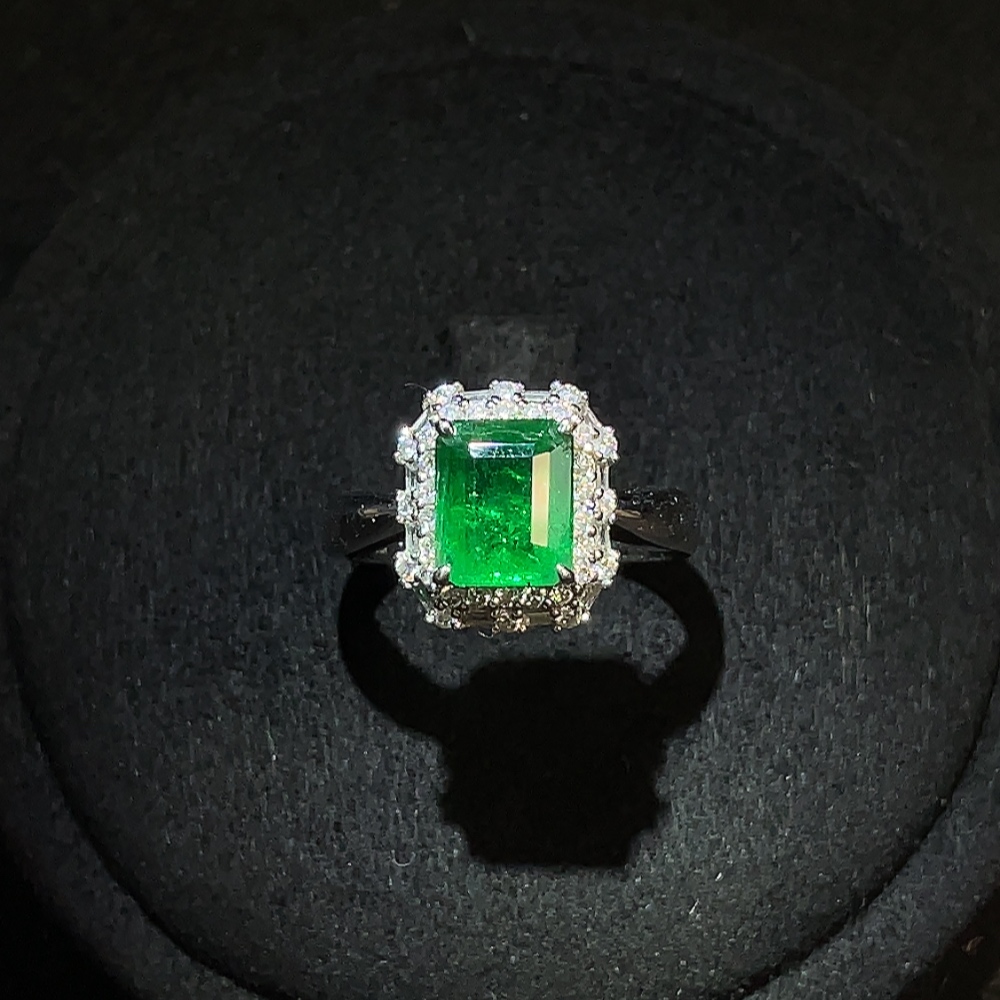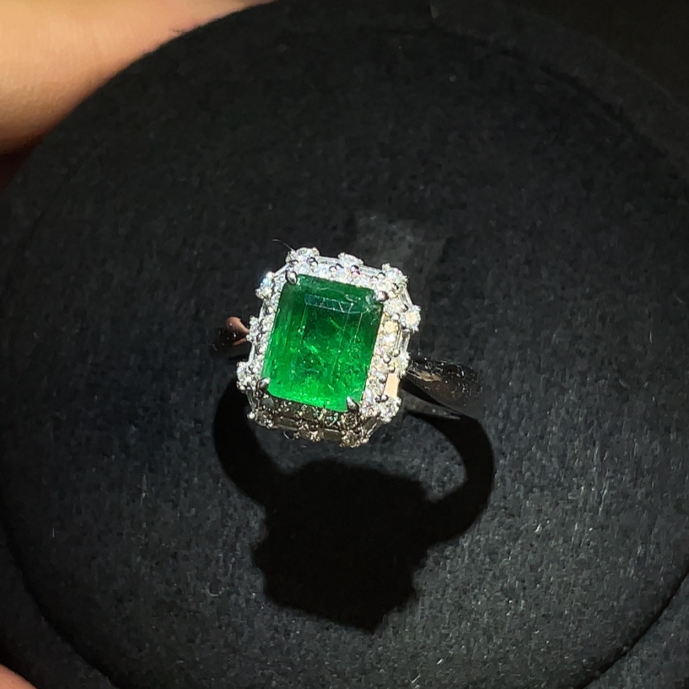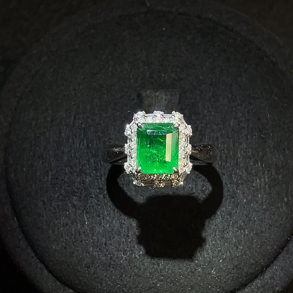 Emerald Ring 18K Gold Clarity Enhanced with Diamond Accents Total Weight Approx. 4.43g Size 13