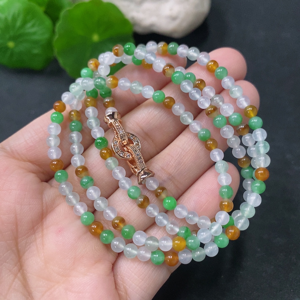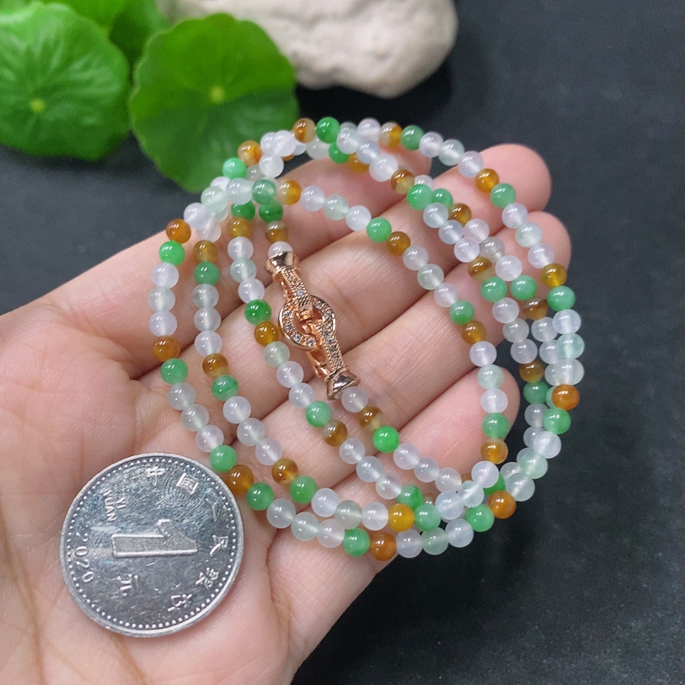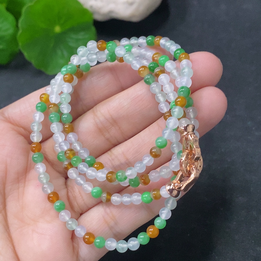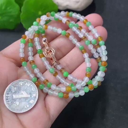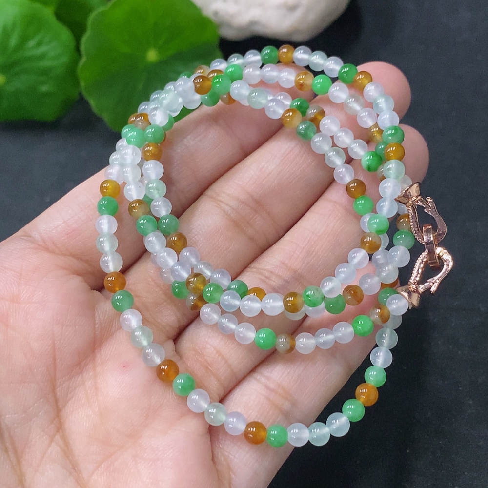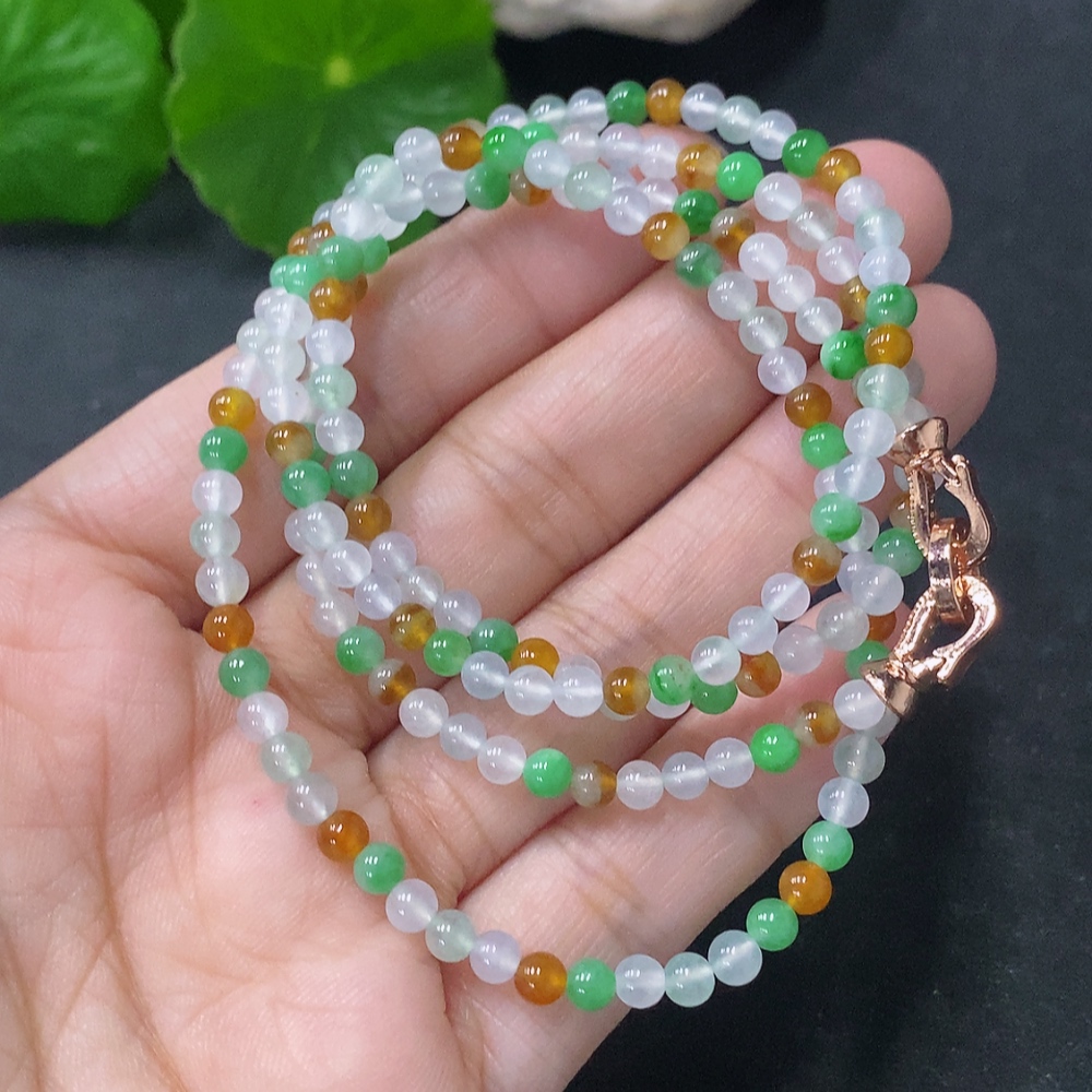 Jadeite Bead Necklace Approx. 3.8mm Non-Gold Total Weight Approx. 15g Yellow Color Origin Undetermined
