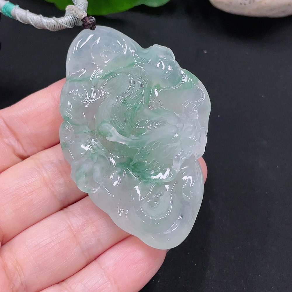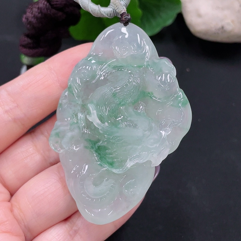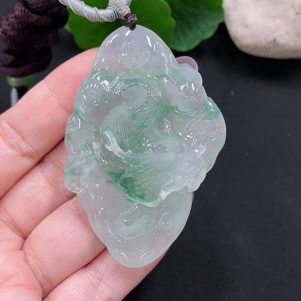 Jadeite Dragon Pendant Total Weight Approximately 43.8g (Including Rope Weight)