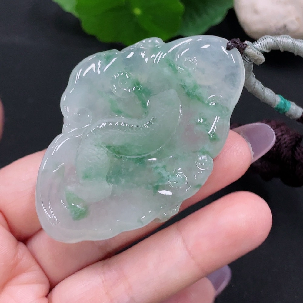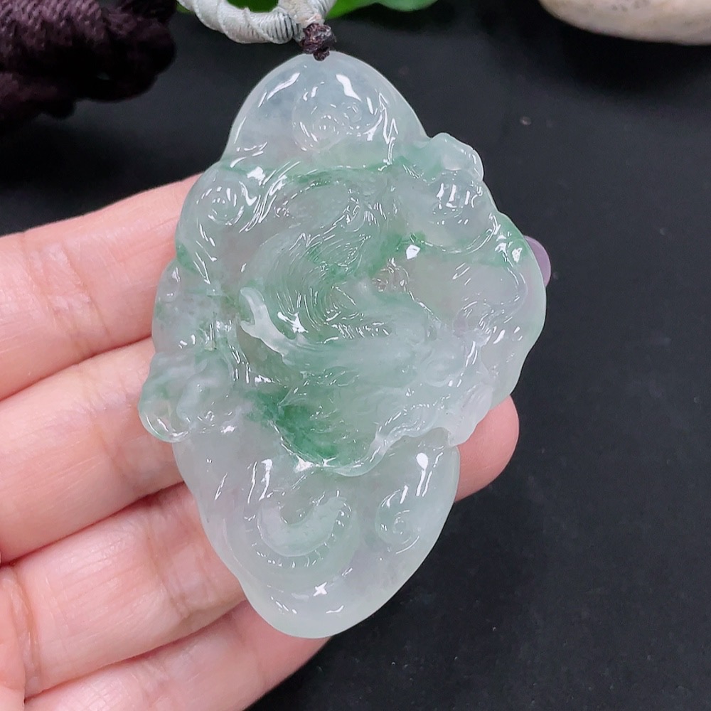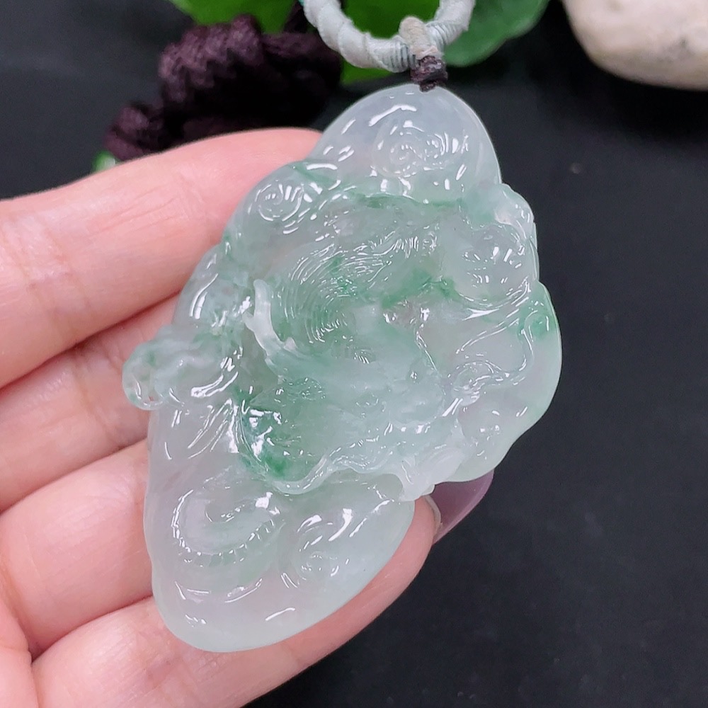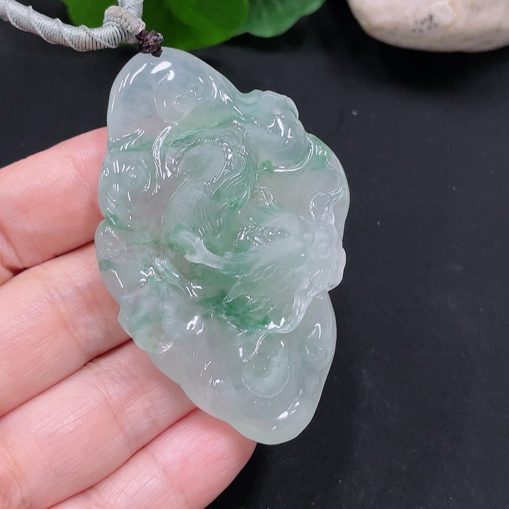 Jadeite Dragon Pendant Total Weight Approximately 43.8g (Including Rope Weight)