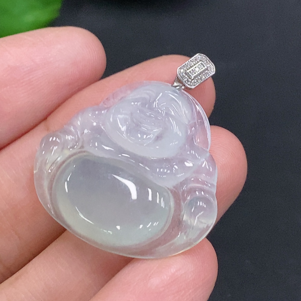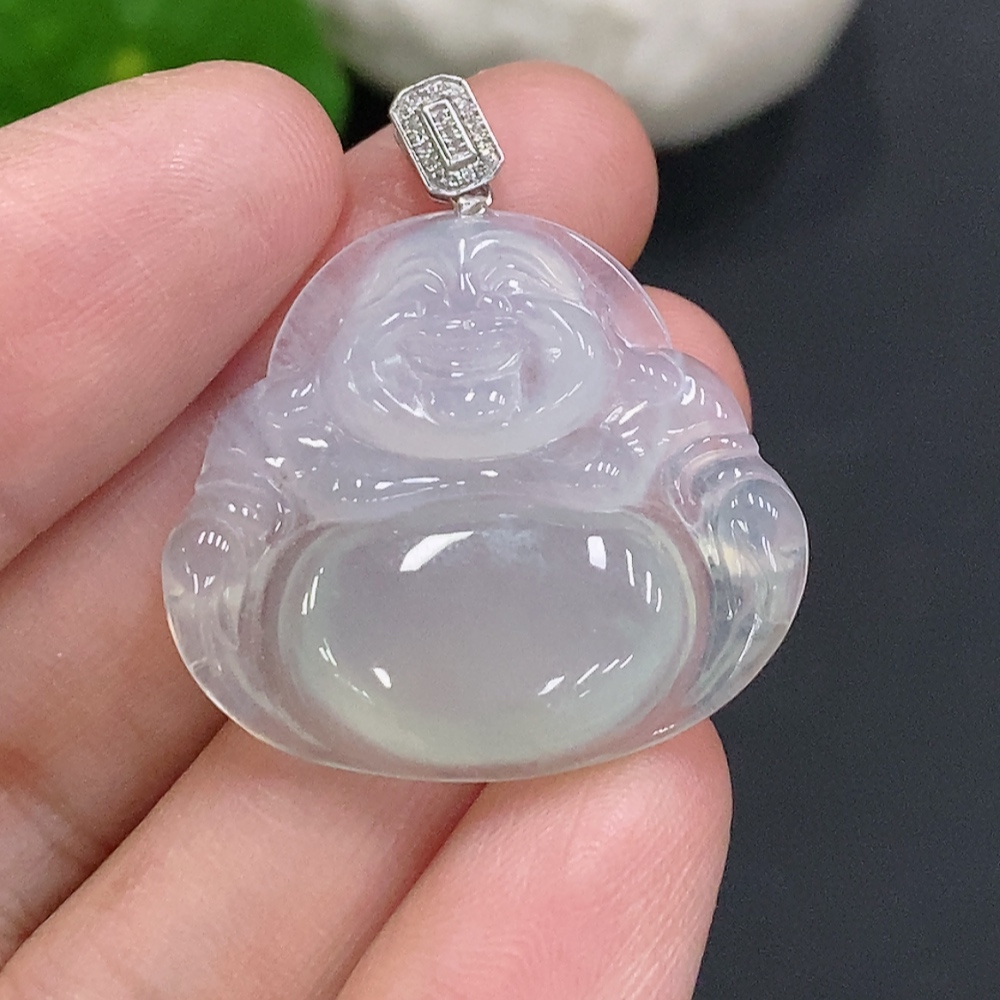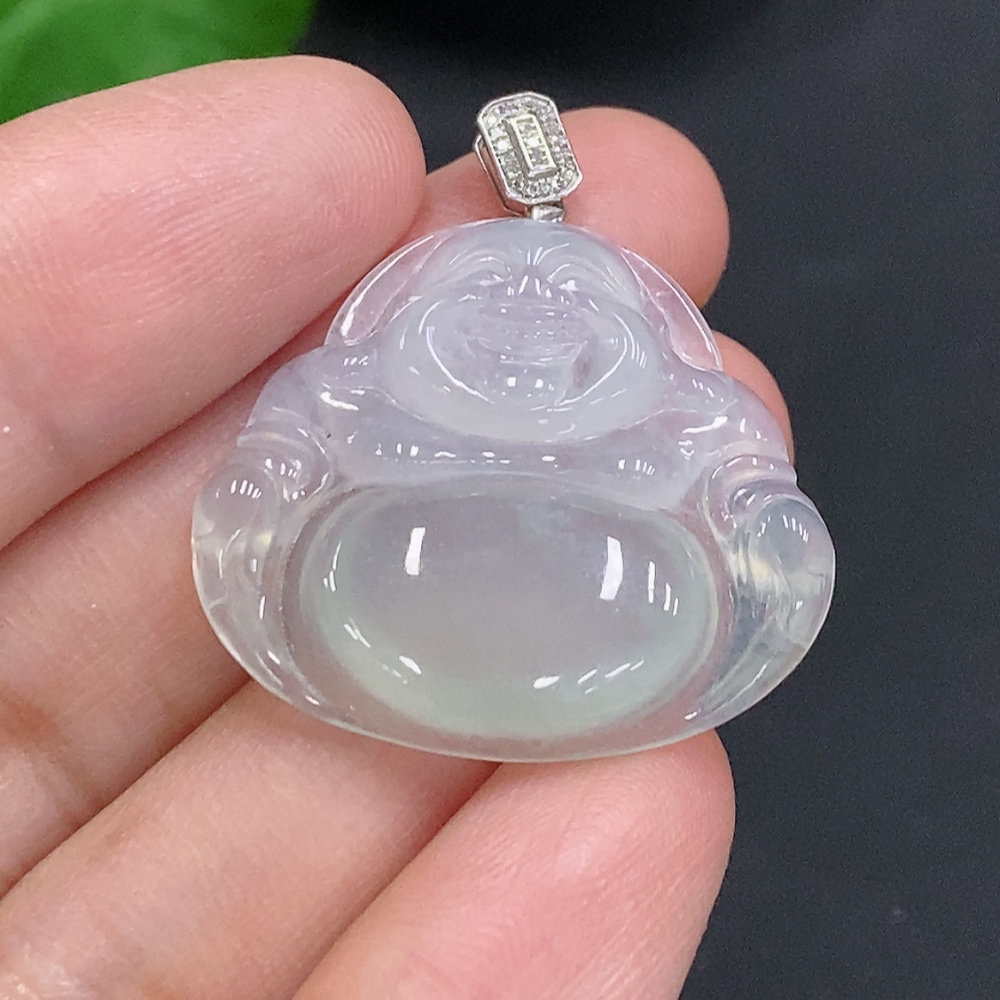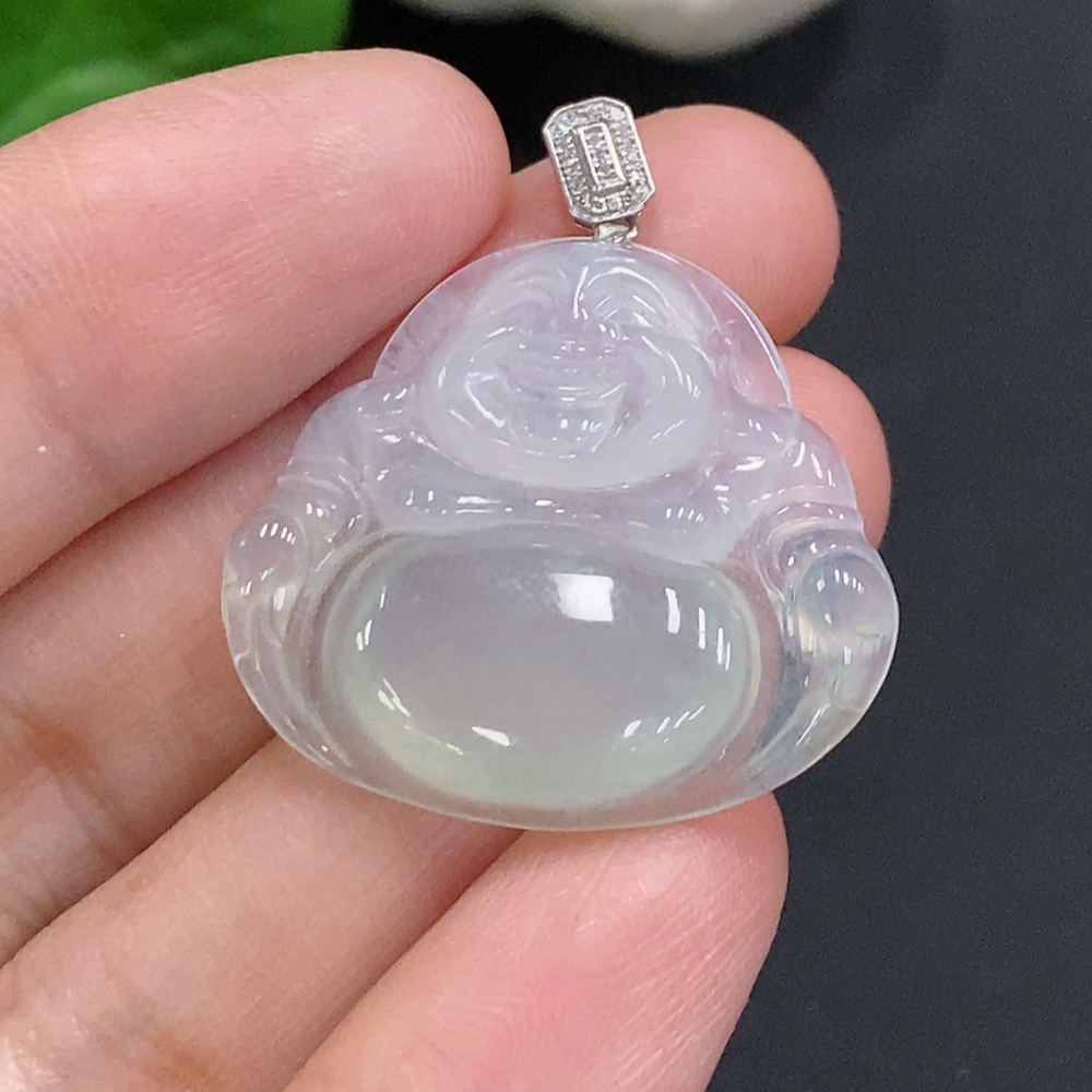 Jadeite Buddha Pendant with 18K Gold Bail, Total Weight Approx. 5.2g (Diamond Accented)