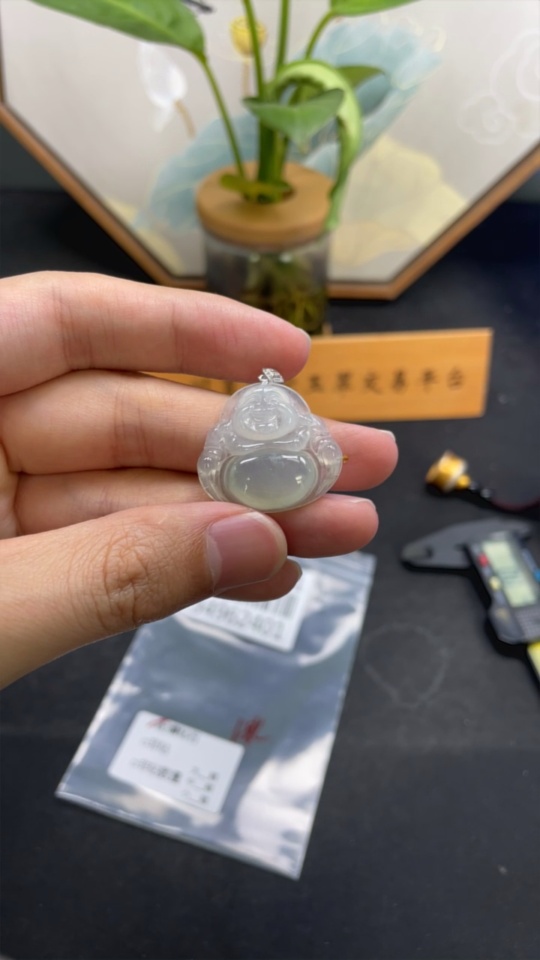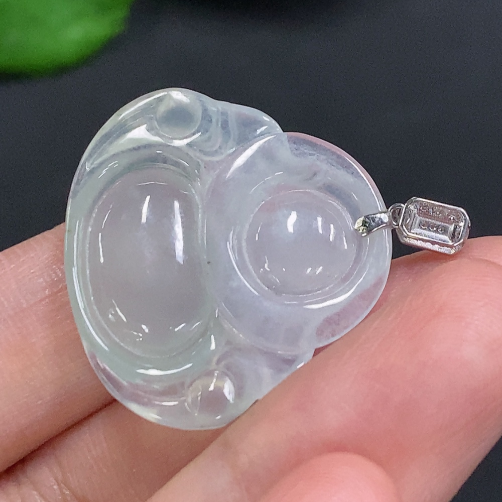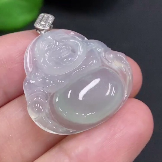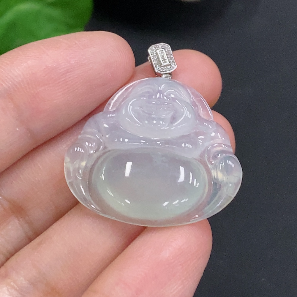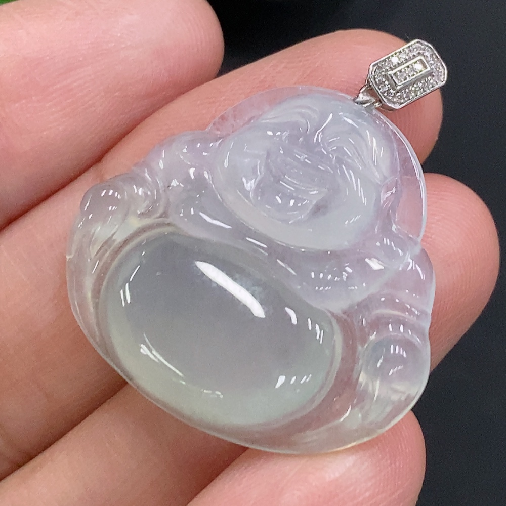 Jadeite Buddha Pendant with 18K Gold Bail, Total Weight Approx. 5.2g (Diamond Accented)
