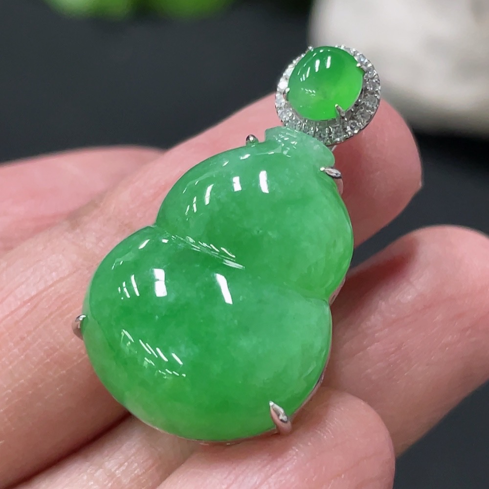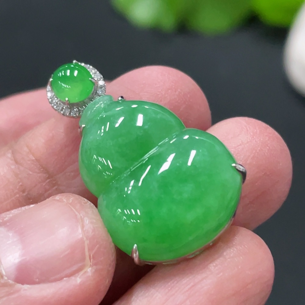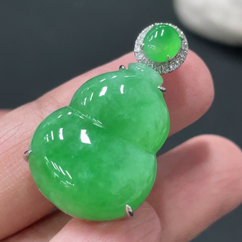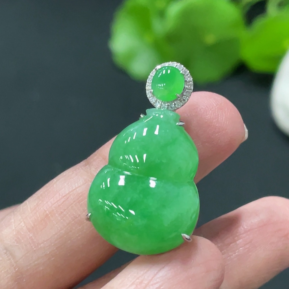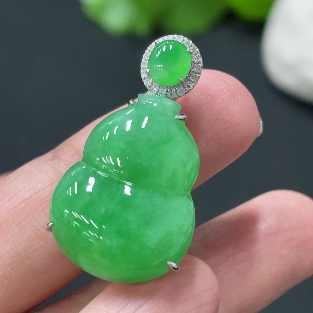 Jadeite Inlaid Gourd Pendant 18k with Diamond Accent Total Weight Approximately 5.3g