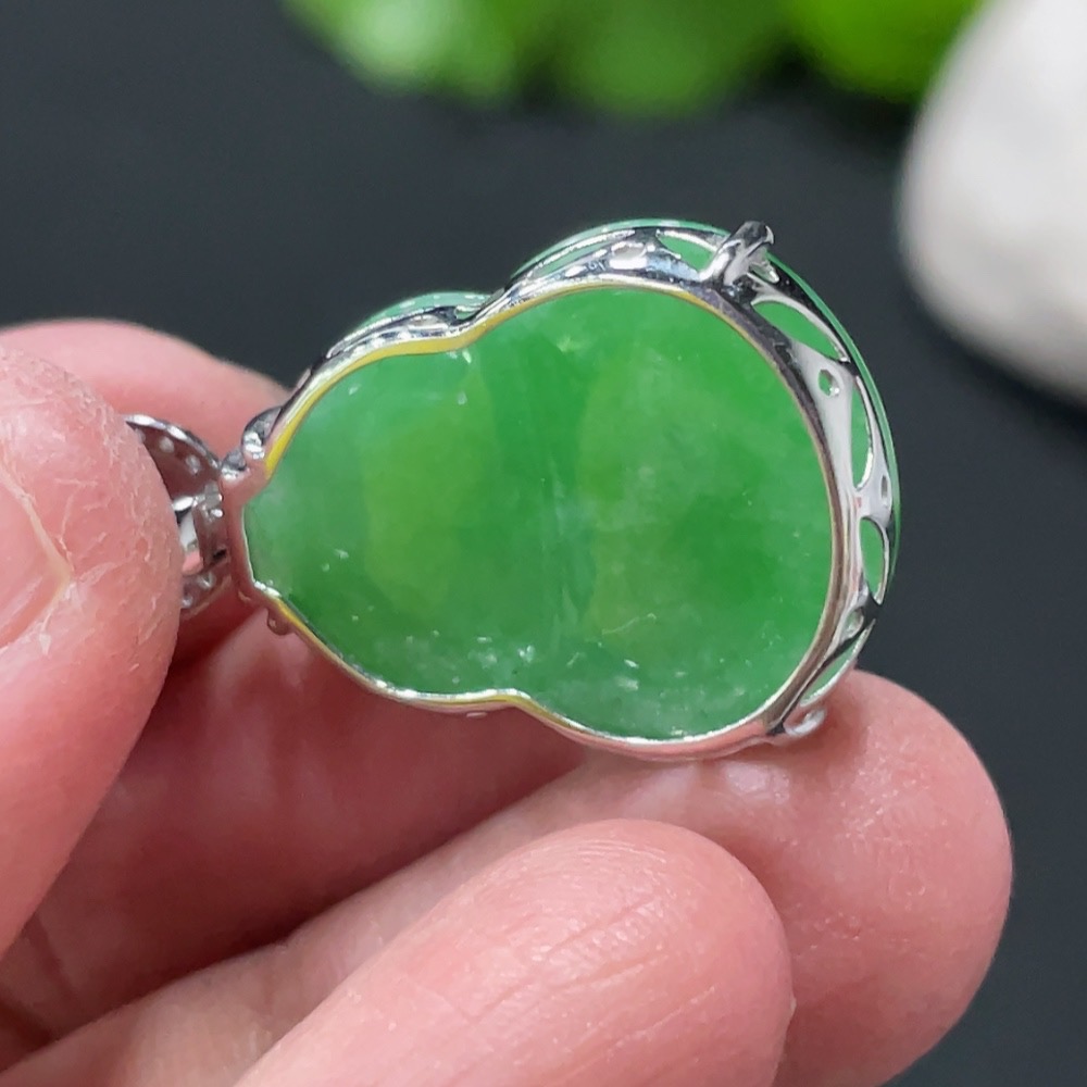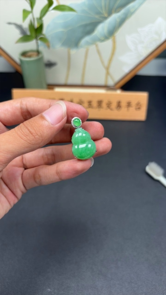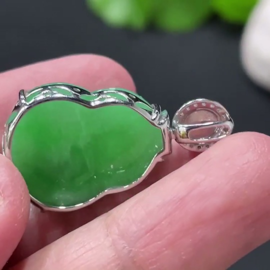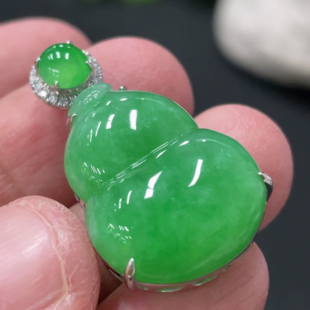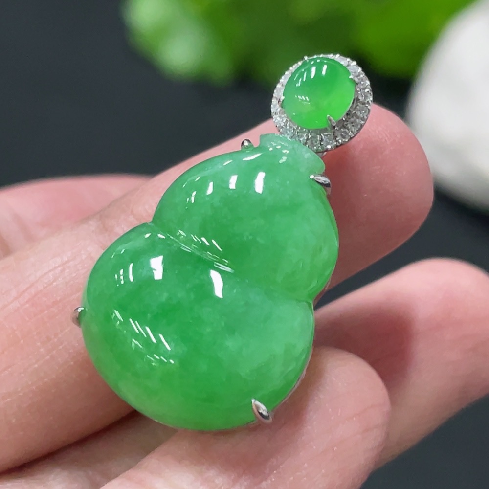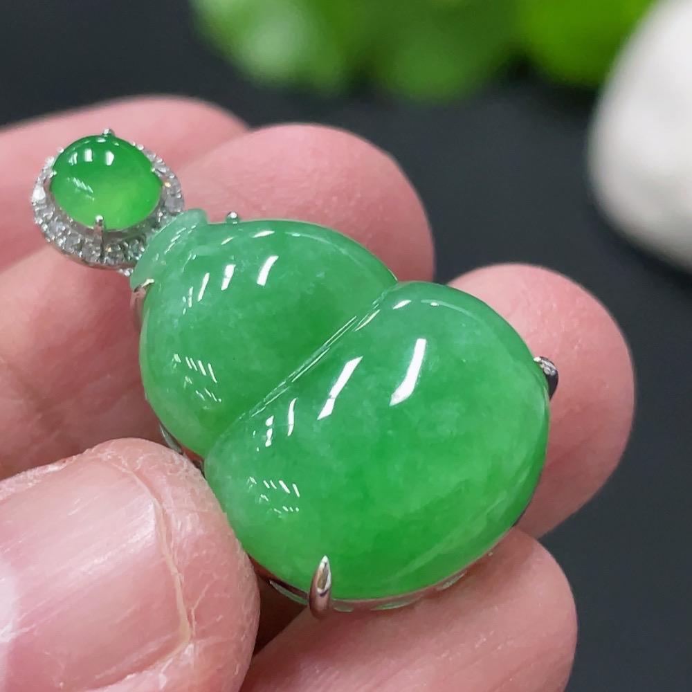 Jadeite Inlaid Gourd Pendant 18k with Diamond Accent Total Weight Approximately 5.3g