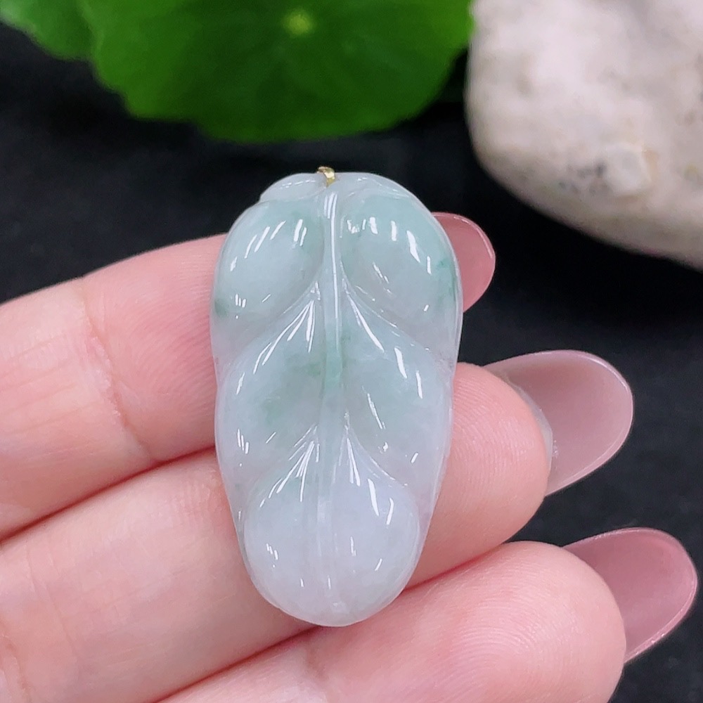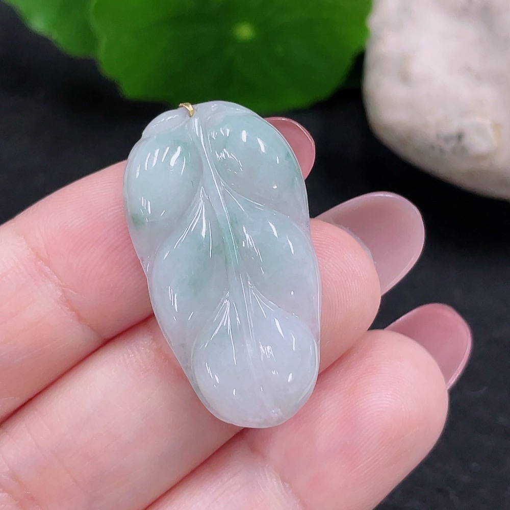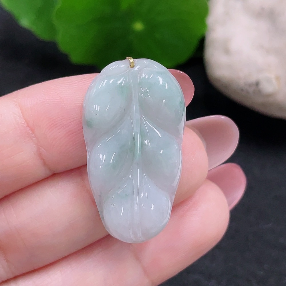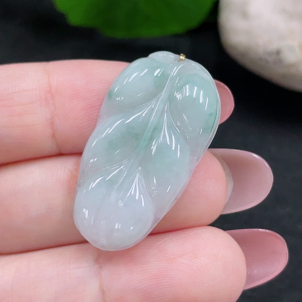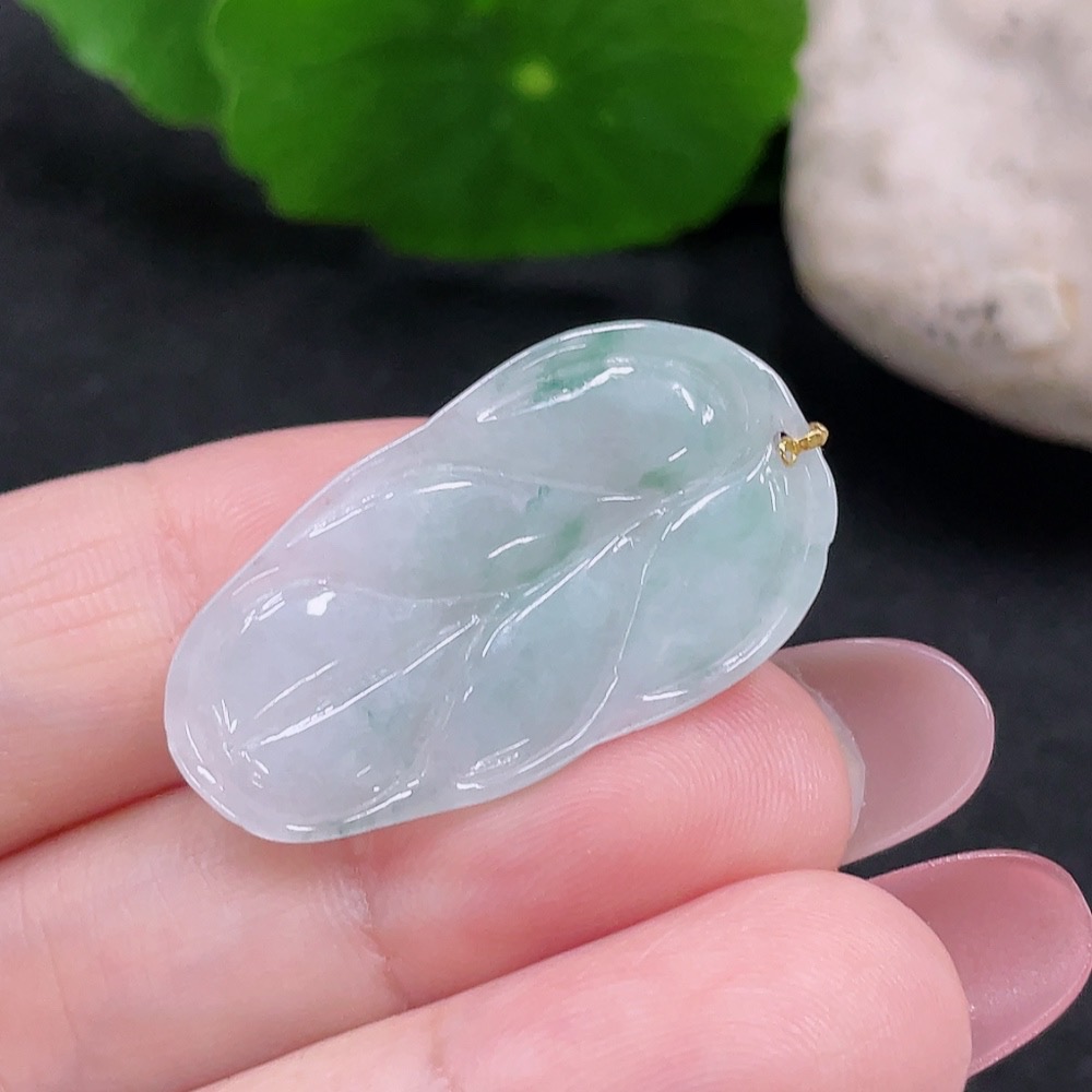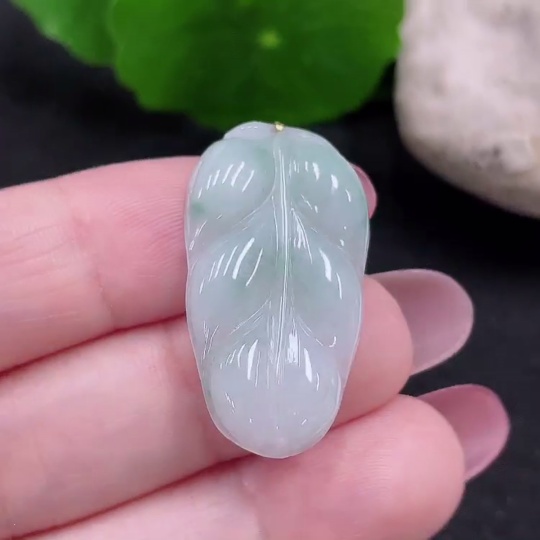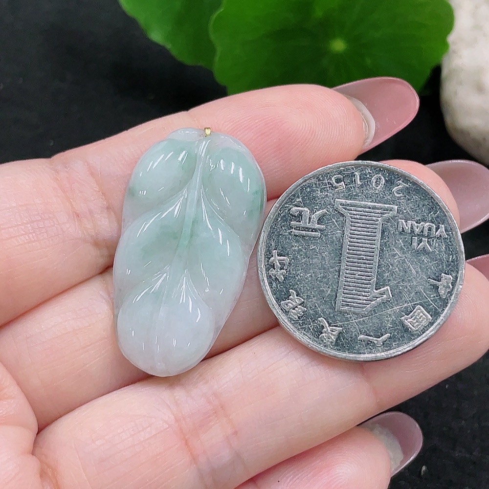 Jadeite Leaf Pendant with 67% Gold Content, Total Weight Approximately 3.5g