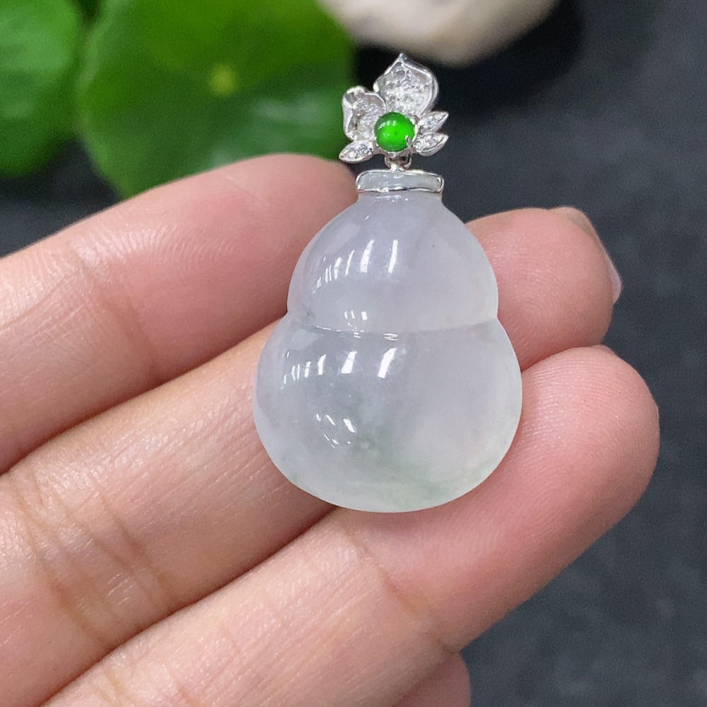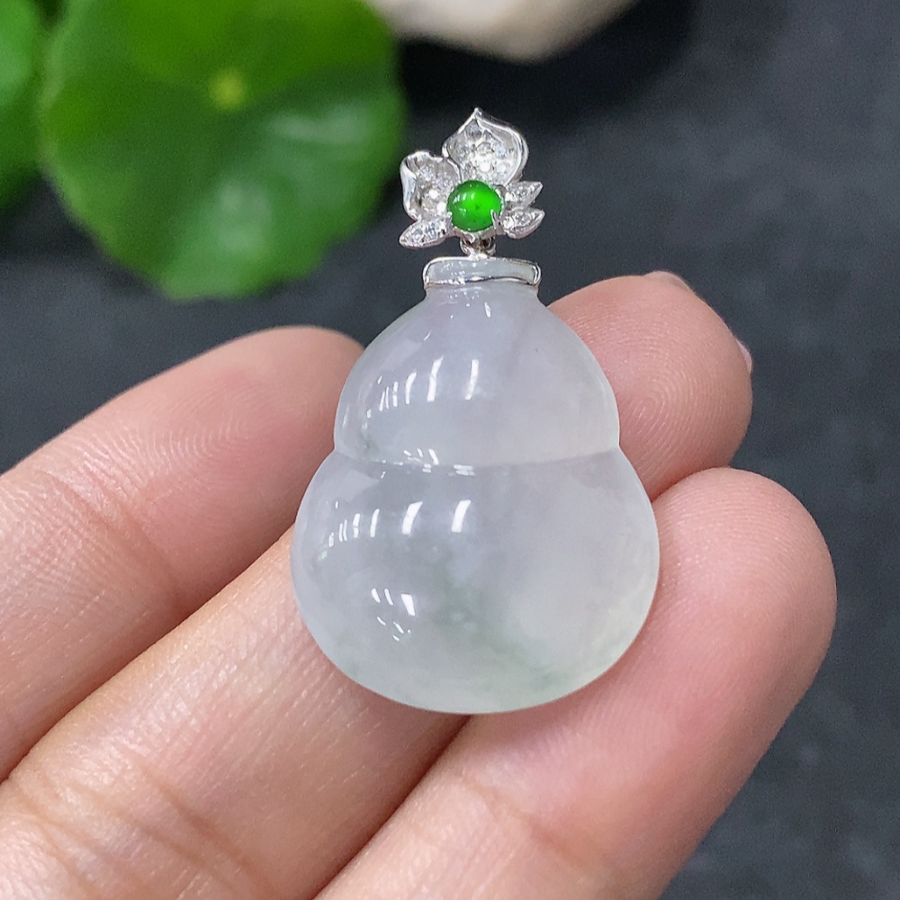 Jadeite Pendant Gourd 18k Non-Diamond Total Weight Approx. 4.88g