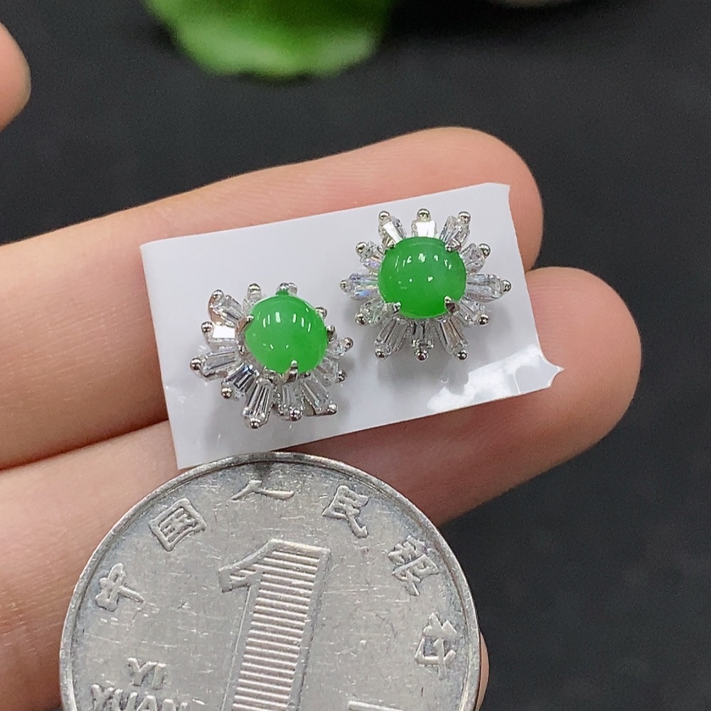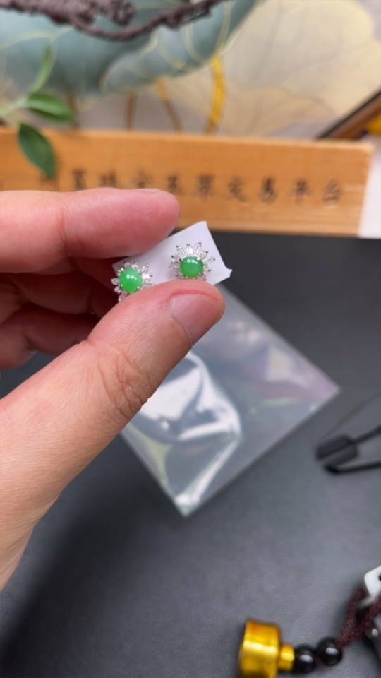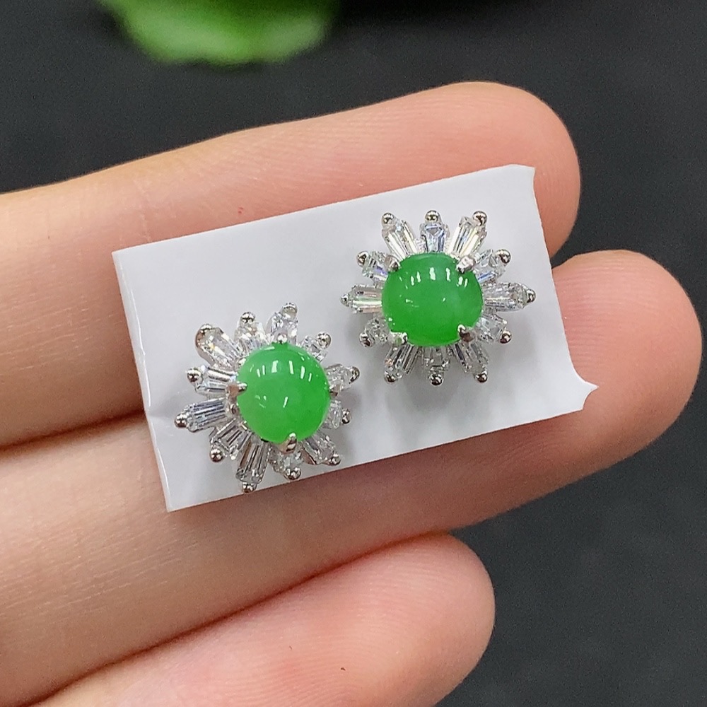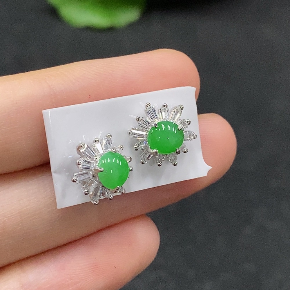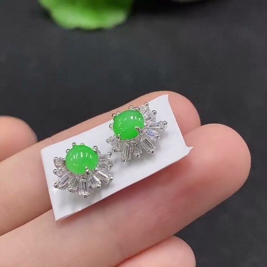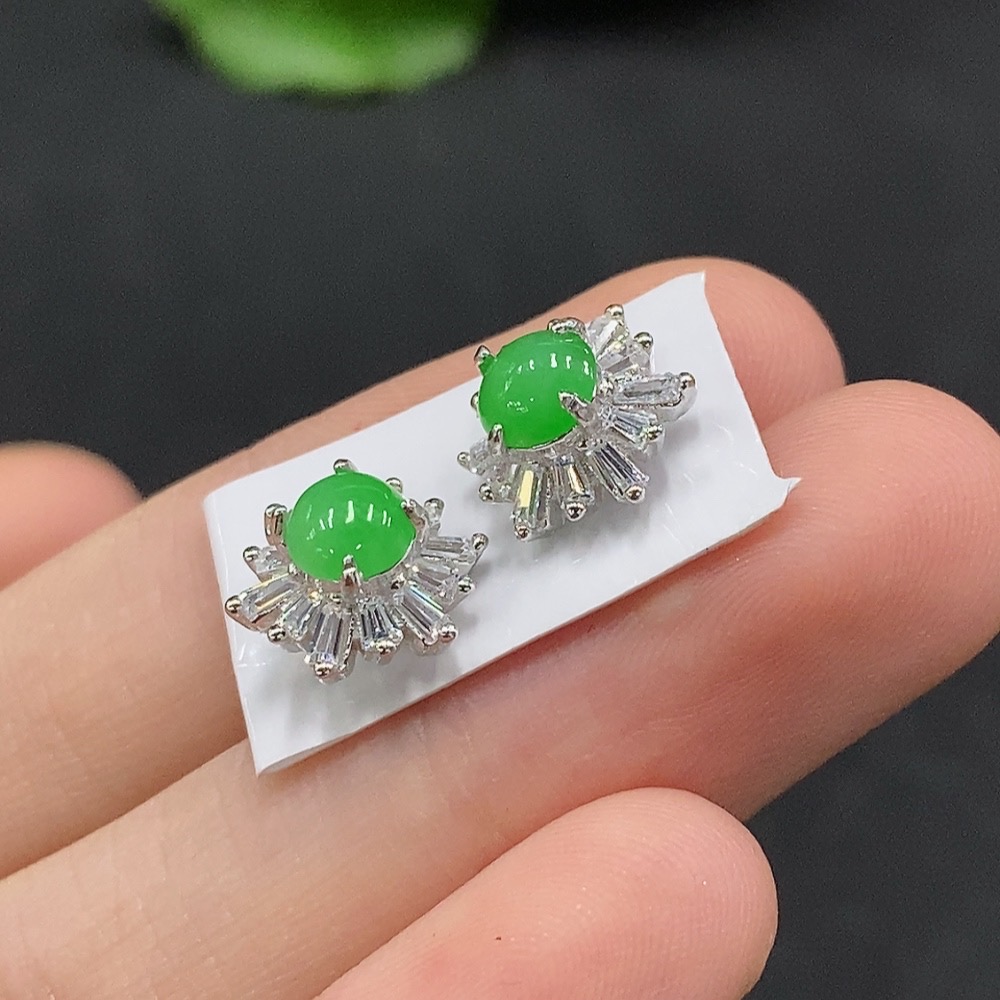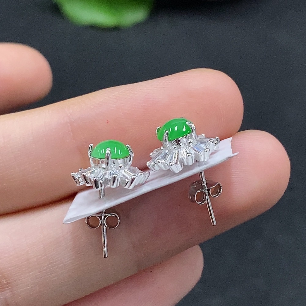 Jadeite Cabochon Inlaid Earrings Non-Gold Inlay Total Weight Approx. 2.09g
