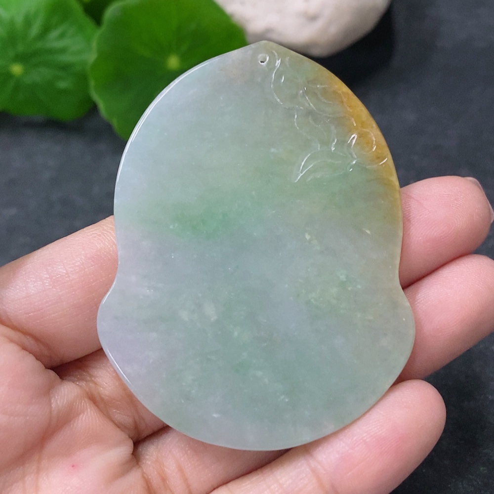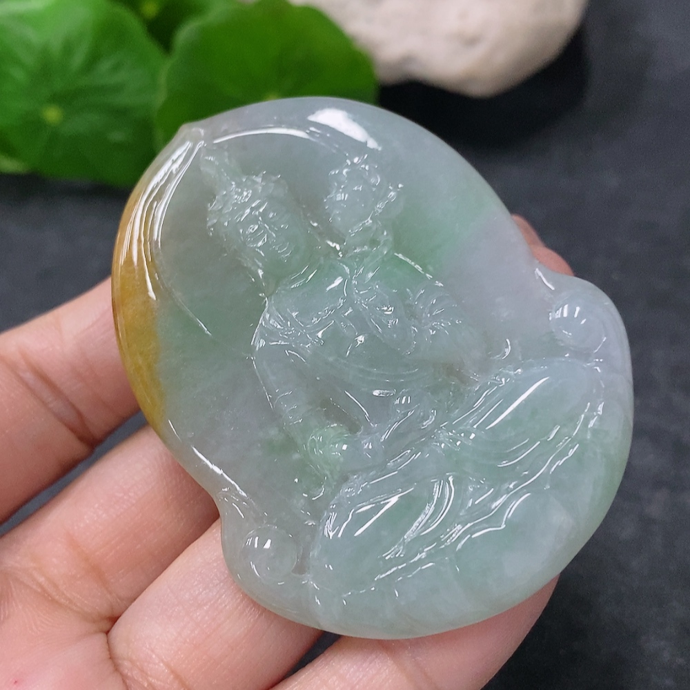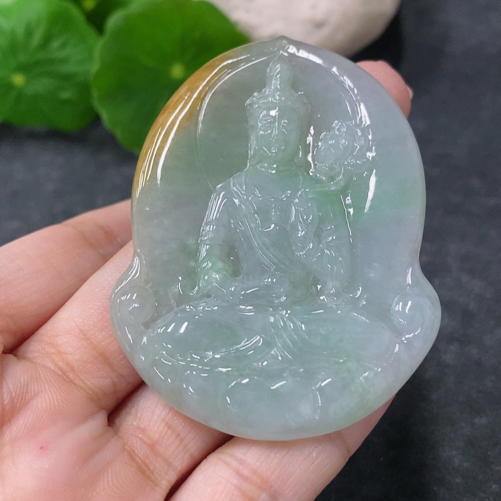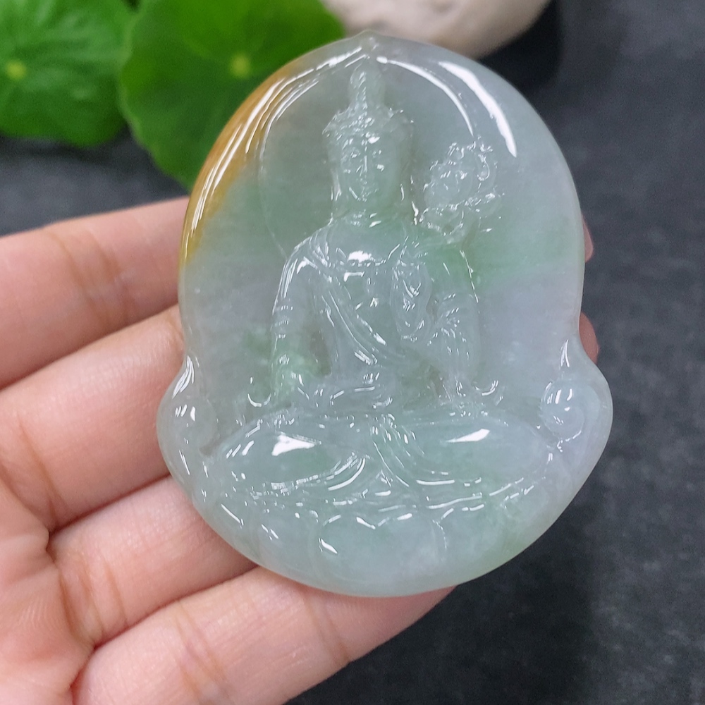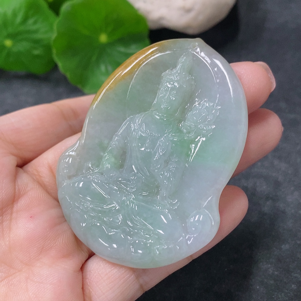 Jadeite Pendant Guanyin Total Weight Approx. 27.7g Yellow Part Color Origin Undetermined 27.7g