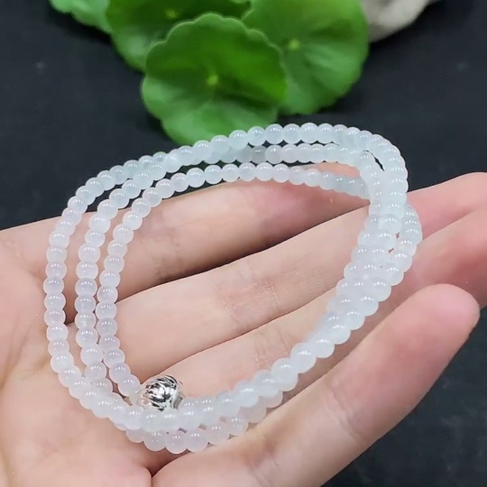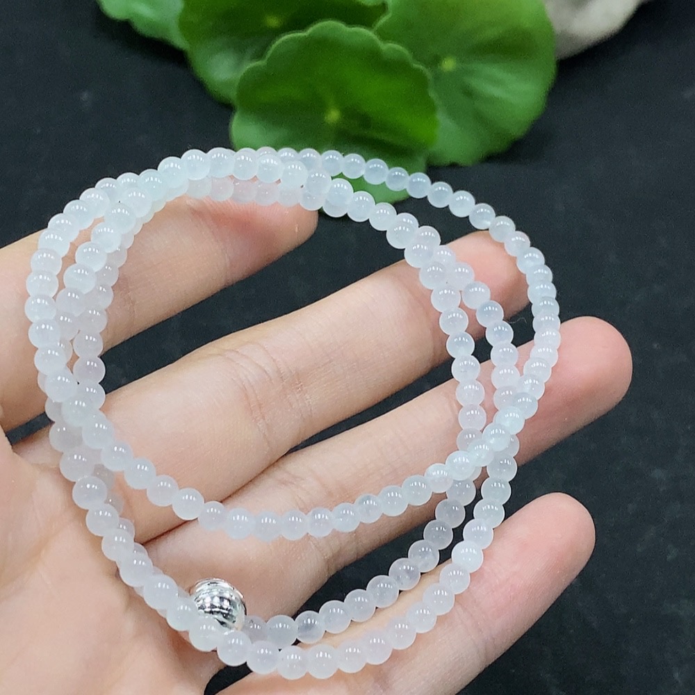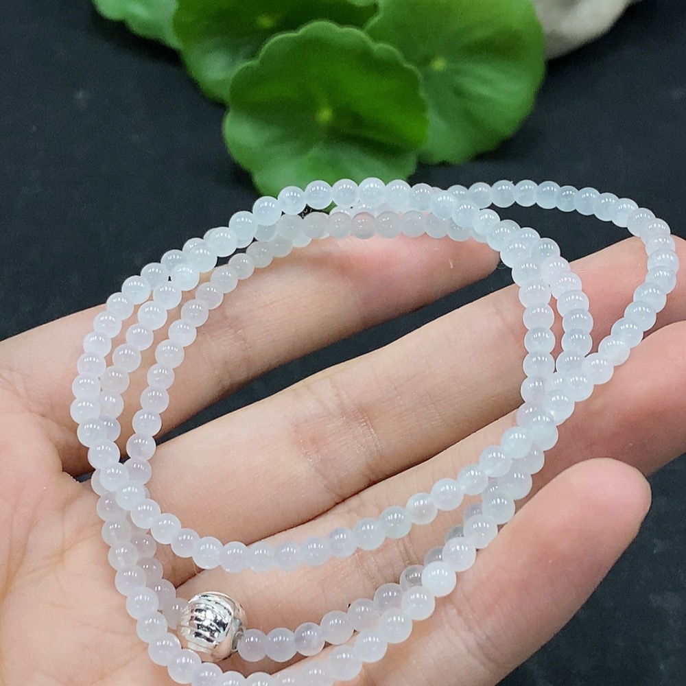 Jadeite Bead Necklace Approx. 3.4mm Non-Gold Setting Total Weight Approx. 13.1g