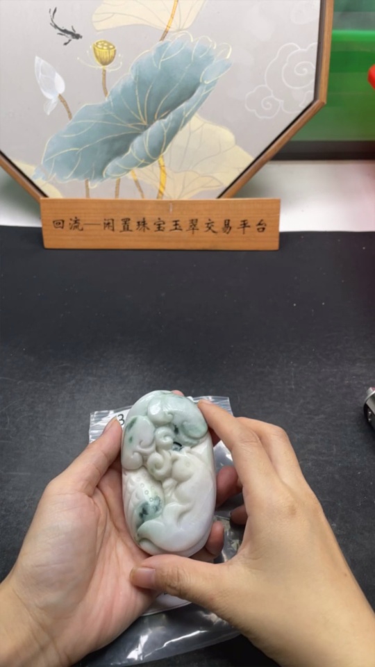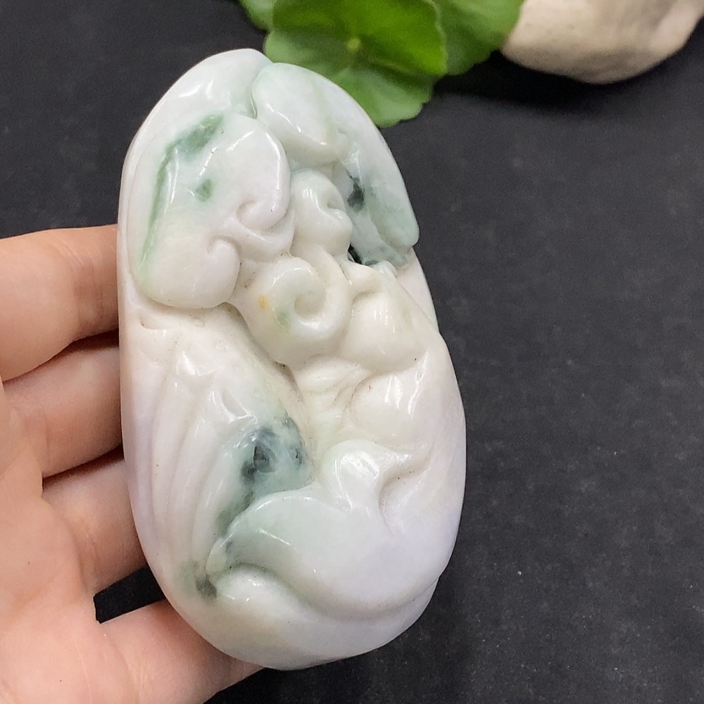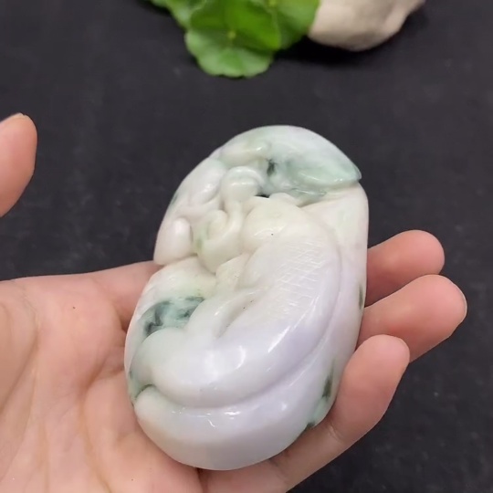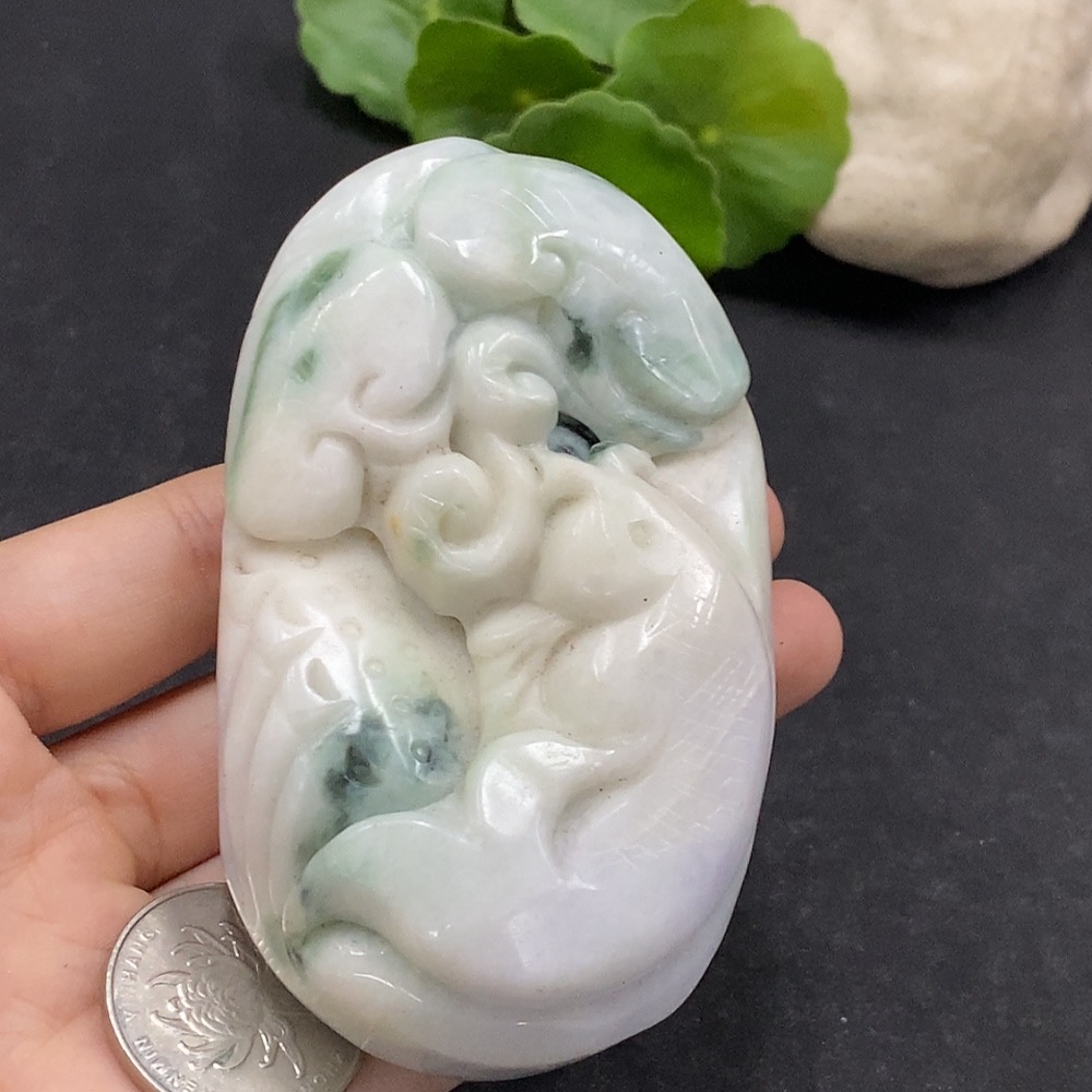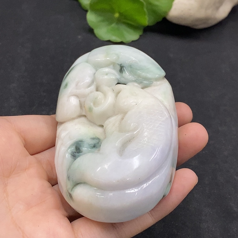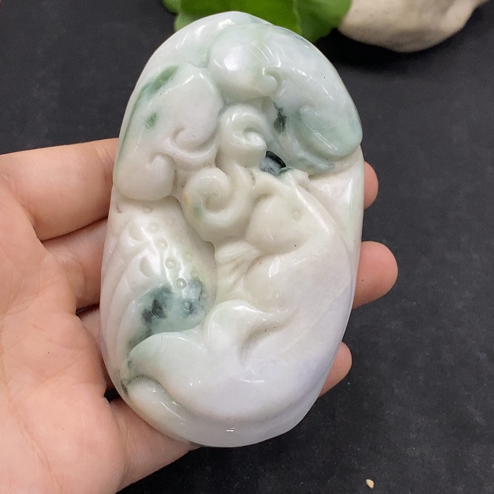 Jadeite Handheld Carving Fish Symbolizing Annual Abundance Total Weight Approx. 263.6g Containing Other Mineral Components