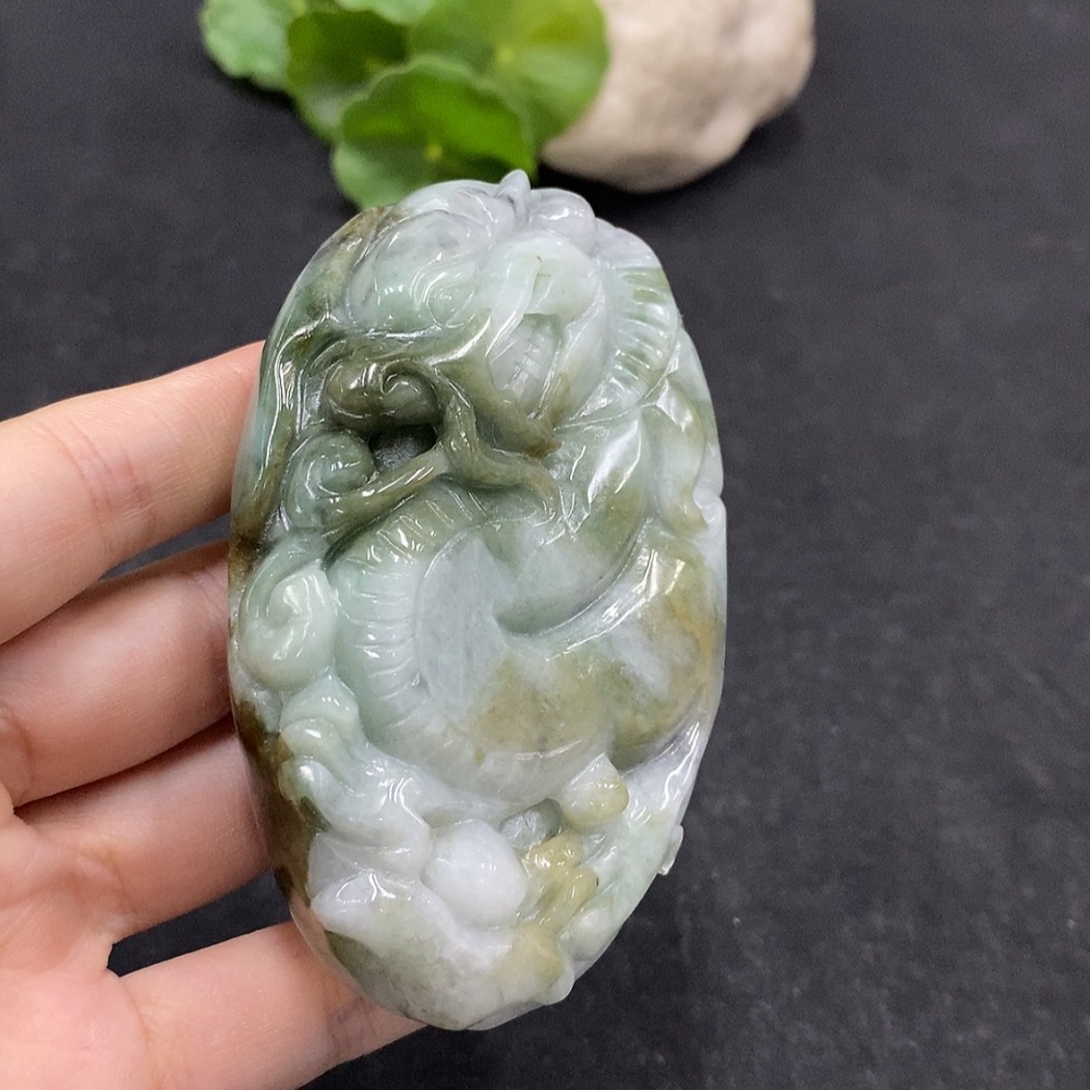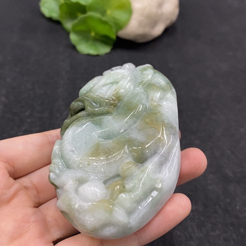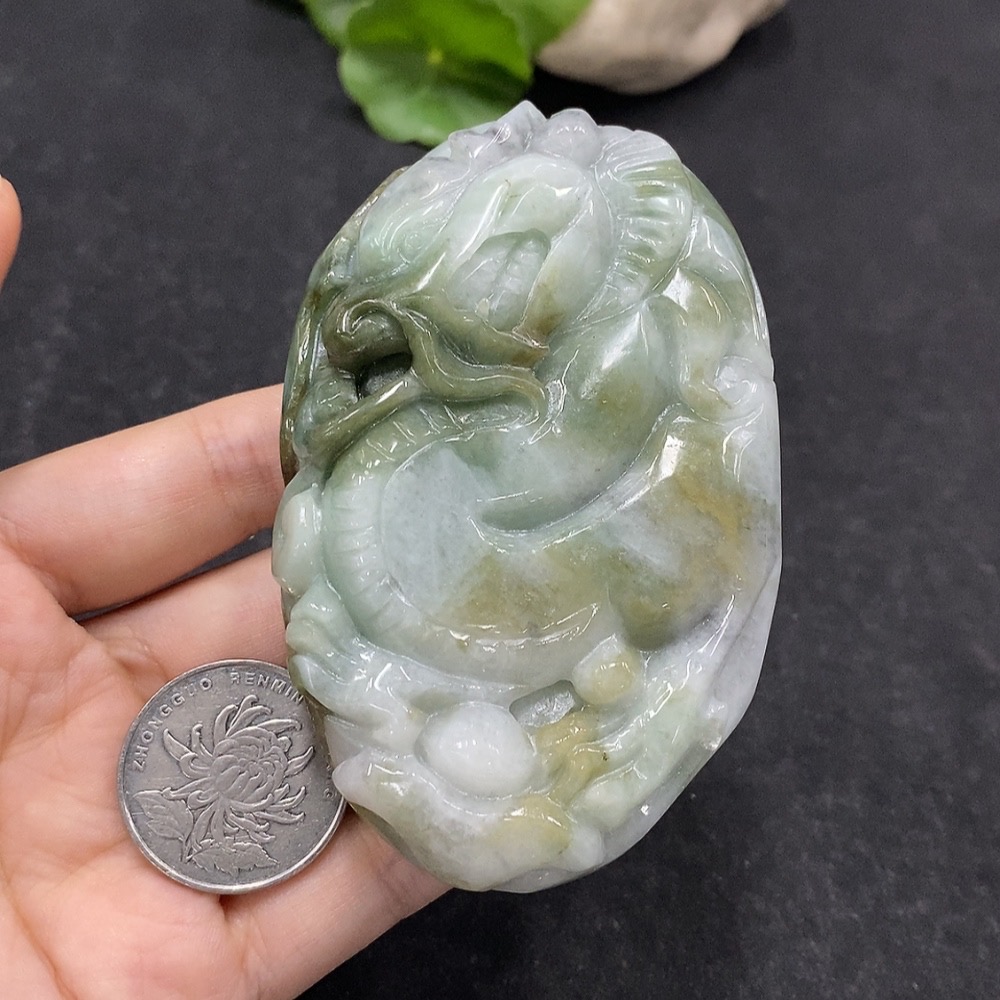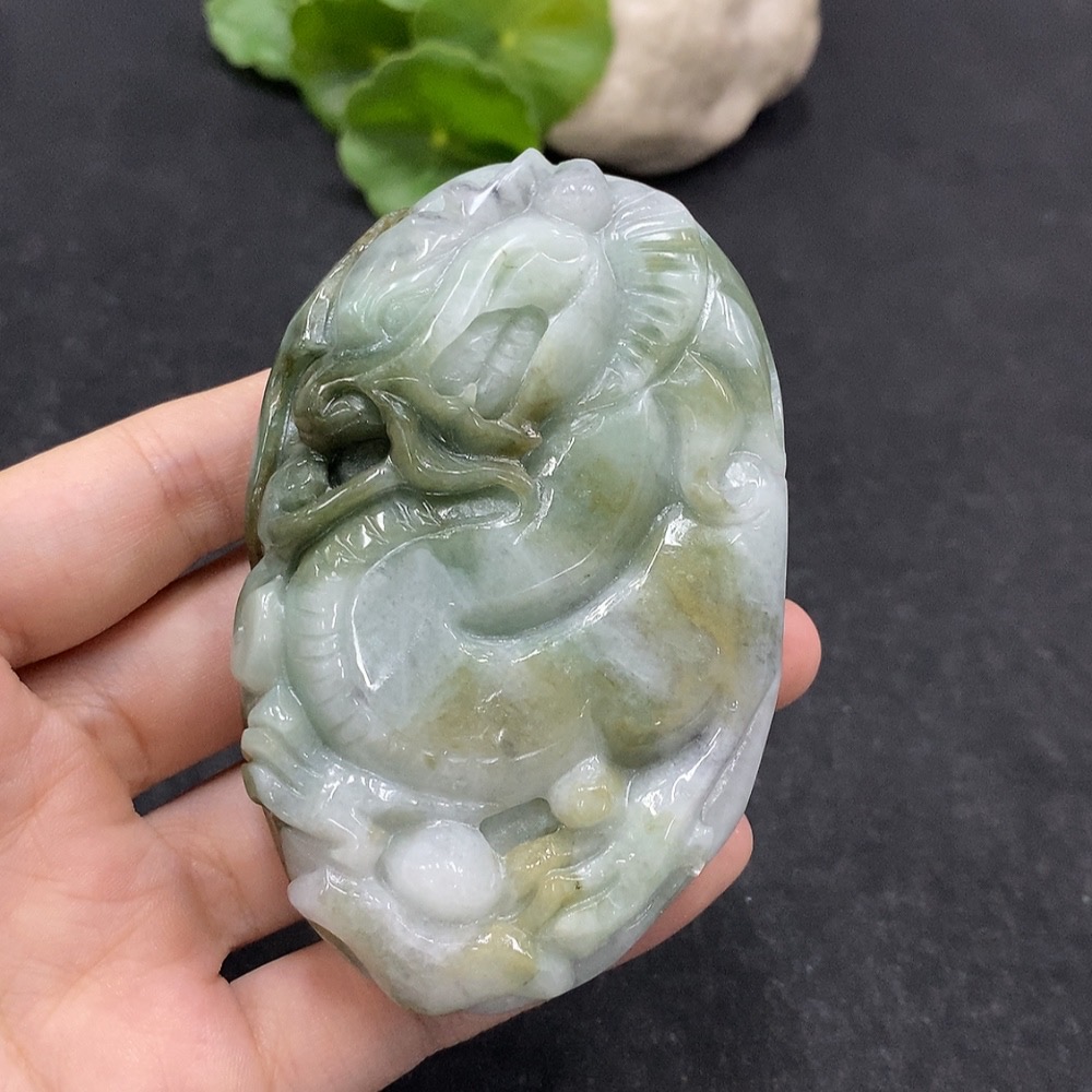 Jadeite Handheld Carving Dragon Yellow Part Color Origin Undetermined Total Weight Approx. 230.6g