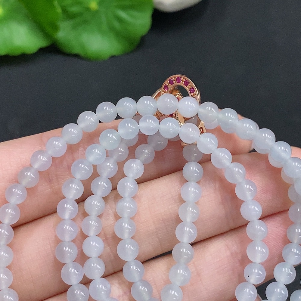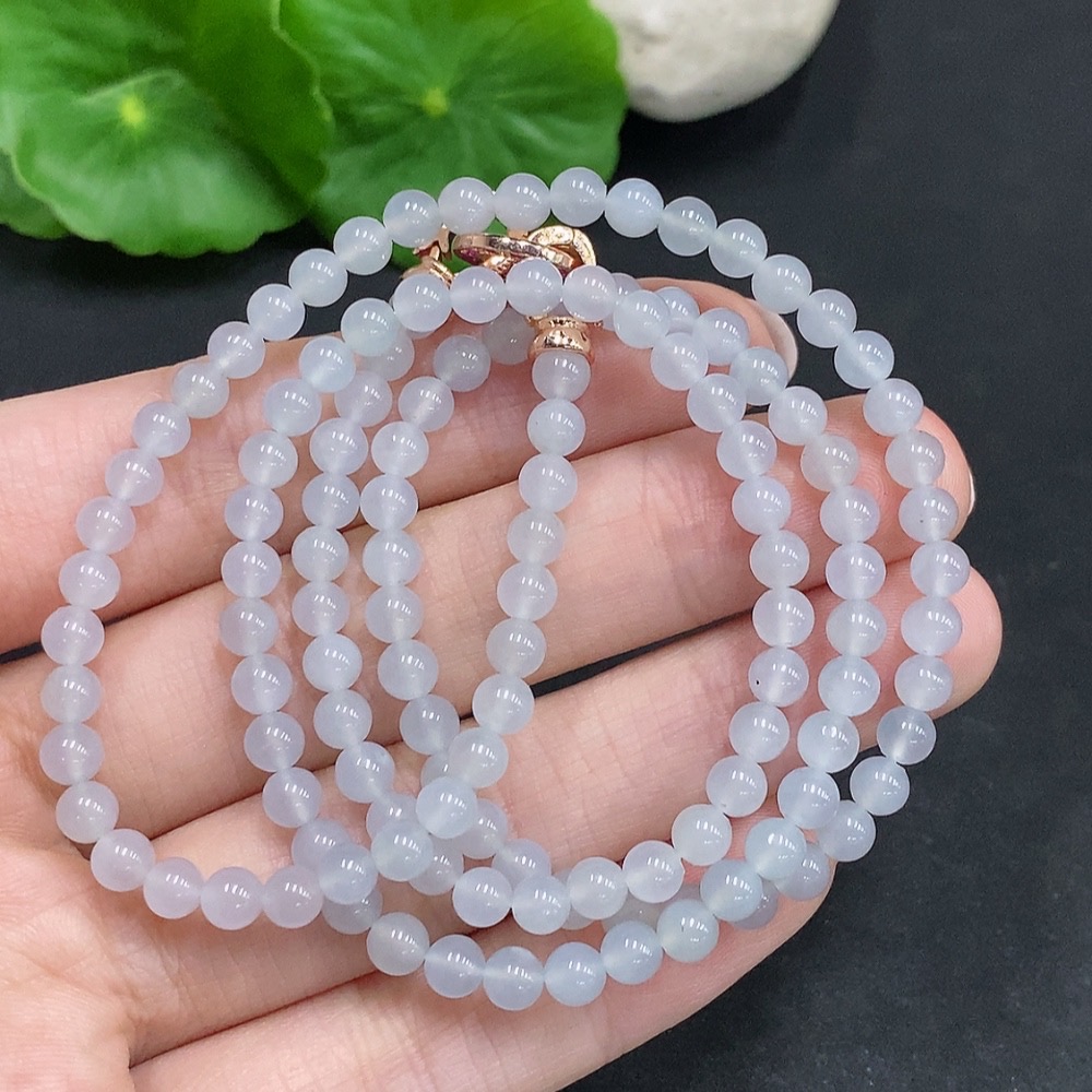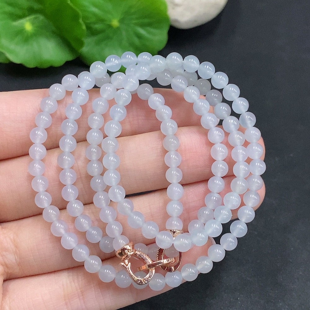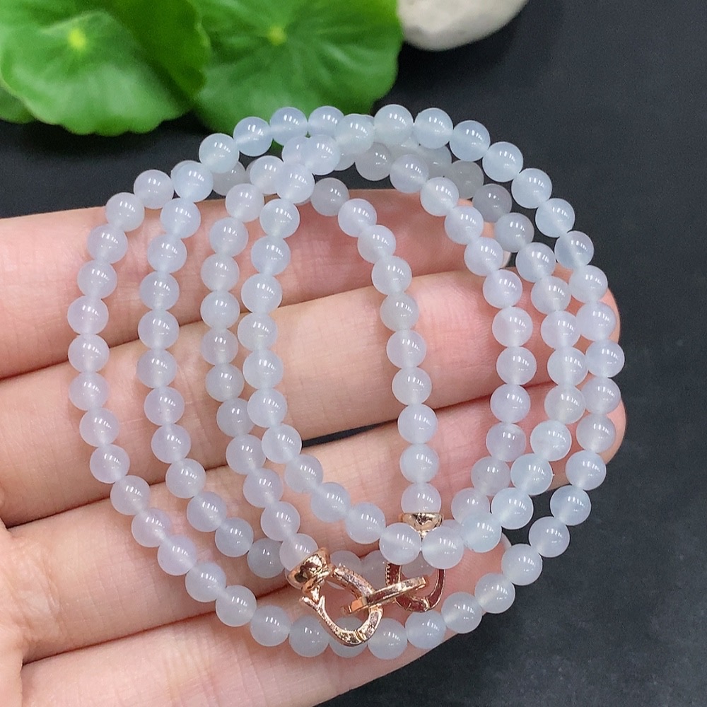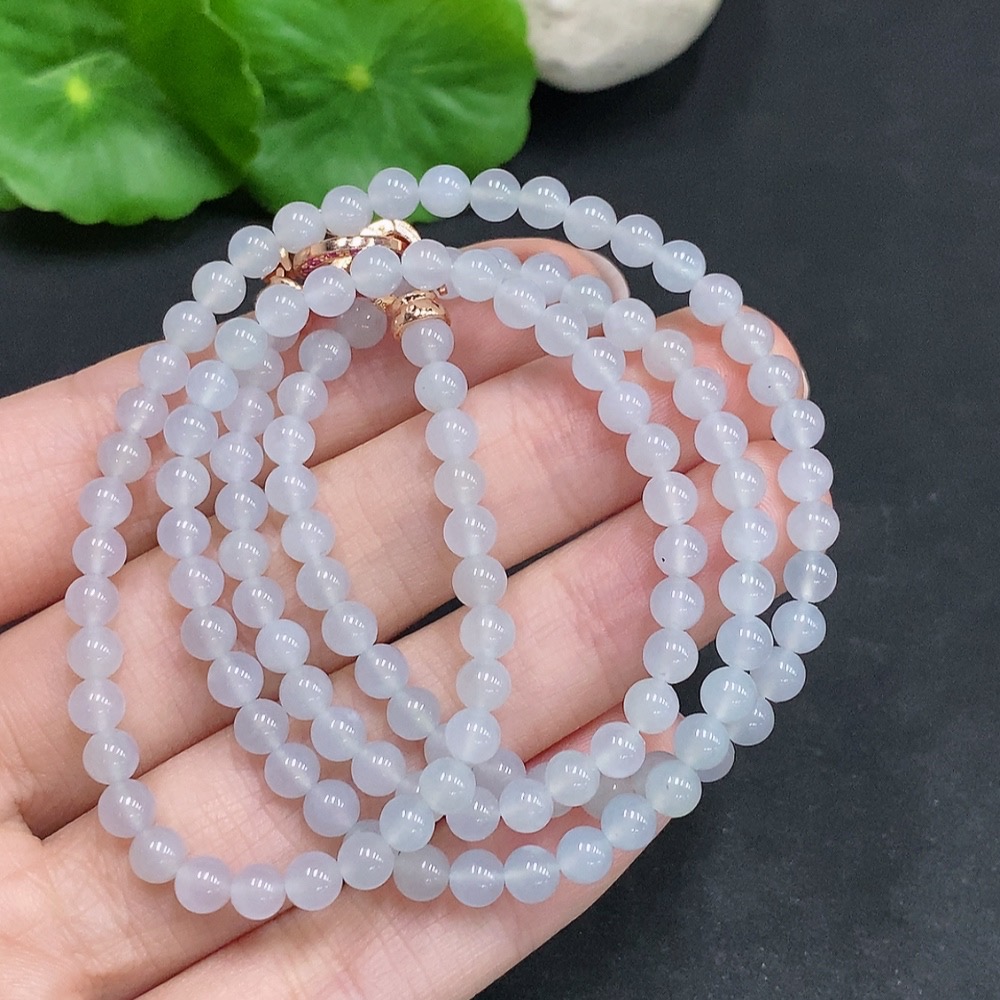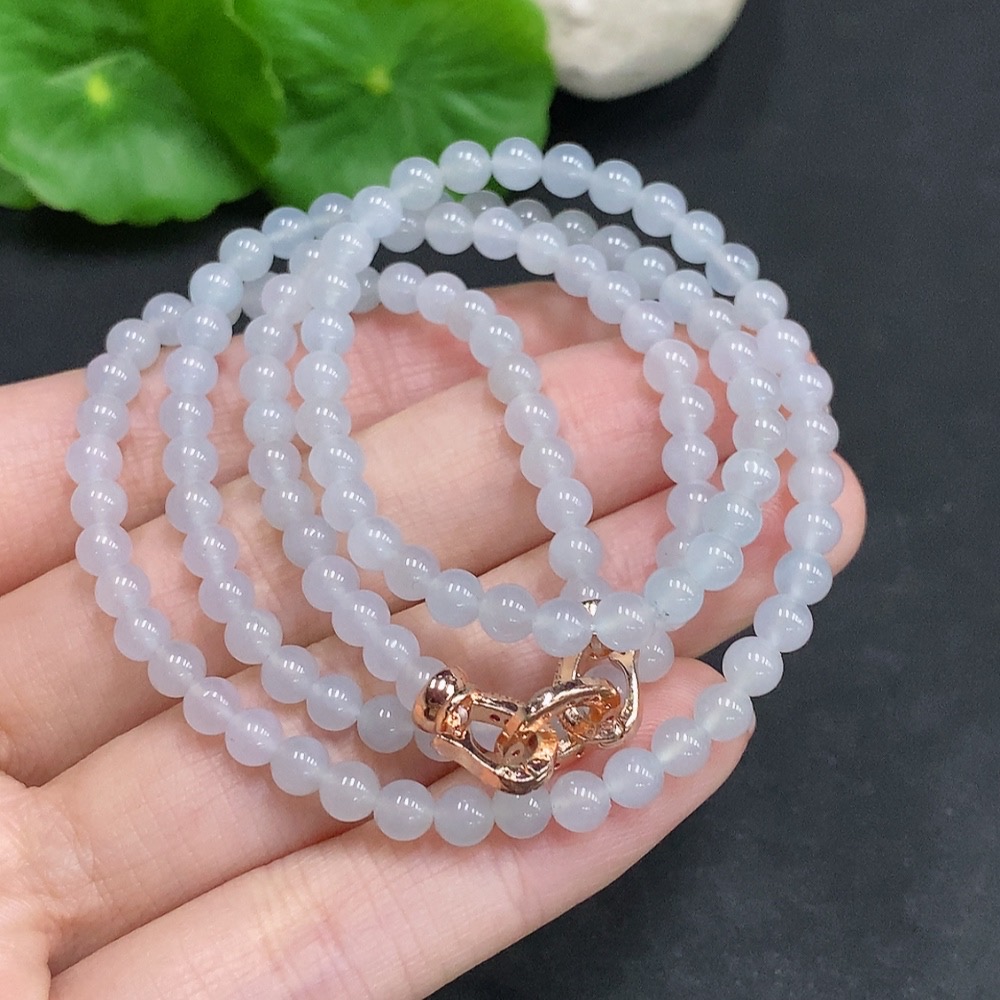 Jadeite Bead Necklace Non-Gold Inlaid Total Weight Approx. 20.1g Size About 4.3mm