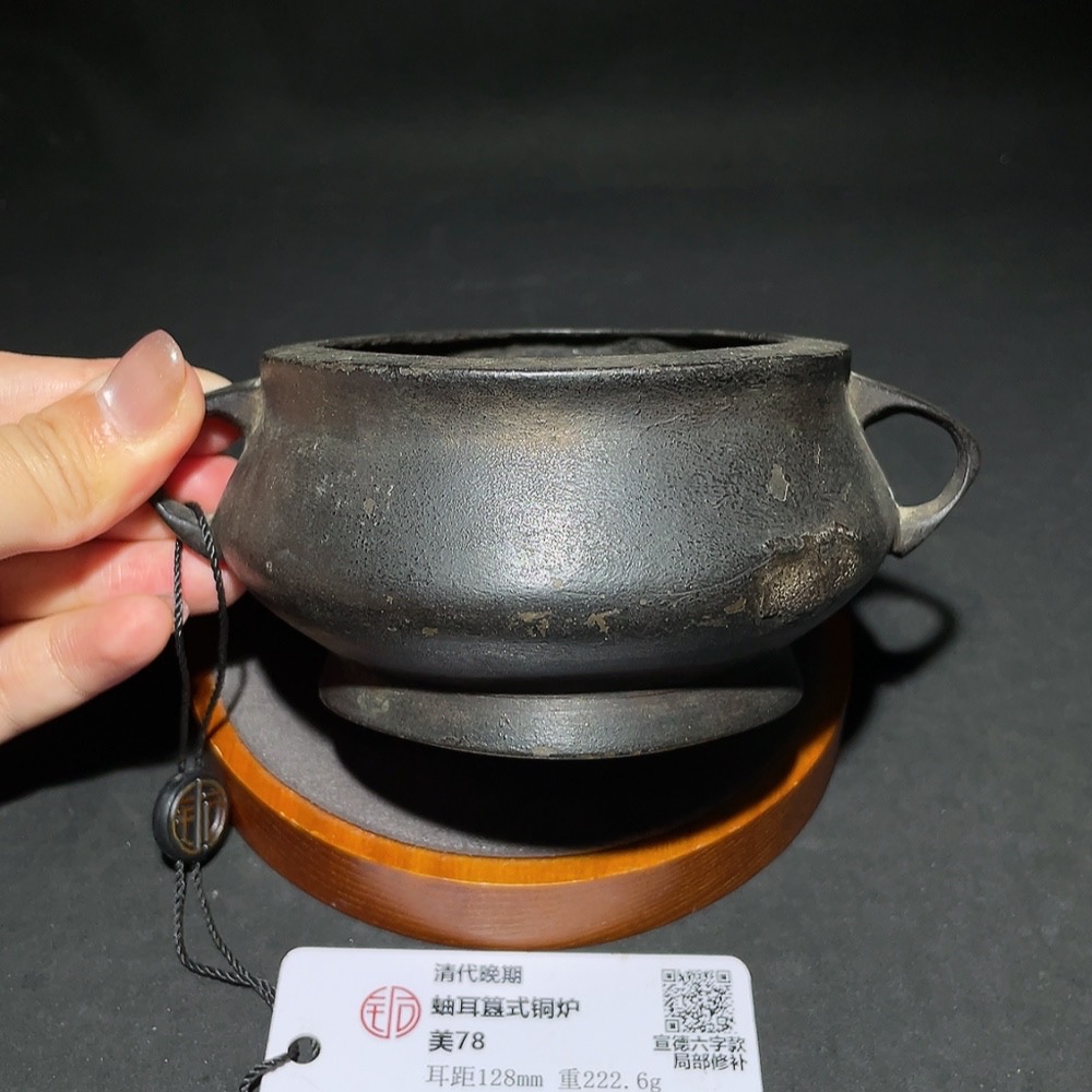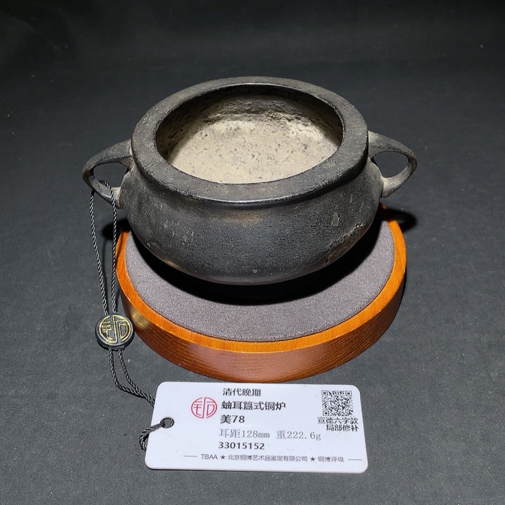 Late Qing Dynasty, You-Ear Gui-Style Bronze Censer, Xuande Six-Character Apocryphal Mark, Tongbo Graded, Miscellaneous Category