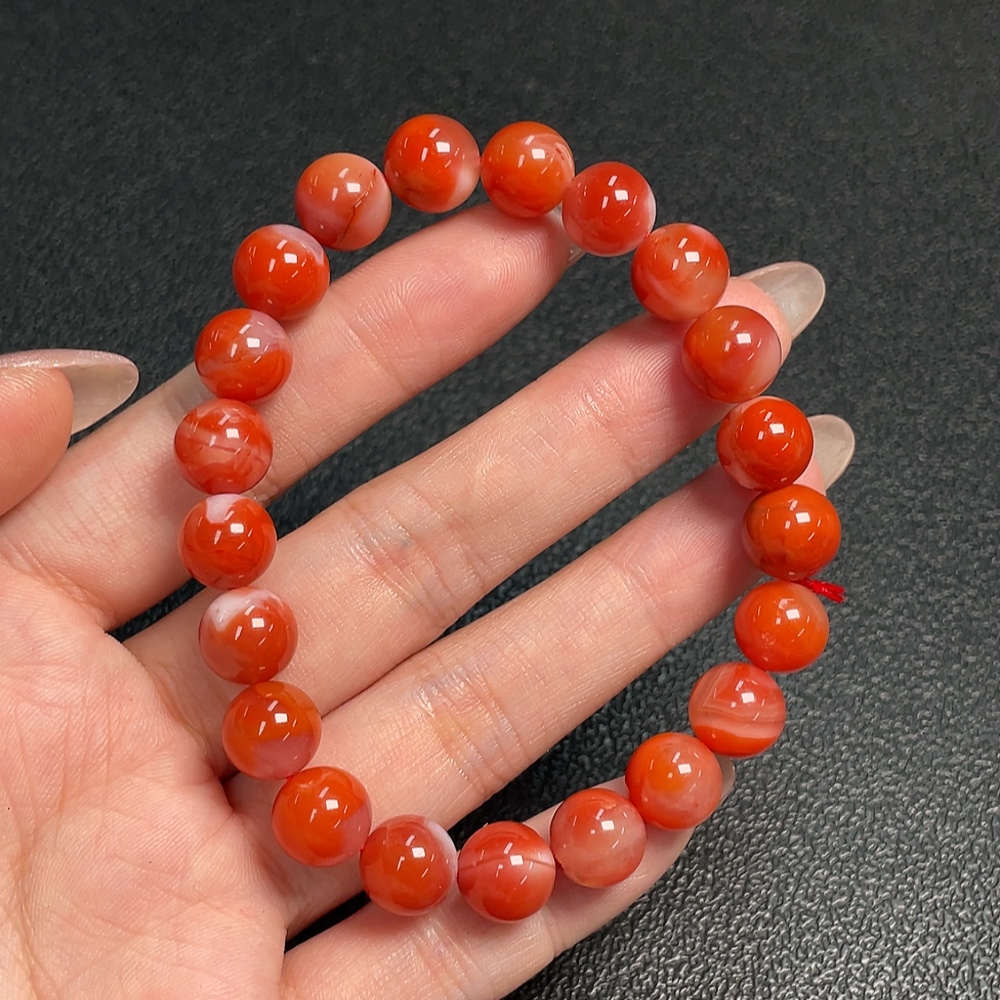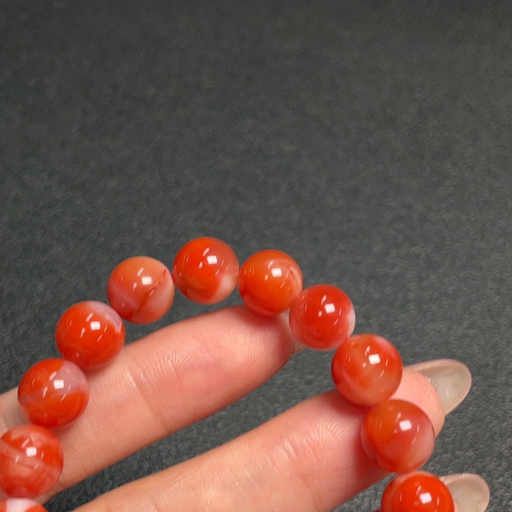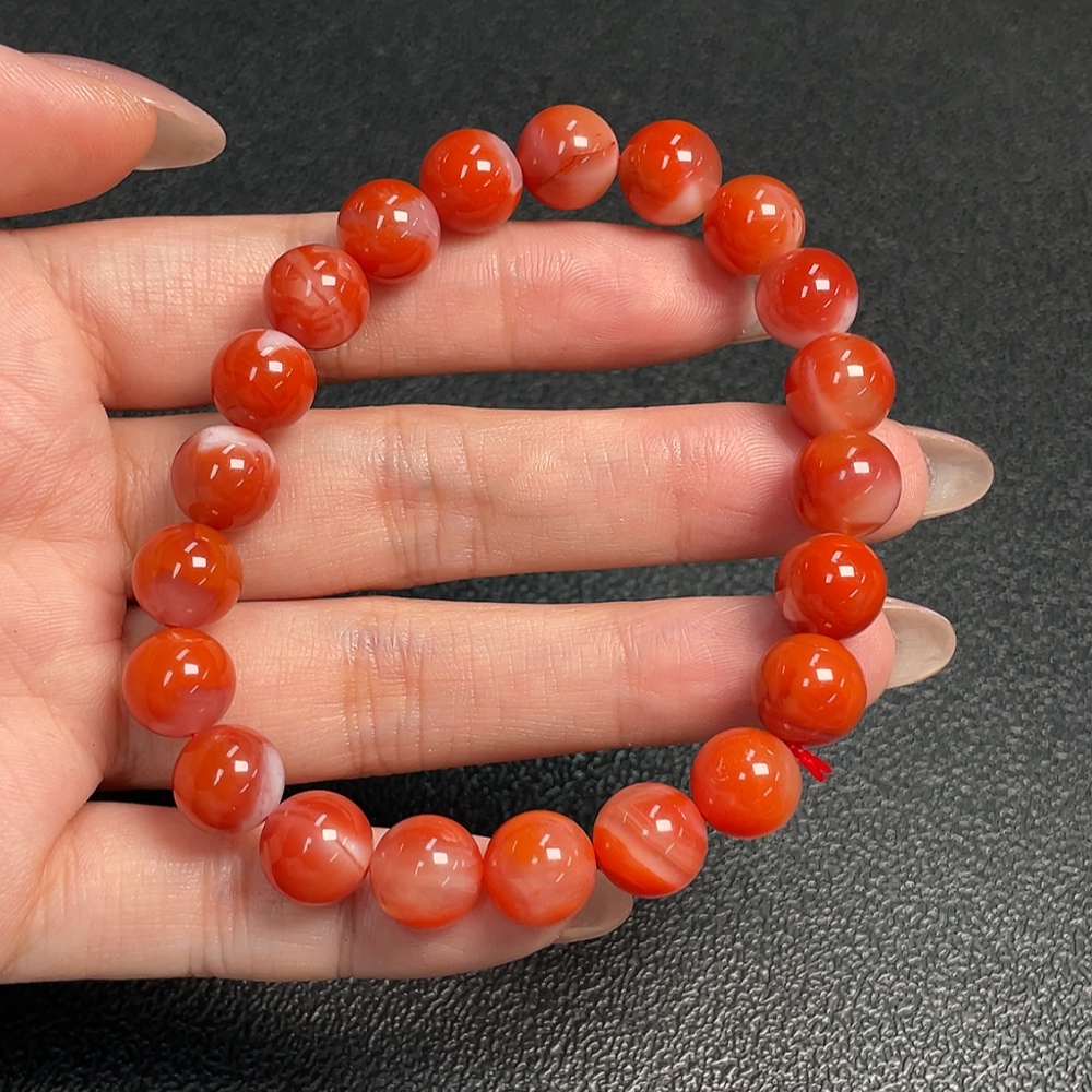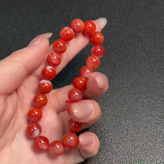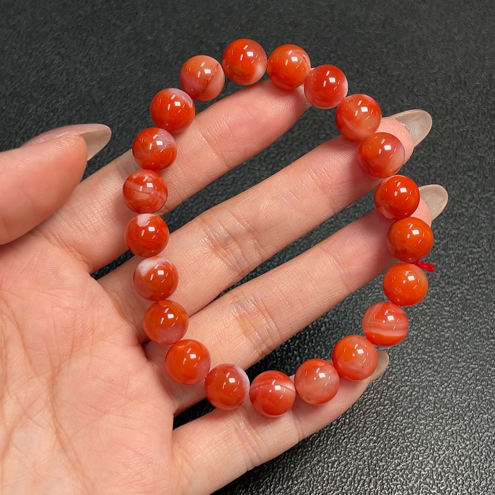 Red Agate Bracelet with Visible Organic Matter, Total Weight Approximately 26.08g, Bead Size About 9.4mm