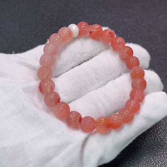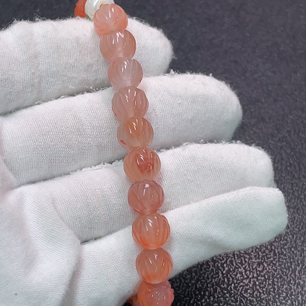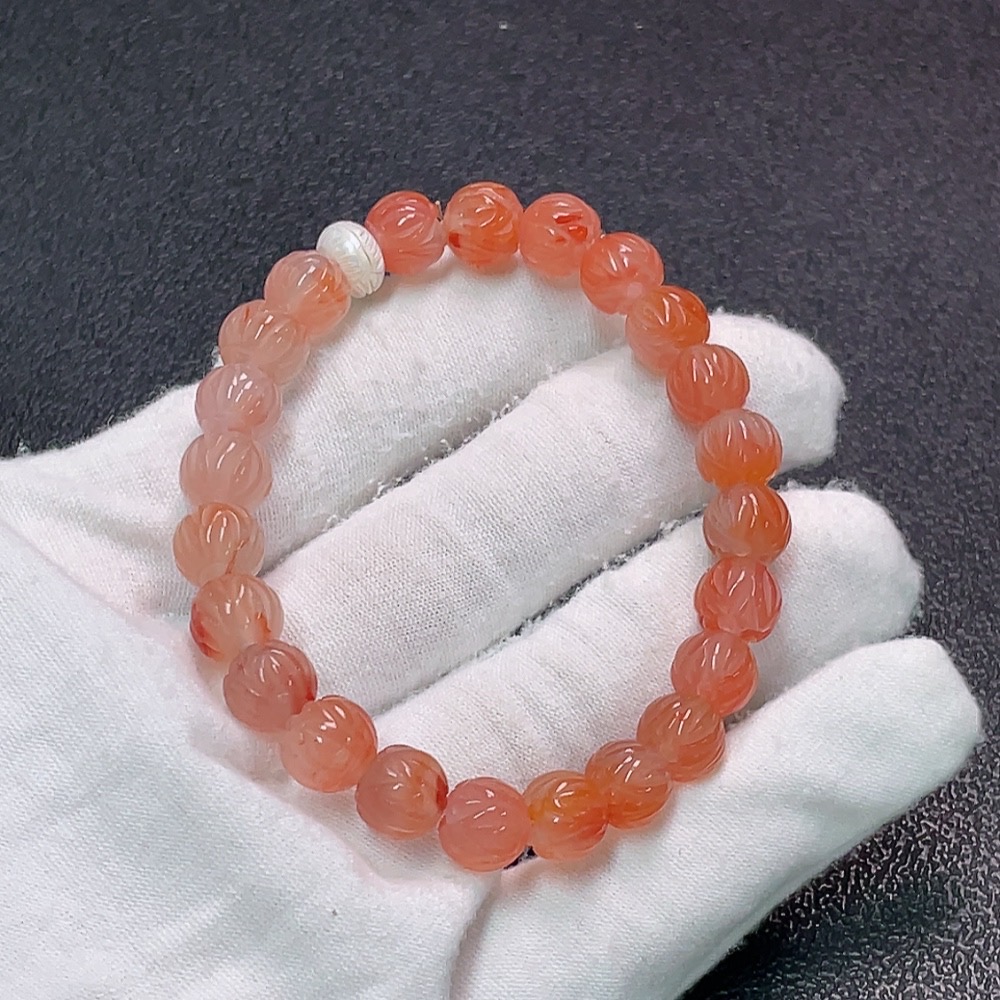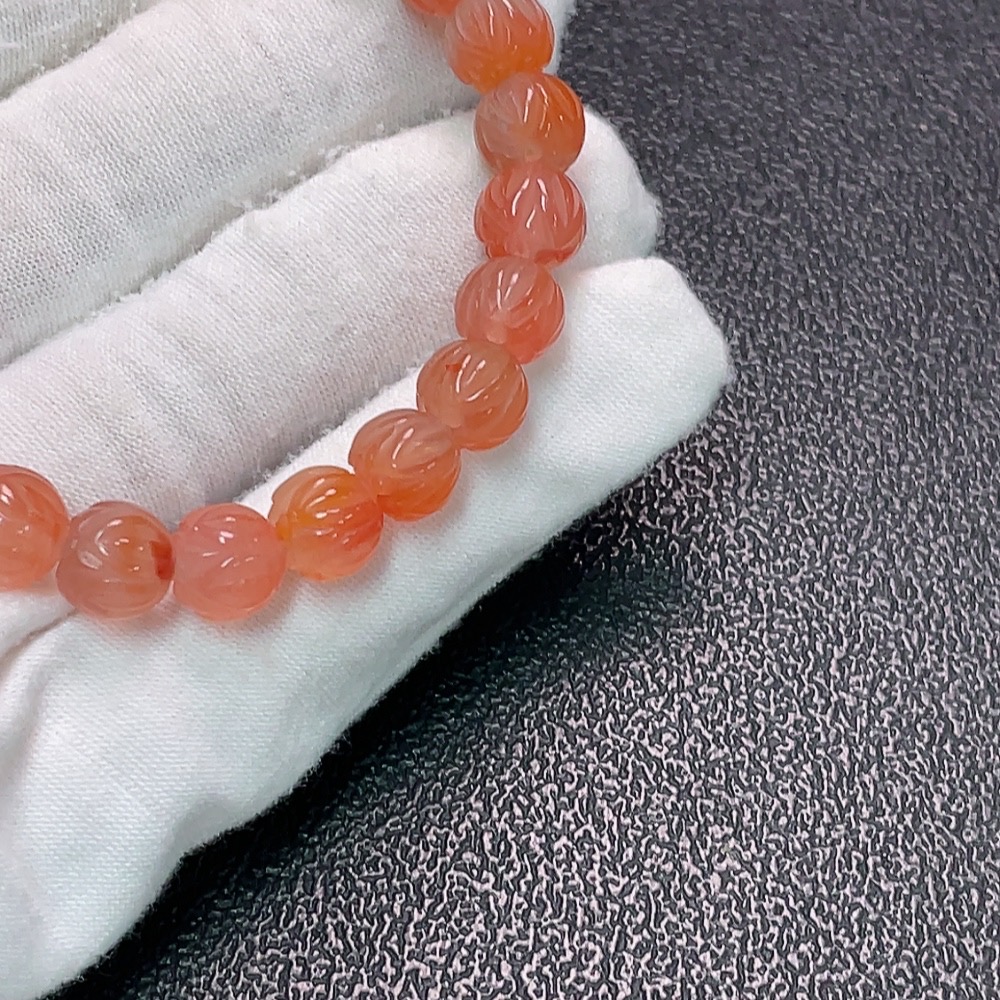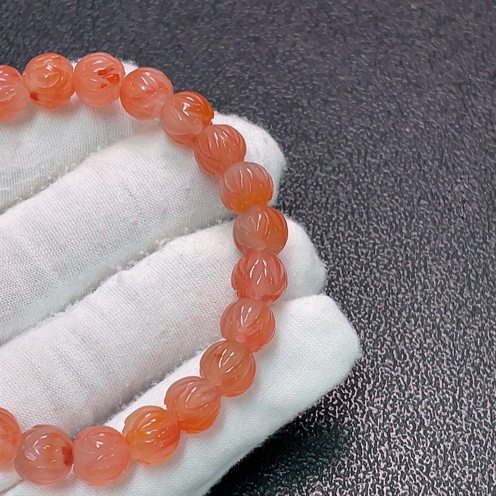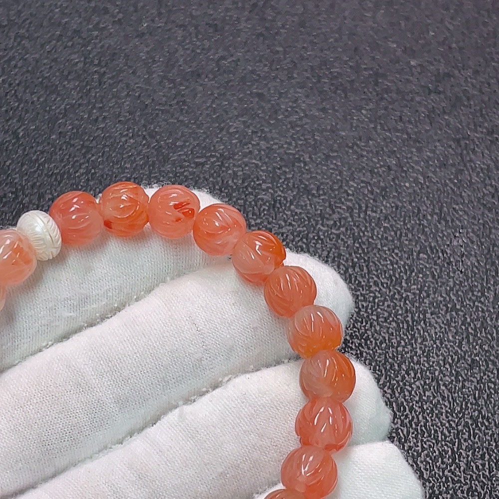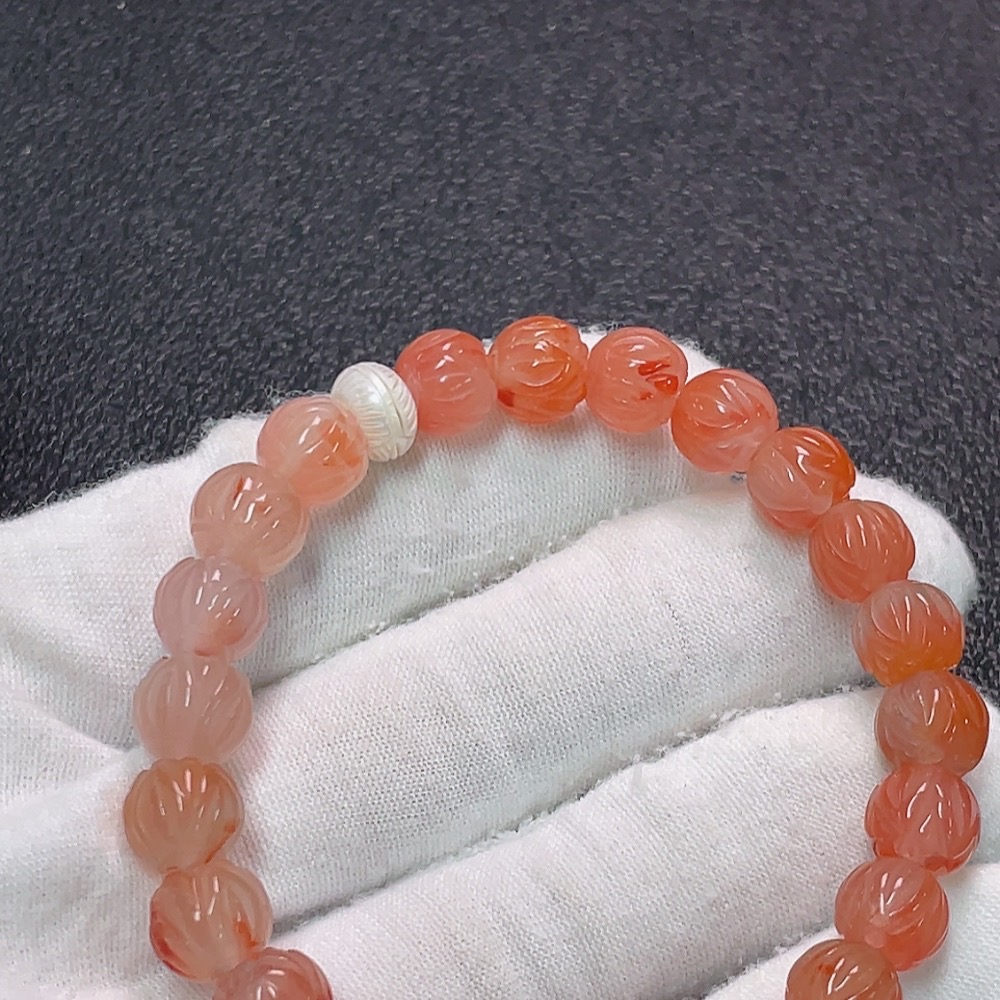 Red Agate Bracelet with Visible Organic Matter, Possible Non-Natural Accent Stones, Total Weight Approx. 20.4g, Size About 8.9mm