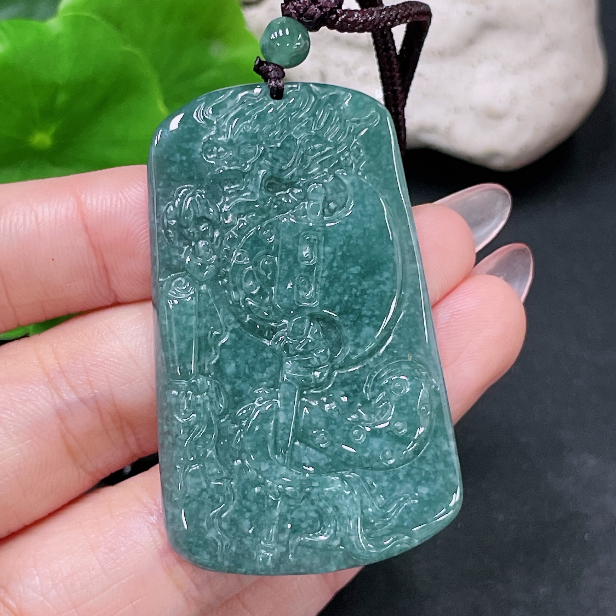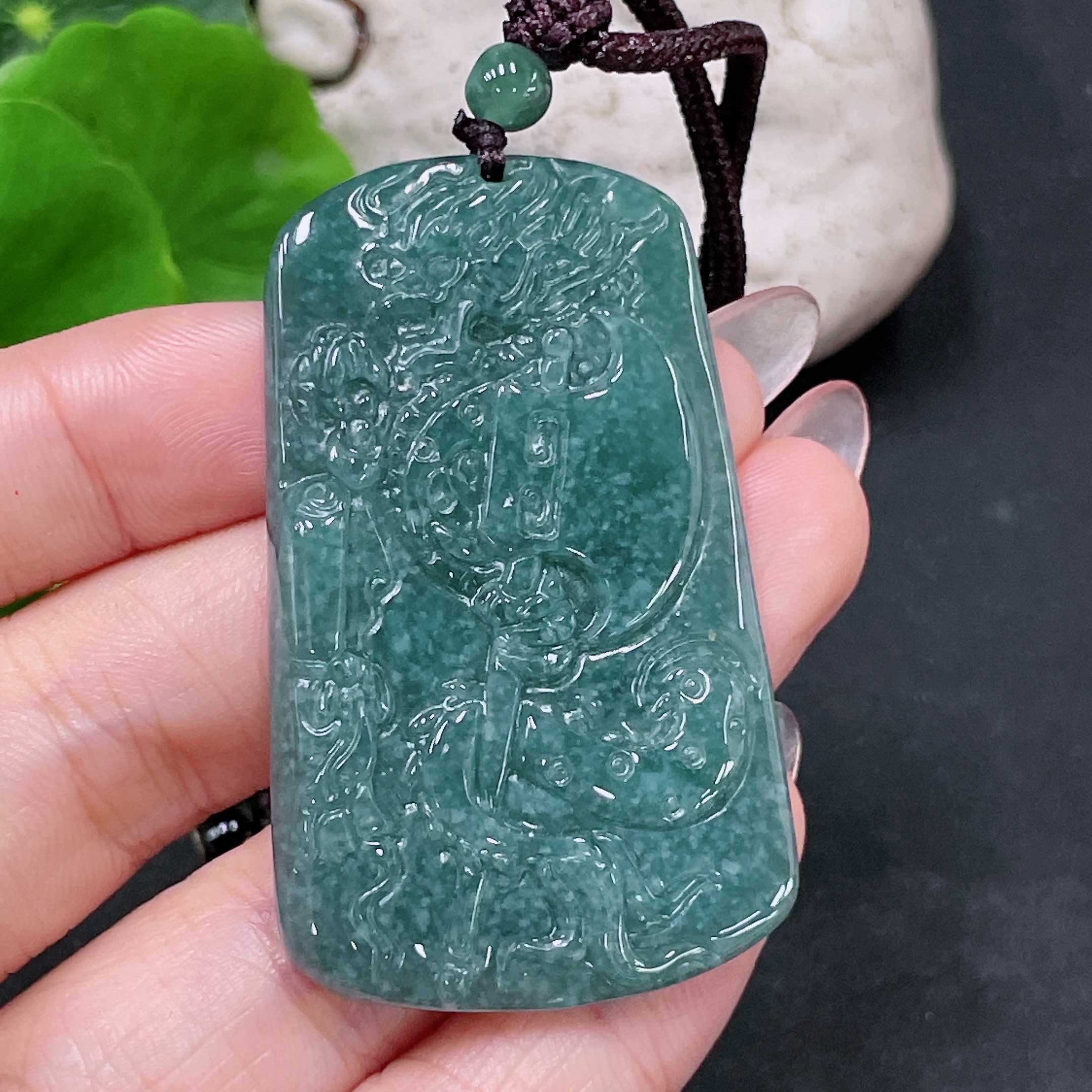 Jadeite Dragon Travels the World Pendant, Total Weight Including Rope Approx. 24.9g