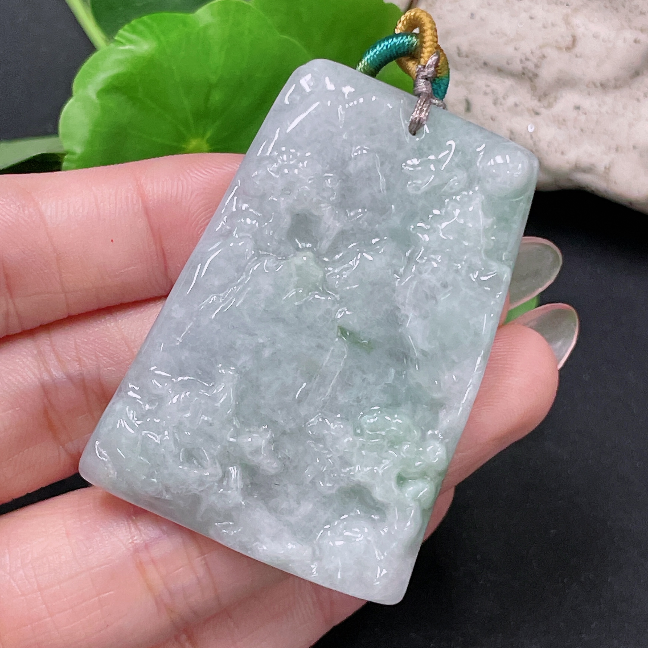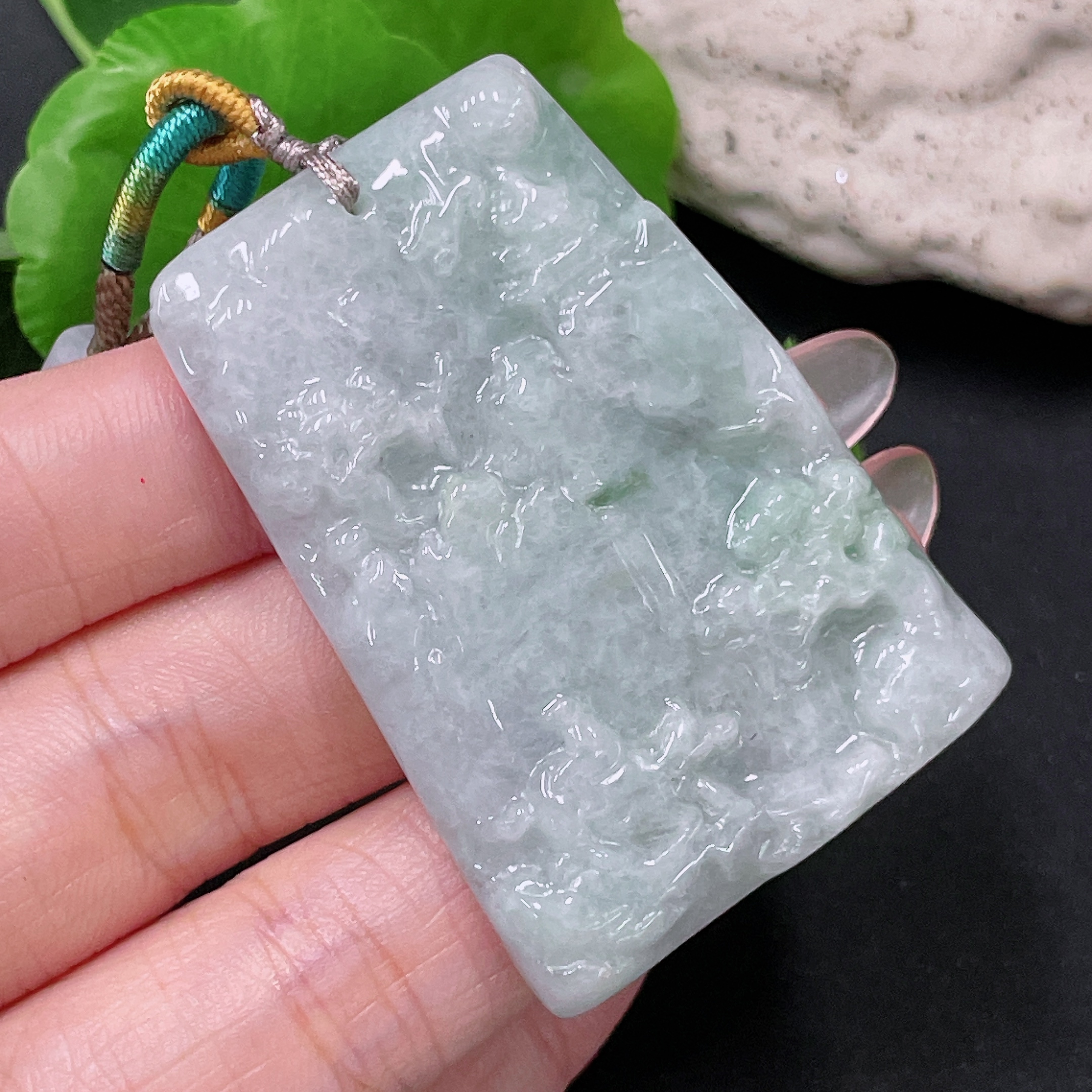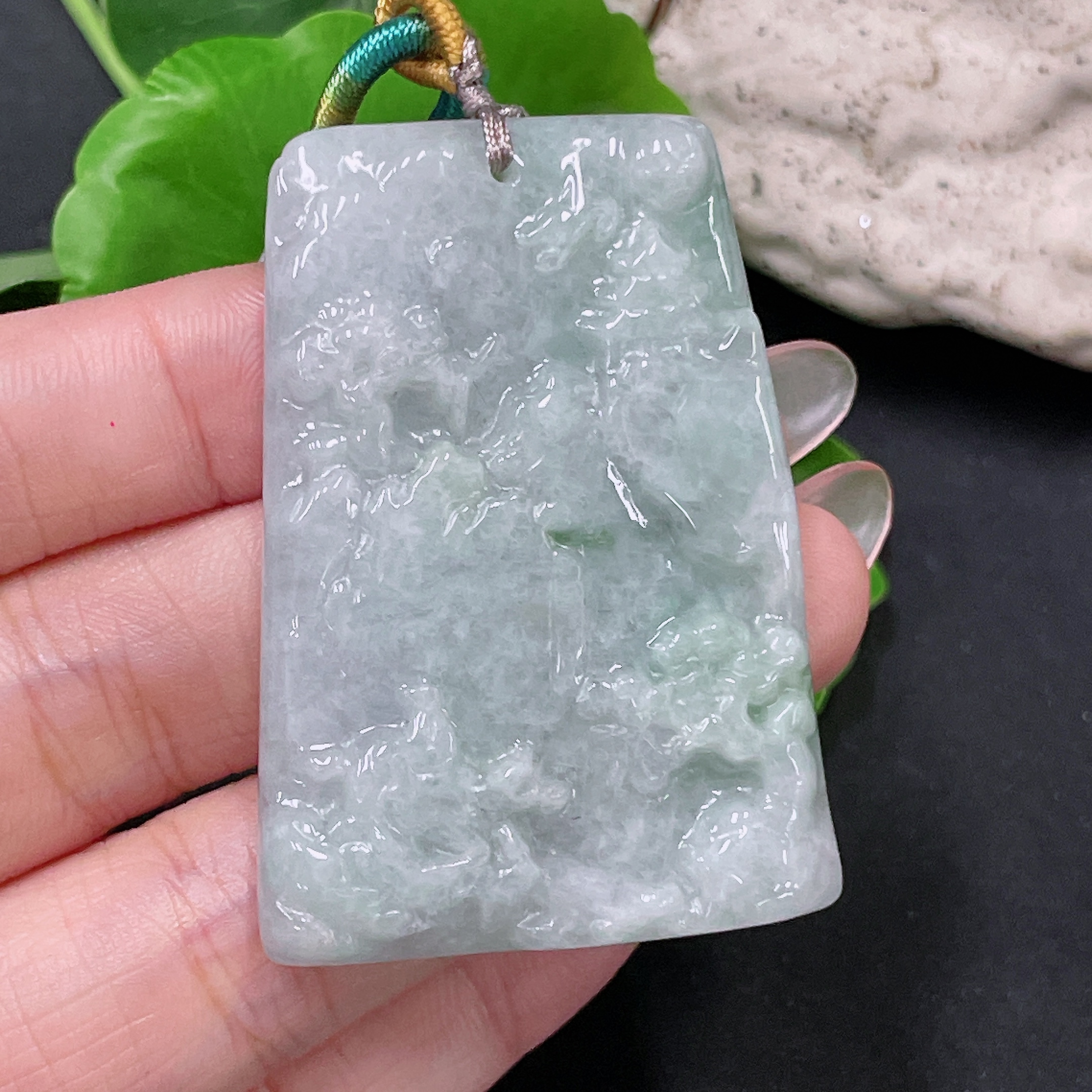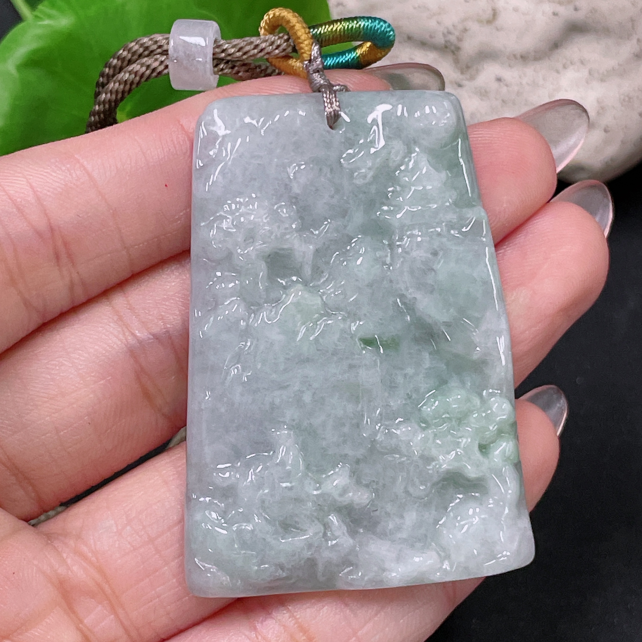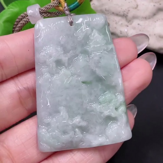 Jadeite Landscape Pendant with Cord Total Weight Approx. 28.2g (Matching Beads Non-Grade A)