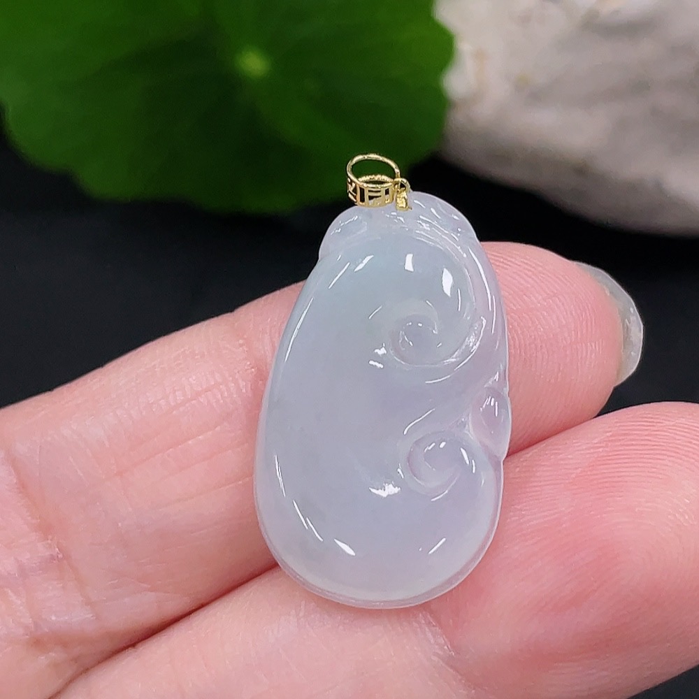 Jadeite Ruyi Pendant 18K Gold Total Weight Approx. 2.3g