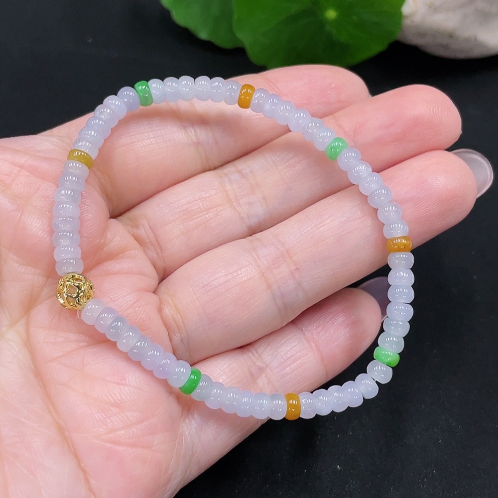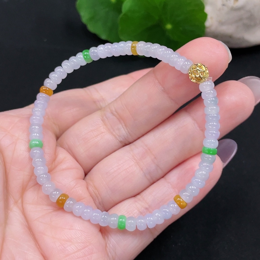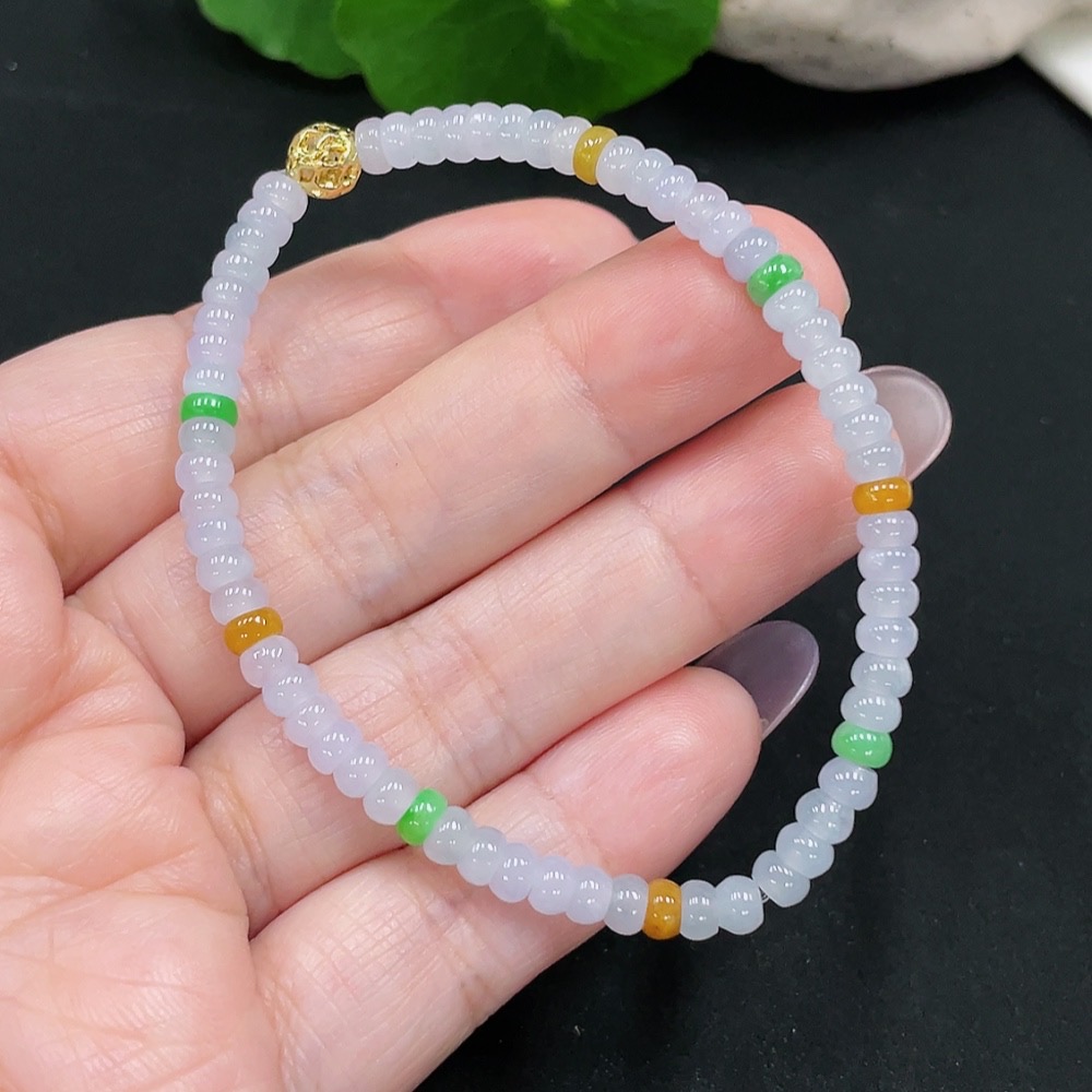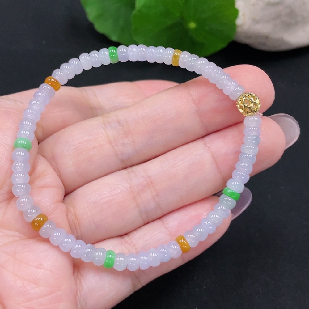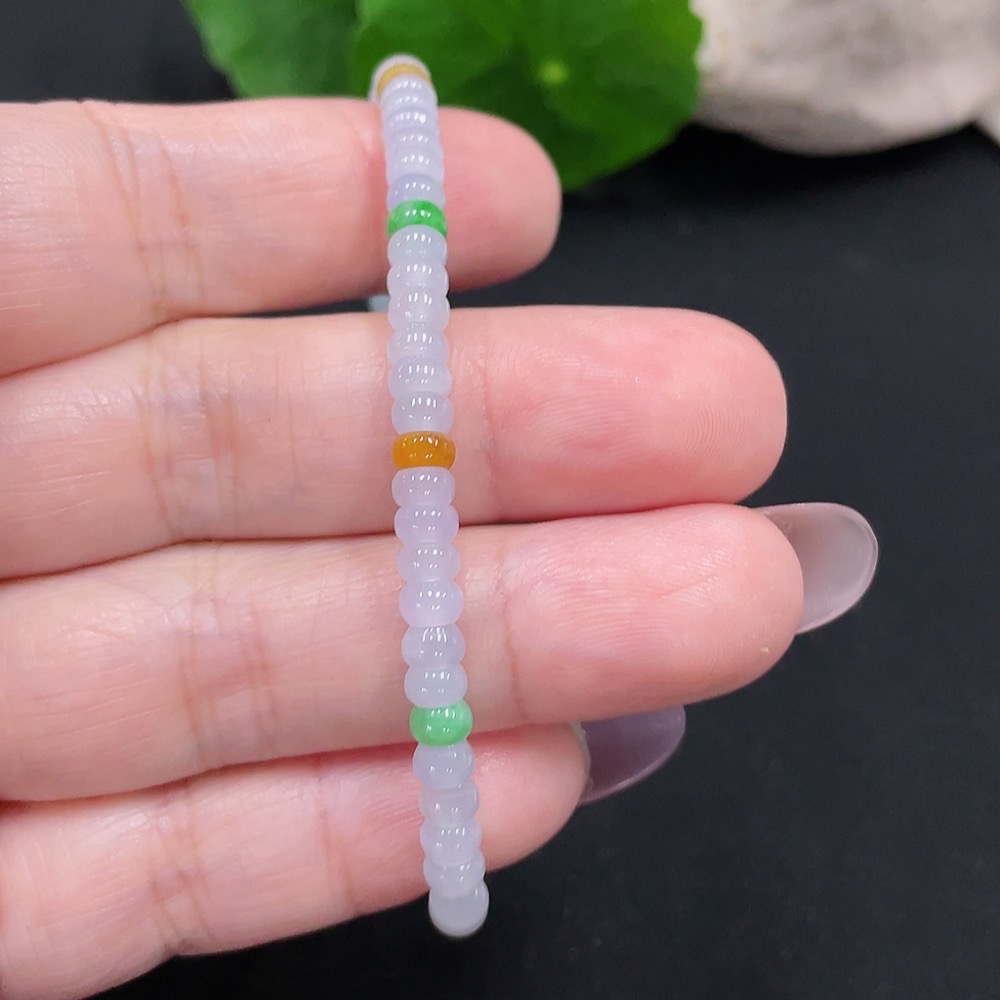 Jadeite Beads Strand Approx. 4.3mm Total Weight Approx. 6.7g (Non-Gold Inlaid) (Yellow Part Color Origin Undetermined)