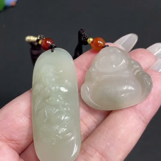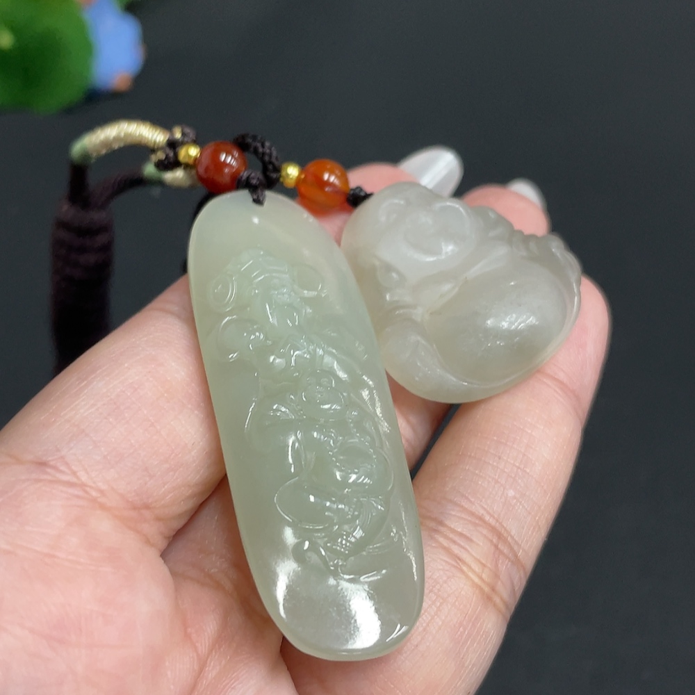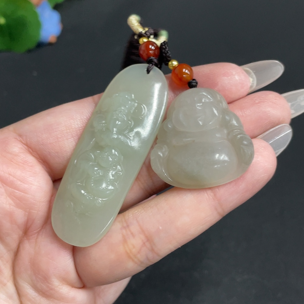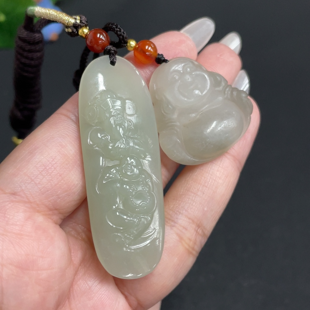 Hetian Jade Pendant, Buddha, Total Weight [with Rope] 28.5g