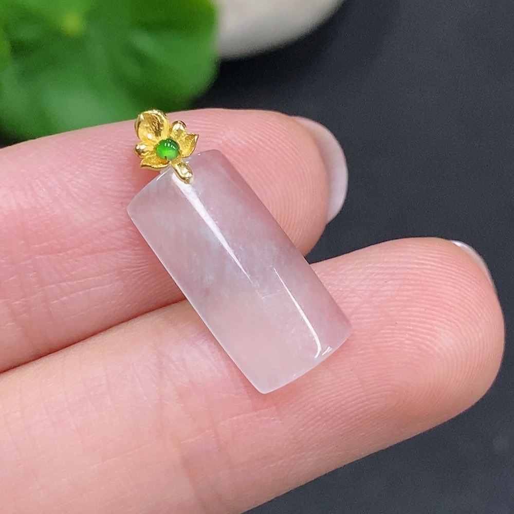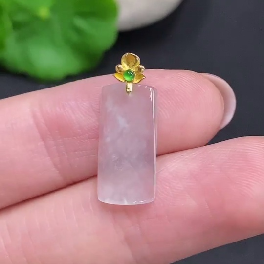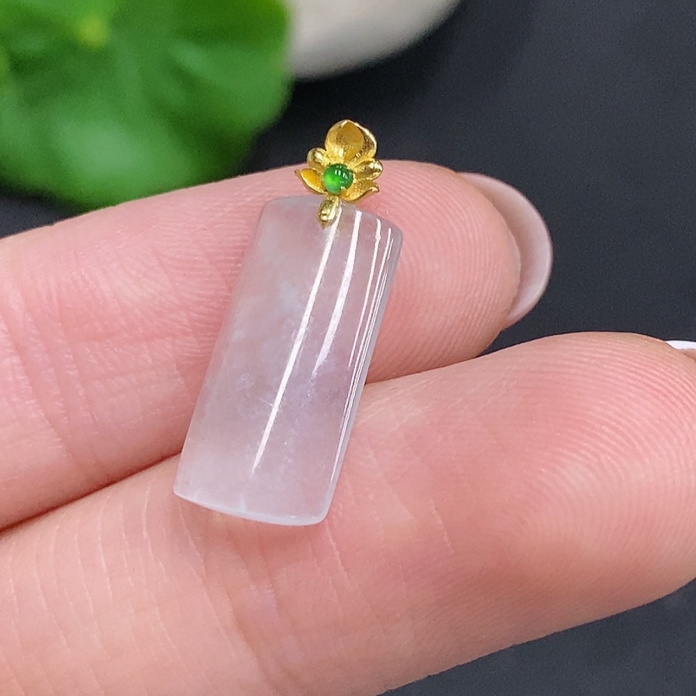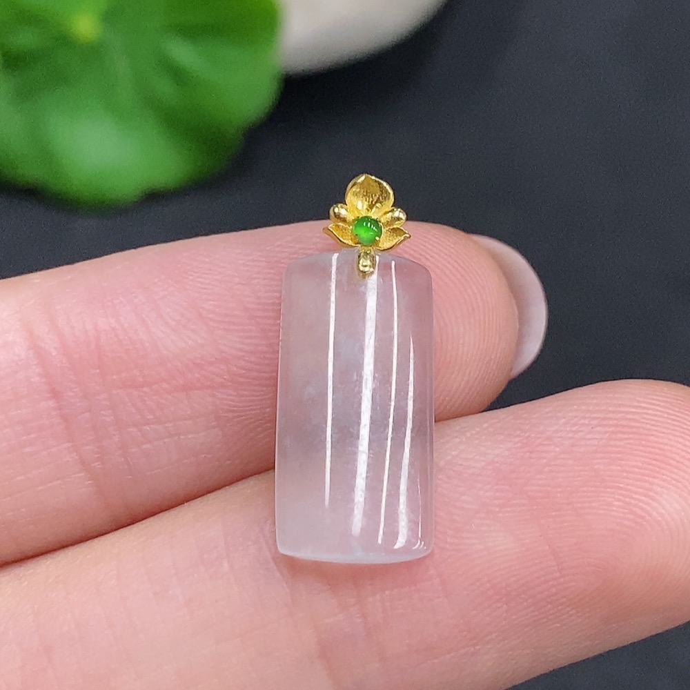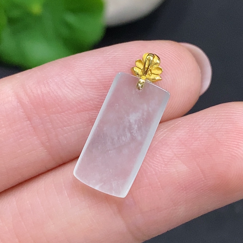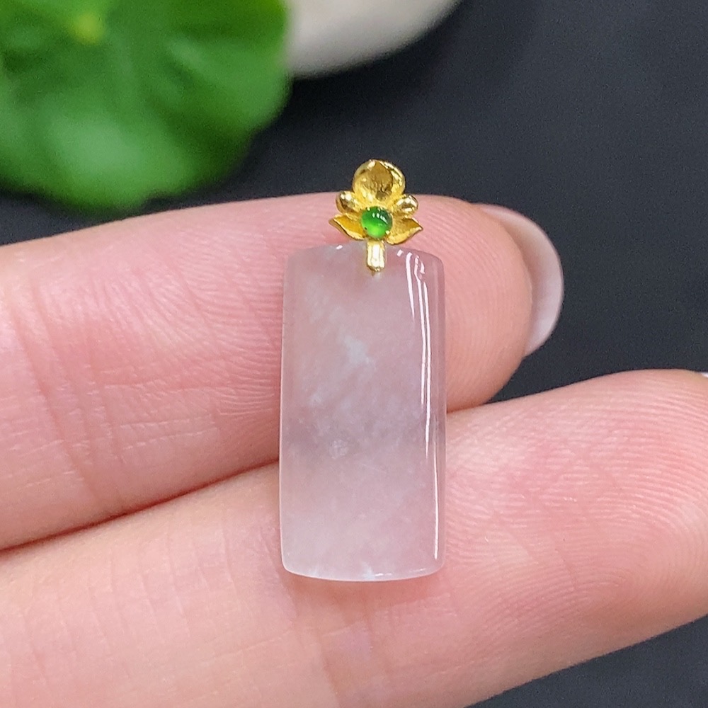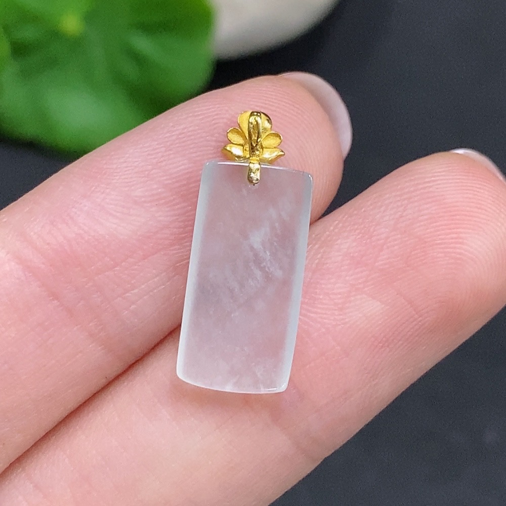 Jadeite Inlaid Pendant with 18k Gold Clasp, Total Weight Approximately 0.6g