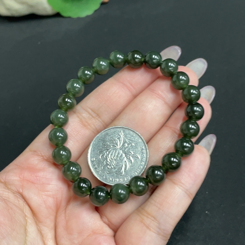 Hetian Jade Beaded Bracelet, approx. 7.6 mm beads, total weight approx. 18.3g