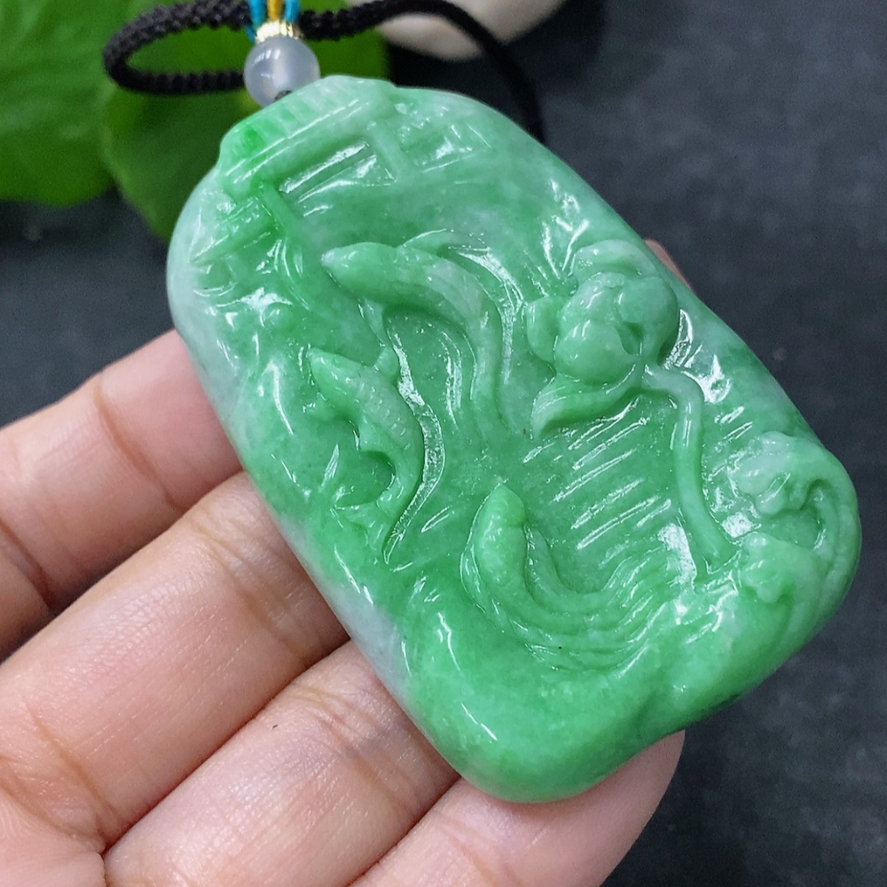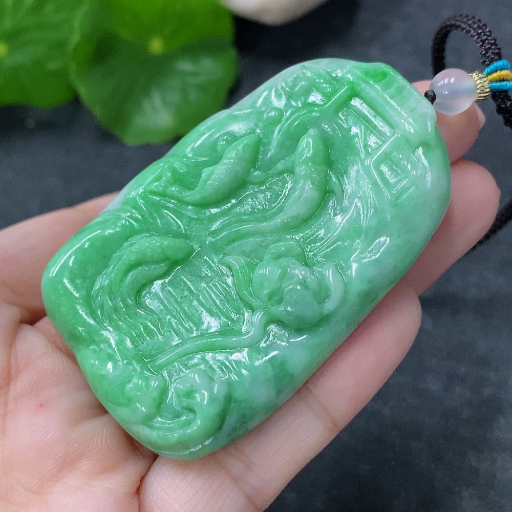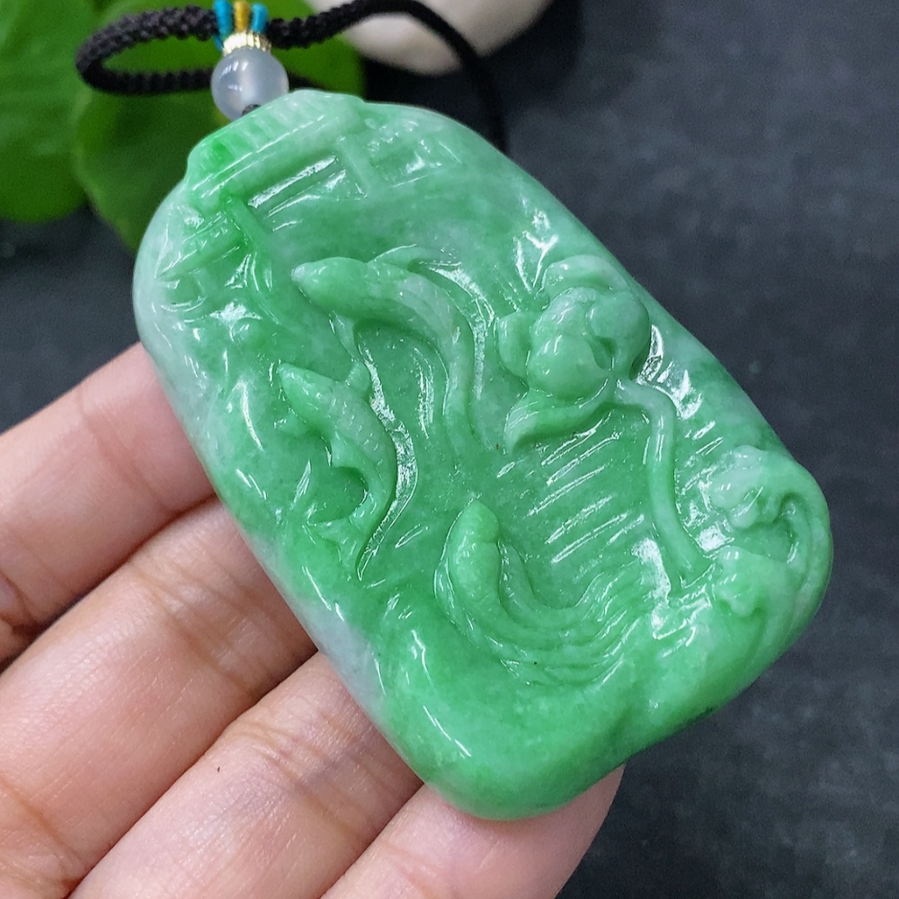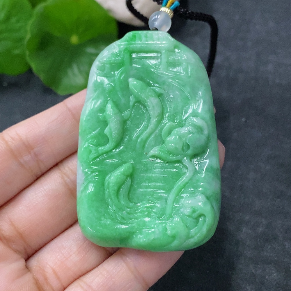 Jadeite Pendant - Abundance Year After Year. Total weight approx. 39.38g including rope. With non-A grade beads.