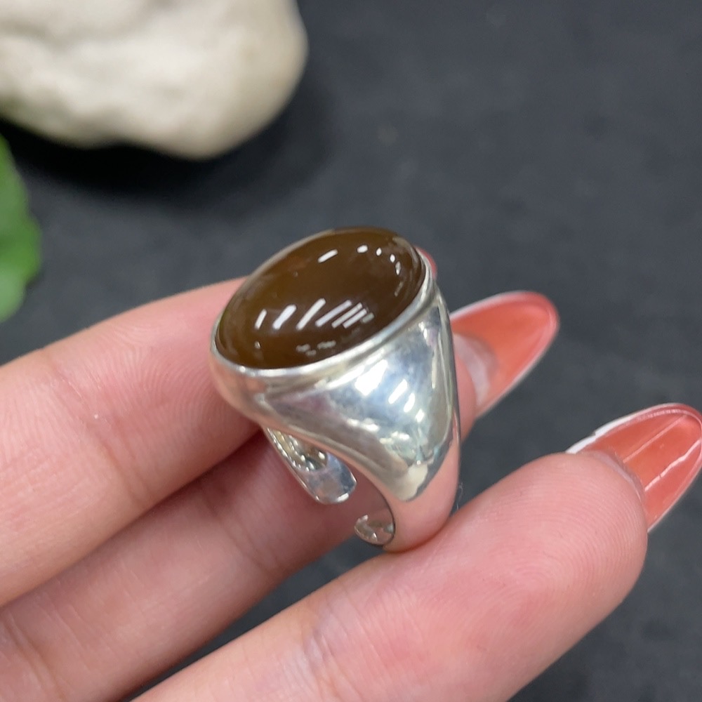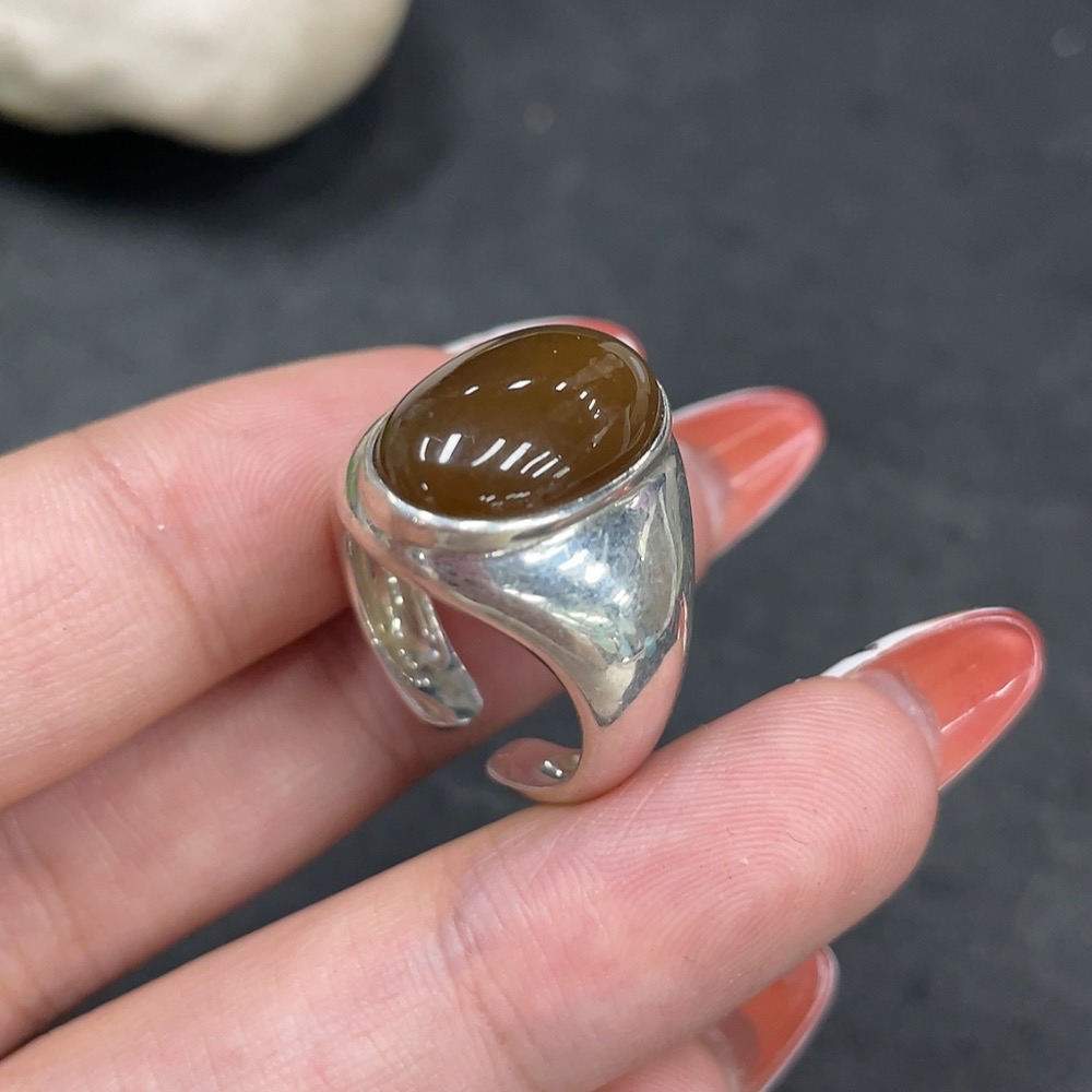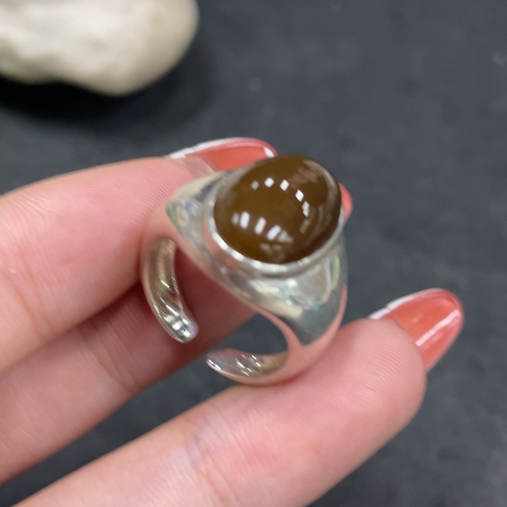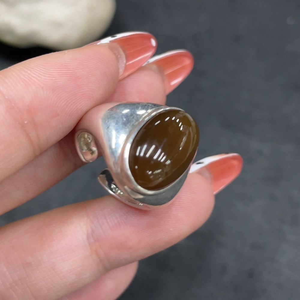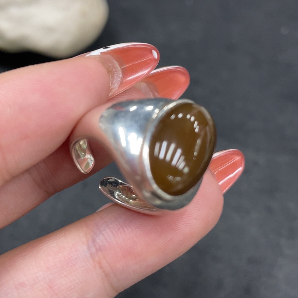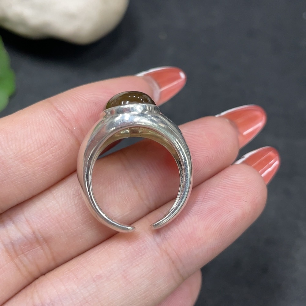 Hetian Jade Inlaid Adjustable Ring Non-Gold Total Weight Approx. 6.7g
